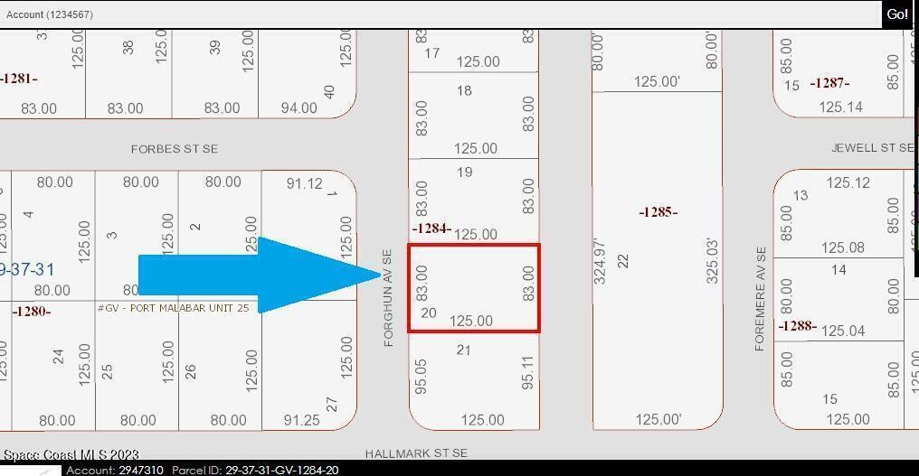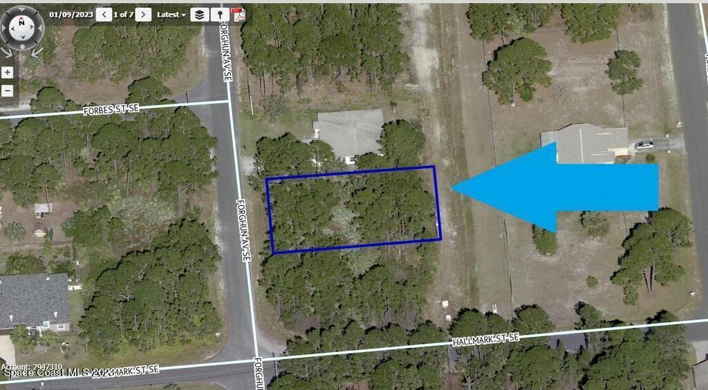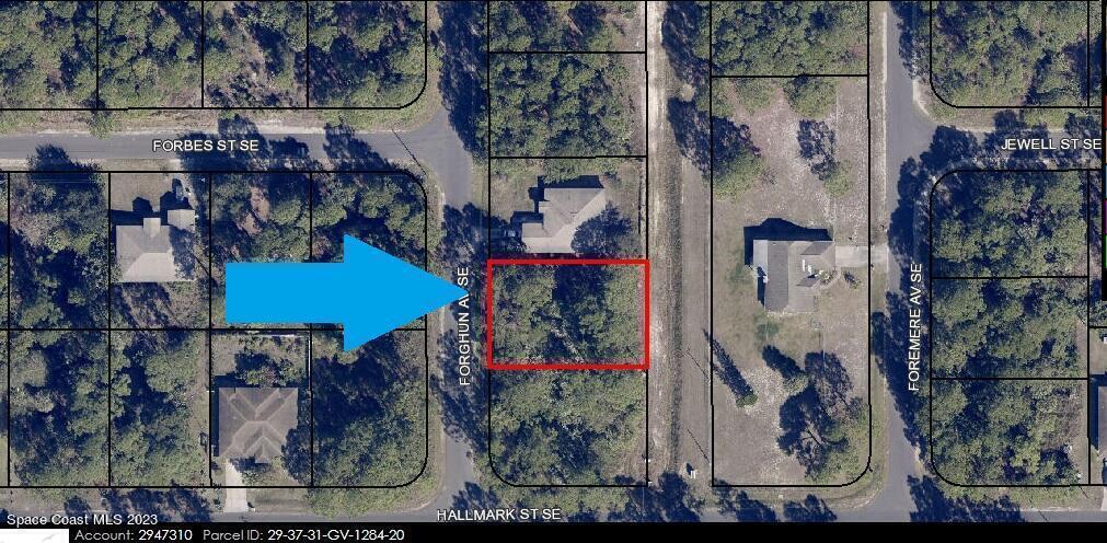 0.24 acre build-able single family residential lot [Rs2 Zoning] available in Port Malabar Unit #25 of Palm Bay. Located in the southeast section, this lot has a drainage canal in the back, allowing more privacy, and is just 3.0 miles - 6 minutes to Westside Elementary School, 4.3 miles - 9 minutes to Publix Supermarket, 14.7 miles - 28 minutes to Melbourne International Airport, and 16.6 miles - 30 minutes to the beaches of Indialantic. From Exit #173 of I-95 go west on Malabar Road NE. Turn left on San Filippo Drive SE and proceed 6.3 miles. Turn left on Lowry Boulevard SE, right on Hallmark Street SE and right on Forghun Avenue SE. The lot will be on your right.