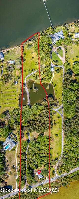 This property is truly a rare and stunning find, spanning over 10 acres that extend from the Banana River to the Indian River, offering awe-inspiring waterfront vistas. With an impressive 188 feet of Indian River frontage and 294 feet along the Banana River, this is a remarkably unique gem - one of the very few properties along this corridor to possess ownership of both shorelines. Enhancing the property's charm and tranquility is an aerated pond with a private pier.The existing dwelling presents an opportunity for an innovative renovation project or can be considered for demolition, paving the way for the creation of a luxurious estate. Convenience is key, being just an 8-minute drive from the Ocean, with easy access to the Pineda Causeway leading to the mainland and Interstate 95.