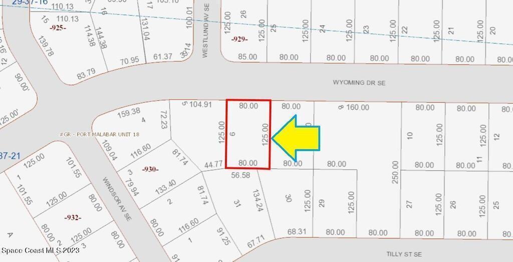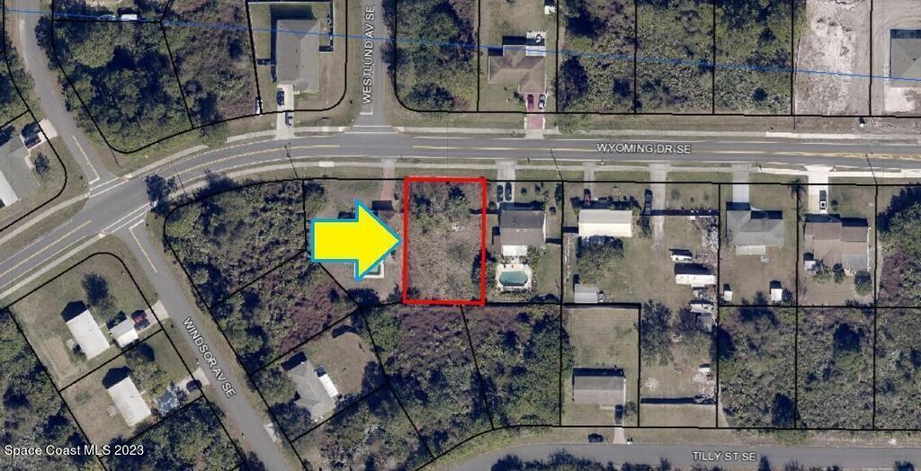 0.23 acre buildable residential lot available in Port Malabar Unit 18 of Palm Bay. Located in the southeast section, this lot has city water available, and is just 2.4 miles - 6 minutes to the Publix Supermarket, 4 miles - 9 minutes to Bayside High School, 10.6 miles - 23 minutes to Melbourne Airport, and 12.5 miles - 27 minutes to the beaches of Indialantic. From exit #173 of I-95 go east on Malabar Road for .6 miles, right on Babcock Street for 3.1 miles, and right on Wyoming Drive. The lot will be on your left.