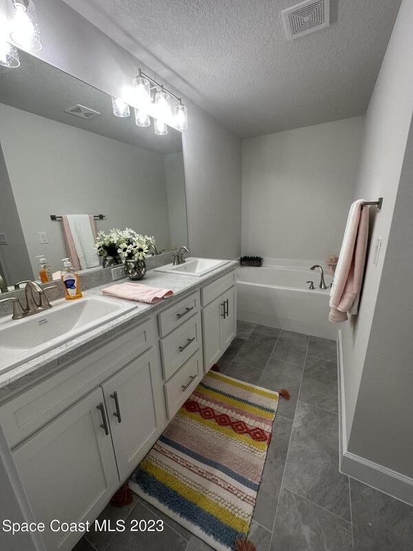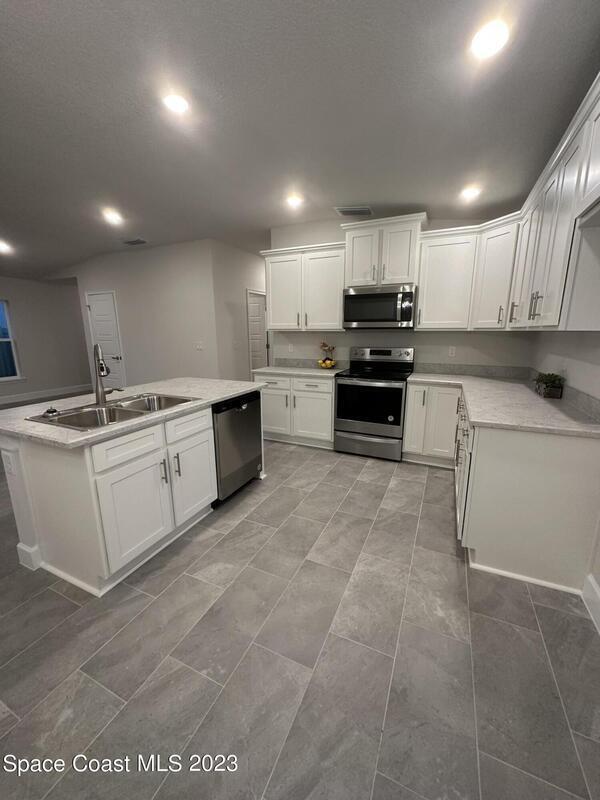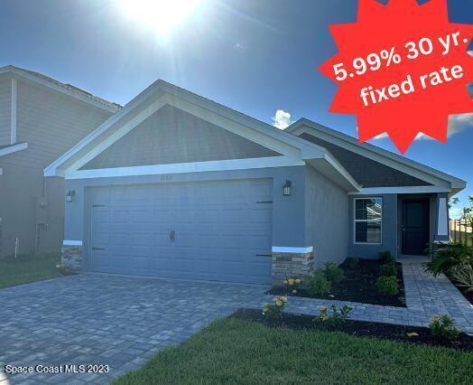 5.99% FIXED RATE WITH PREFERRED LENDER!!$1,000 deposit and save thousands of dollars with All closing costs paid (except escrow items) with approved lender. List price reflects $5K discount with approved lender. Express move-in! No CDD! New gated community easily accessible from I-95 Gorgeous paver driveway and stone accents, BRAND NEW SLATE GRAY PLANK TILE in foyer, great room, kitchen and baths. Stunning stellar white cabinets with crown molding enhance stainless appliances. OBR with nice walk-in closet and 5' shower in bath. Moen brushed nickel faucets, five panel doors and covered lanai to enjoy the outdoors view. Amenities include pool w. cabana, children's playground, athletic field and pickleball court.