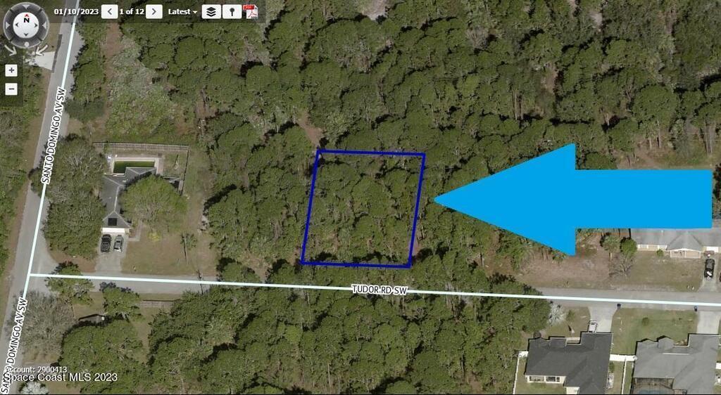 One of 2 side-by-side residential buildable lots available in Port Malabar Unit 19 of Palm Bay (the other is 173 Tudor). Conveniently located in the southwest section, this 0.23 acre lot is just 1.6 miles - 6 minutes to the Winn Dixie Supermarket, 2.2 miles - 6 minutes to Jupiter Elementary School, 11 miles - 26 minutes to Melbourne Airport, and 13.9 miles - 32 minutes to the beaches of Indialantic. From exit #176 of I-95 go west on Palm Bay Road for .7 miles, left on Minton Road for 3.3 miles, right on Jupiter Boulevard for .2 miles, right on Santo Domingo Avenue for .4 miles, and right on Tudor Road. The lot will be on your left.
