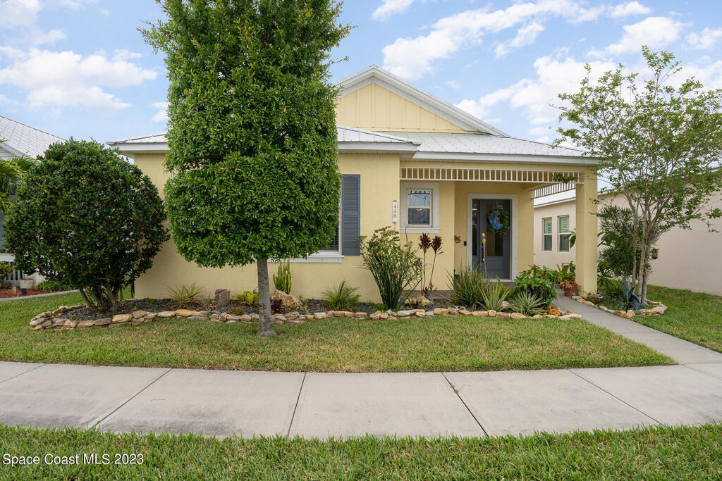 PRICE REDUCED, AND FRESHLY PAINTED LIVING ROOM AND DINING ROOM. BRING OFFERS! Charming and welcoming 3 bedroom, 2 bath home in the gated and highly desirable 55+ community of Alamanda Key! Built in 2017, the home features a metal roof, interior updates, designer lighting, and beautiful landscaping. The community of Alamanda Key has 2 lakes as a focal point and is known for great amenities that include an Island-style clubhouse, fitness room, pool, tennis courts, & wide walking / bike path. It's also i an ideal location for quick access to shopping and I-95 for travel to international airports. Close to downtown Melbourne & Viera, a quick 10 minute drive to Melbourne Orlando Airport, or the beach in less than 20 minutes! Irrigation & lawn maintenance included. Live the Florida lifestyle...