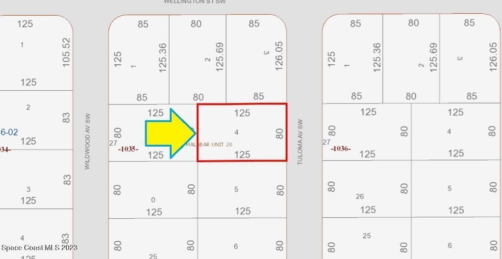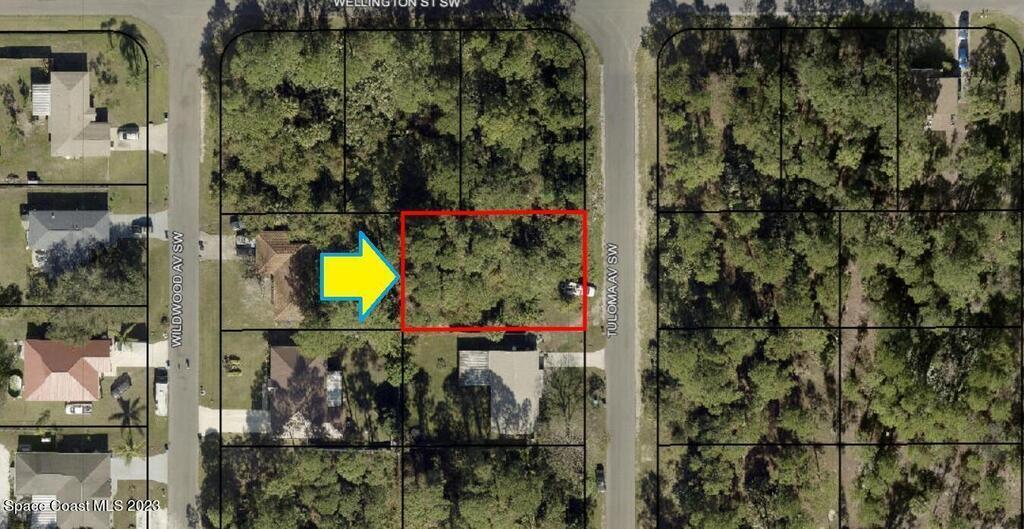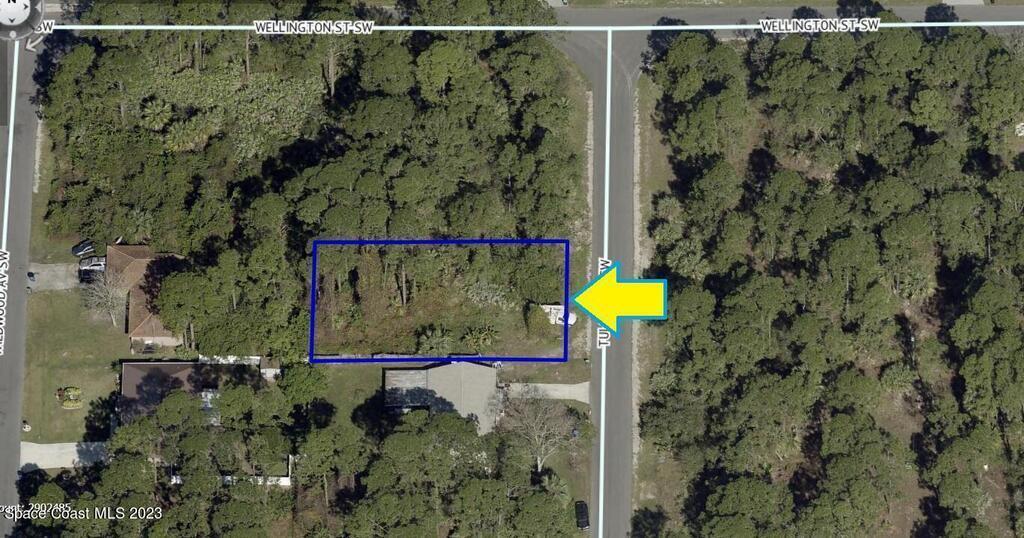 0.23 acre buildable residential lot available in Port Malabar Unit 20 of Palm Bay. Located in the southwest section, this lot is just .4 miles - 2 minutes to Jupiter Elementary School, 2.3 miles - 6 minutes to the Winn Dixie Supermarket, 12.1 miles - 28 minutes to Melbourne Airport, and 14.9 miles - 34 minutes to the beaches of Indialantic. From exit #180 of I-95 go west on US-192 for .5 miles, left on St Johns Heritage Parkway for 6.1 miles, left on Malabar Road for 1.8 miles, right on Hurley Boulevard for .7 miles, left on Harwick Street for .2 miles, right on Fronda Avenue, left on Tupelo Road for .3 miles, and left on Tuloma Avenue. The lot will be on your left.