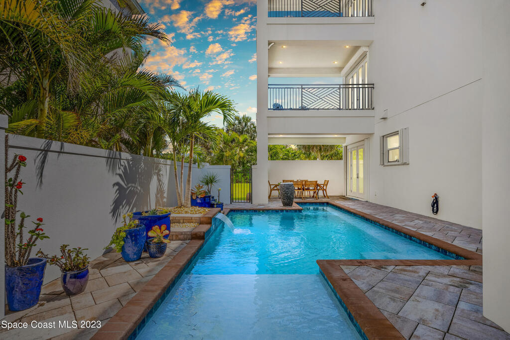 Your coastal retreat is awaiting you! Situated along the barrier island, steps away from the Atlantic Ocean & sandy beaches. This exquisite home offers a gourmet style kitchen w/gas-cooking, elevator, 3-car garage, decks off each floor & many more outstanding features. Relax at your private courtyard pool w/plenty of outdoor space to dine & lounge. The 2nd floor is dedicated for your guests.The 3rd floor invites you into a spacious owner's suite w/captivating ocean views, walk-in custom closet, elegant designer spa-like bath & a private lanai - your perfect spot watching the ocean & listening to the soothing sound of the waves. Enjoy the active, resort-like lifestyle of the exclusive Aquarina Beach & Country Club with tennis, golf, private beach & river access, boat ramp, gym & beach club
