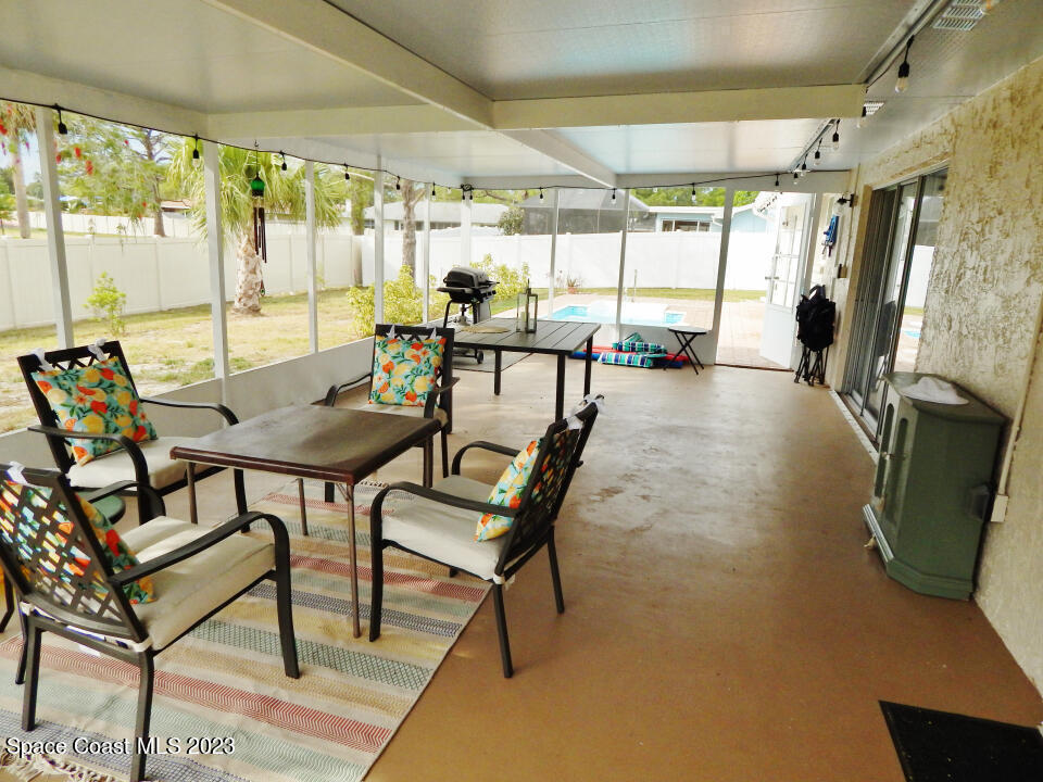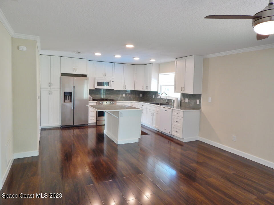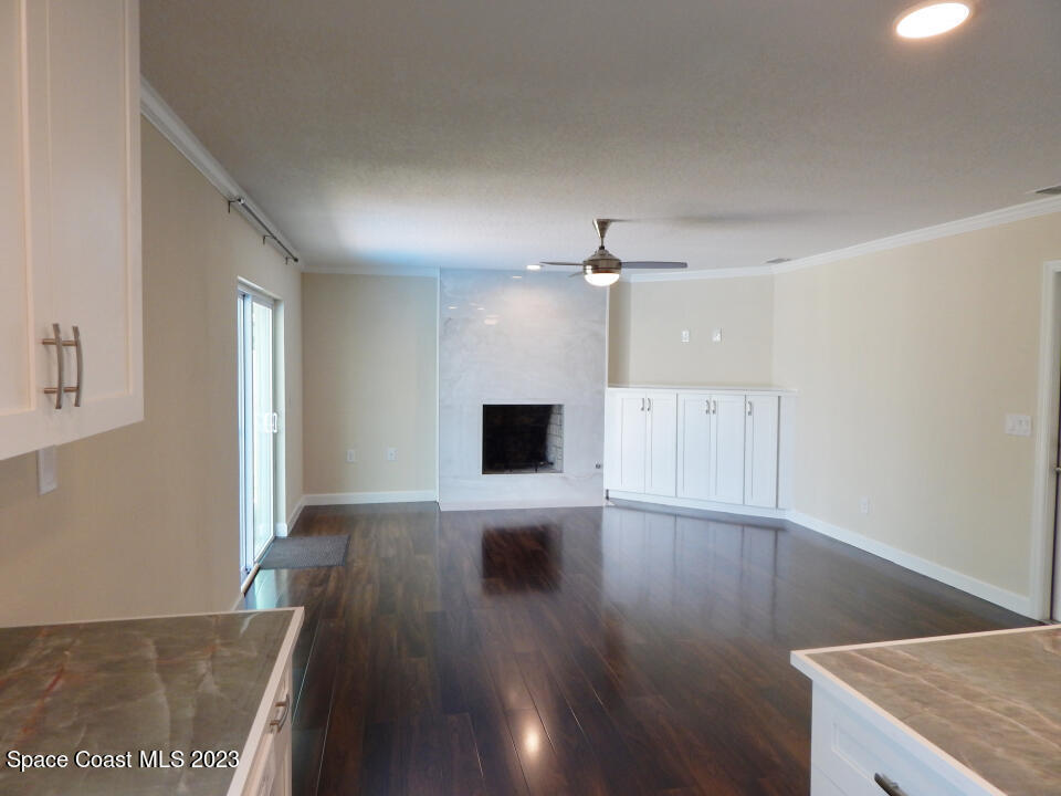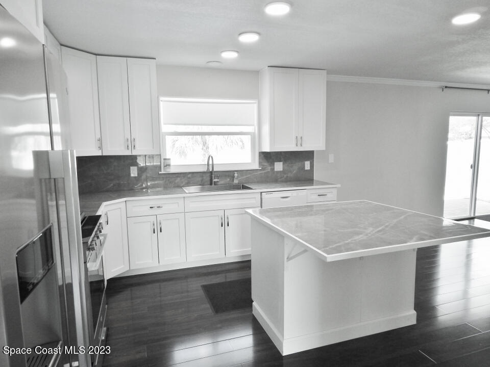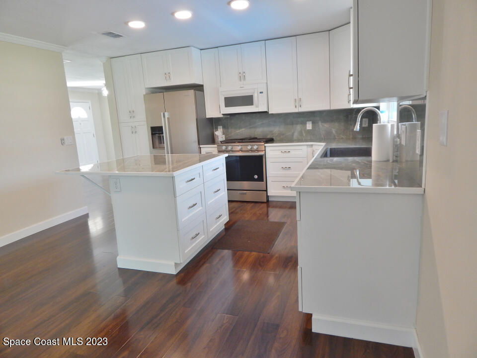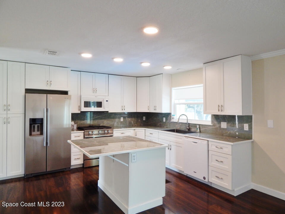 Complete remodel. Improvements include: roof replacement, new electric panel, switches, outlets, and light fixtures high Impact windows and doors. The water heater is tankless, attic insulation added. The kitchen/family room with fireplace opens to the in-ground salt water pool. New appliances including gas range and stainless steel sink disposal. The dining room flows into a large living room which opens onto the screened porch. New vanities, sinks, counter tops, tub, toilets, fixtures, tile walls and floors in both bathrooms, Large main and guest bedrooms. Waterproof laminate flooring throughout, Interior doors, casing, base, crown molding, locks and hardware.