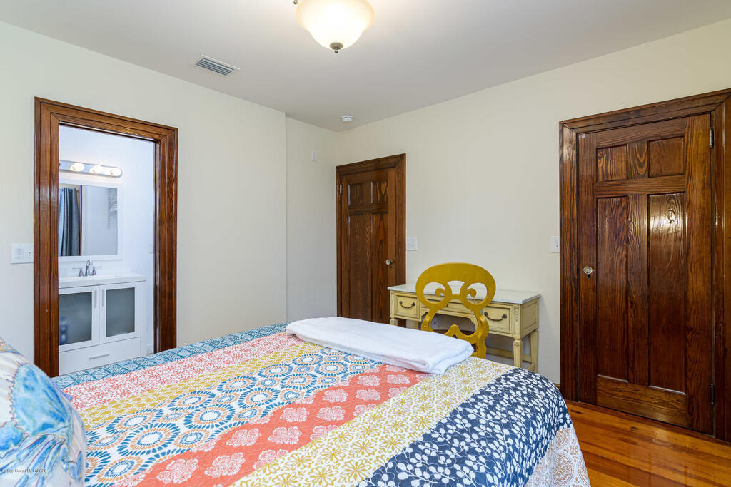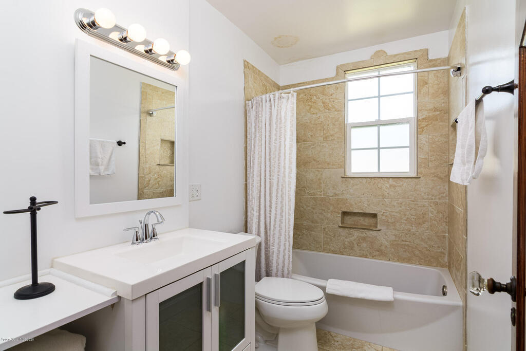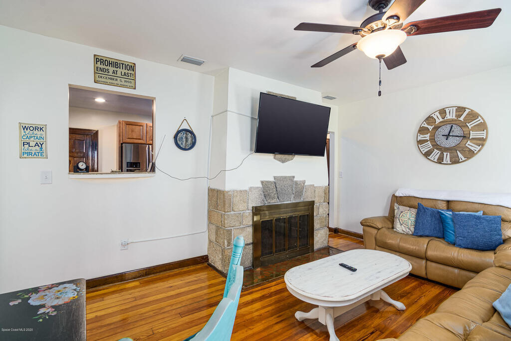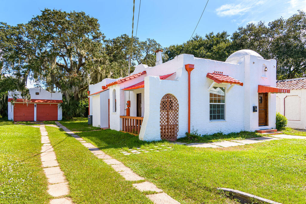 HISTORIC MIXED-USE 1926 CASITA IN DOWNTOWN TITUSVILLE...LICENSED VACATION RENTAL!!! Beautifully renovated building in Downtown Titusville's mixed-use area currently operating as an AirBNB with the ability to add another dwelling or office space above the garage. So much character with unique design features from original owner who was a well-known artist almost a century ago. Wood floors, stucco walls and a coquina rock fireplace take you back in time and a modern kitchen with Italian marble floors bring you the both of both eras. Currently set up as a 2 bedroom, 2 bath single family home, flexibility with zoning may offer many other options for office, retail or even catering. Only 4.5 miles away from the future Tranquility Shores Community and NASA Causeway.