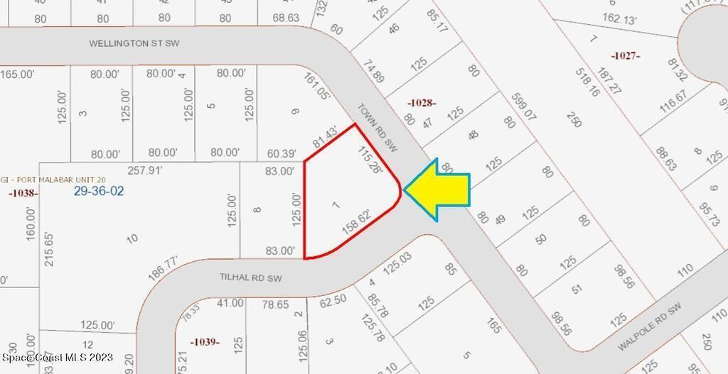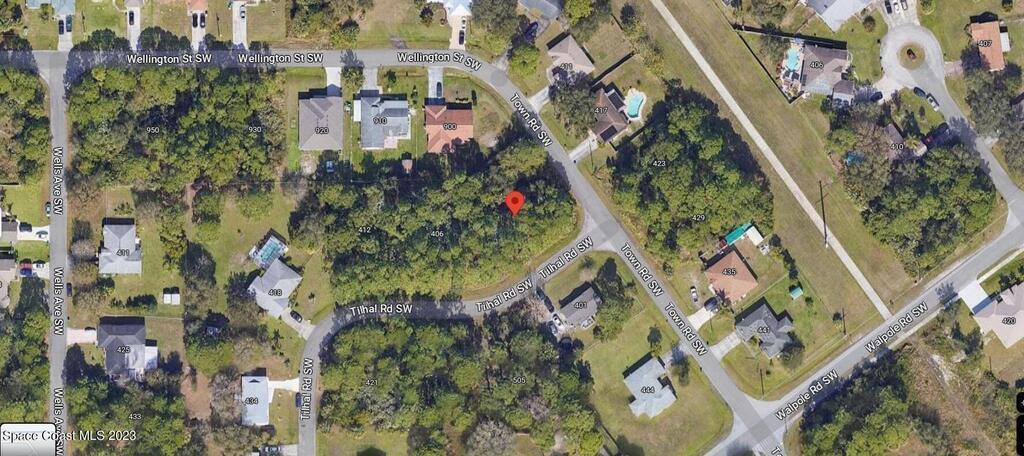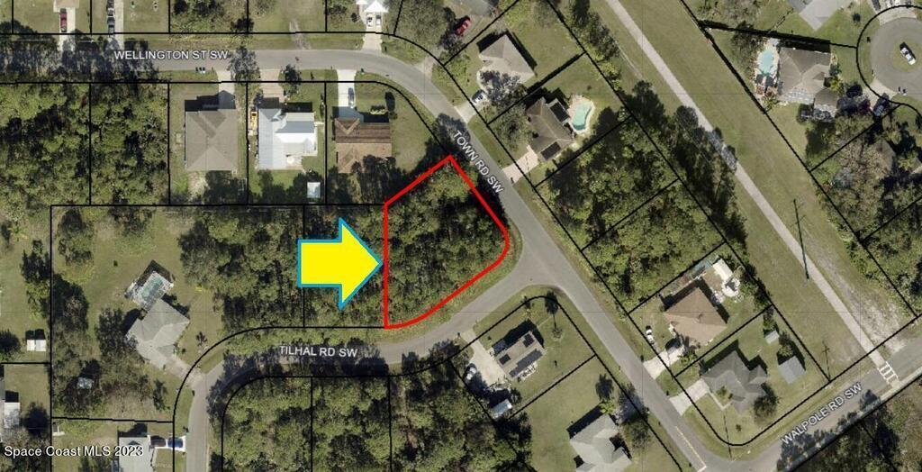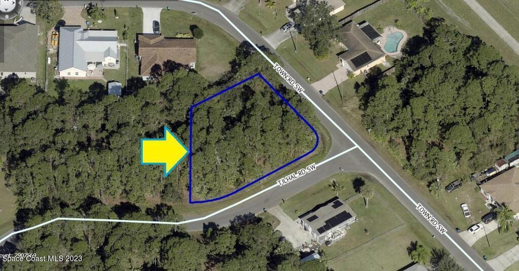 One of 2 side-by-side adjacent lots available in Port Malabar Unit 20 of Palm Bay (the other is 406 Tilhal). Located in the southwest section, this 0.33 acre buildable residential corner lot is just .3 miles - 2 minutes to Jupiter Elementary School, 2 miles - 6 minutes to the Winn Dixie Supermarket, 11.8 miles - 26 minutes to Melbourne Airport, and 14.7 miles - 33 minutes to the beaches of Indialantic. From exit #180 of I-95 go west on US-192 for .5 miles, left on St Johns Heritage Parkway for 6.1 miles, left on Malabar Road for 2.5 miles, right on Jupiter Boulevard for .6 miles, right on Walpole Road for .1 mile, right on Town Road, and left on Tilhal Road. The lot will be on your right.