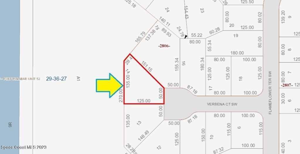 0.28 acre vacant lot available in Port Malabar Unit #52 of Palm Bay. There are no utilities present at this lot or in this area; so the lot and the unit are not build-able. The seller has no knowledge of the property and makes no representations except for title. This property is for investment purposes only in the future of Palm Bay. From exit #176 of I-95 go west on Palm Bay Road for .7 miles, left on Minton Road for 3.3 miles, right on Jupiter Boulevard, and quick left on DeGroodt Road for 2.5 miles. Turn right on J.A.Bombardier for 2.7 miles, left on Kentucky Drive for 1.1 miles, right on Greenfield, left on Flameflower, and right on Verbena. The lot will be on your right at the end of the cul-de-sac.