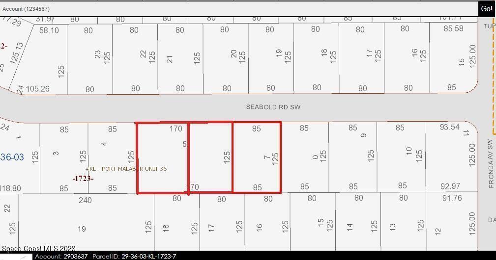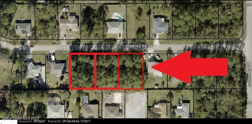 Three-Quarters of an acre with street lights and sidewalk!! Three side-by-side adjacent buildable single family residential lots totaling 0.73 acres available in Port Malabar Unit #36 of Palm Bay. Located in the southwest section, this lot is just .7 miles - 3 minutes to Jupiter Elementary School, 3 miles - 7 minutes to the Winn Dixie Supermarket, 15.8 miles - 29 minutes to Melbourne Airport, and 16.3 miles - 35 minutes to the beaches of Indialantic. From exit #180 of I-95 go west on US-192 for .5 miles, left on St Johns Heritage Parkway for 6.1 miles, left on Malabar Road for 1.8 miles, right on Hurley Boulevard for .7 miles, and left on Seabold Road. The lot will be on your right.