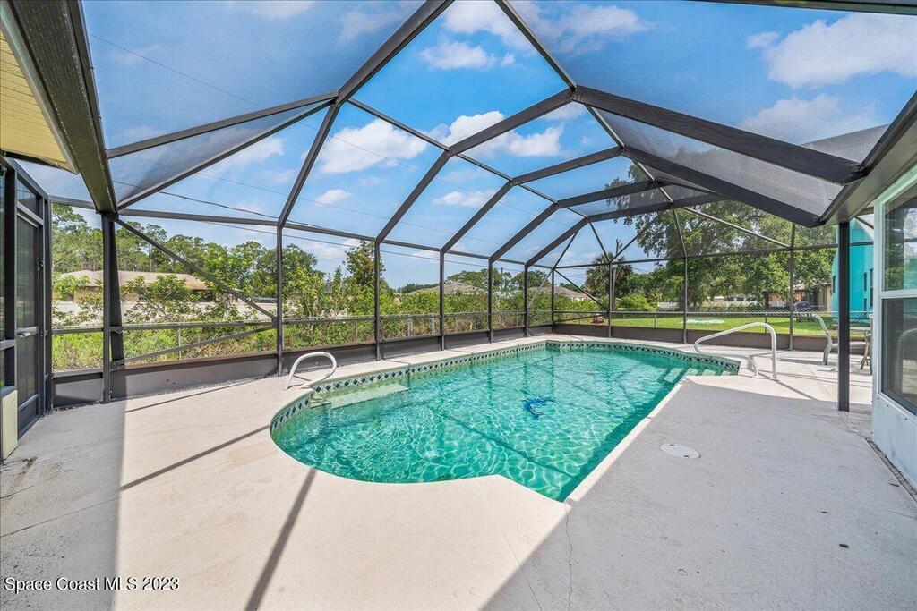 Currently Accepting Back up offers. Discover your serene haven in the up-and-coming area of NW Palm Bay. Embrace this charming 3-bed, 2-bath home sitting on nearly half an acre of spacious land. This home features a large yard with a blank canvas for your ideal outdoor space. The allure continues with a screened-in pool, inviting you to unwind in style. Now, step inside your new sunlit Florida room with a cozy fireplace, perfect for relaxing evenings. This home is nestled in a peaceful neighborhood that embodies tranquility and is teaming with future possibilities and potential. This home eagerly awaits new owners to infuse it with their unique touch of style. Seize the chance to create your blissful oasis - your dream home awaits!