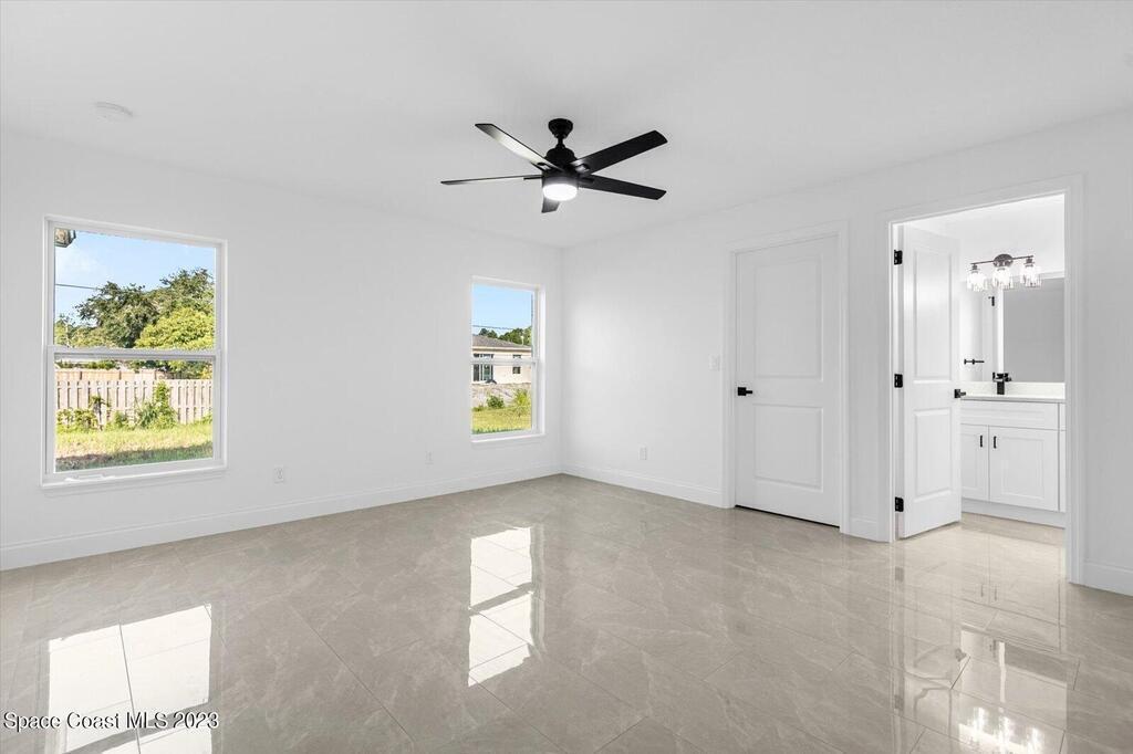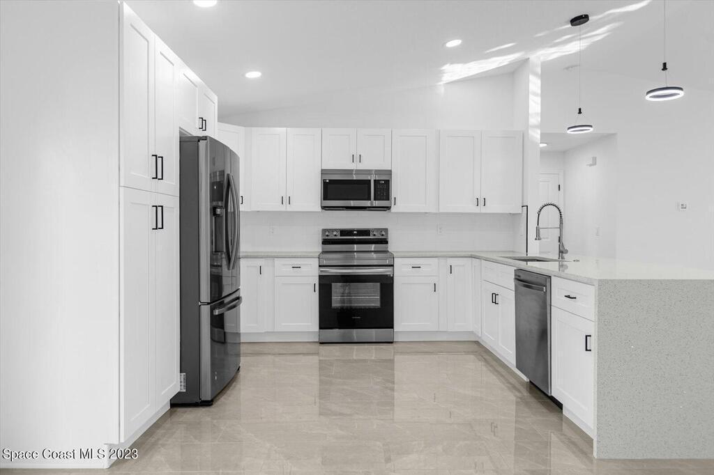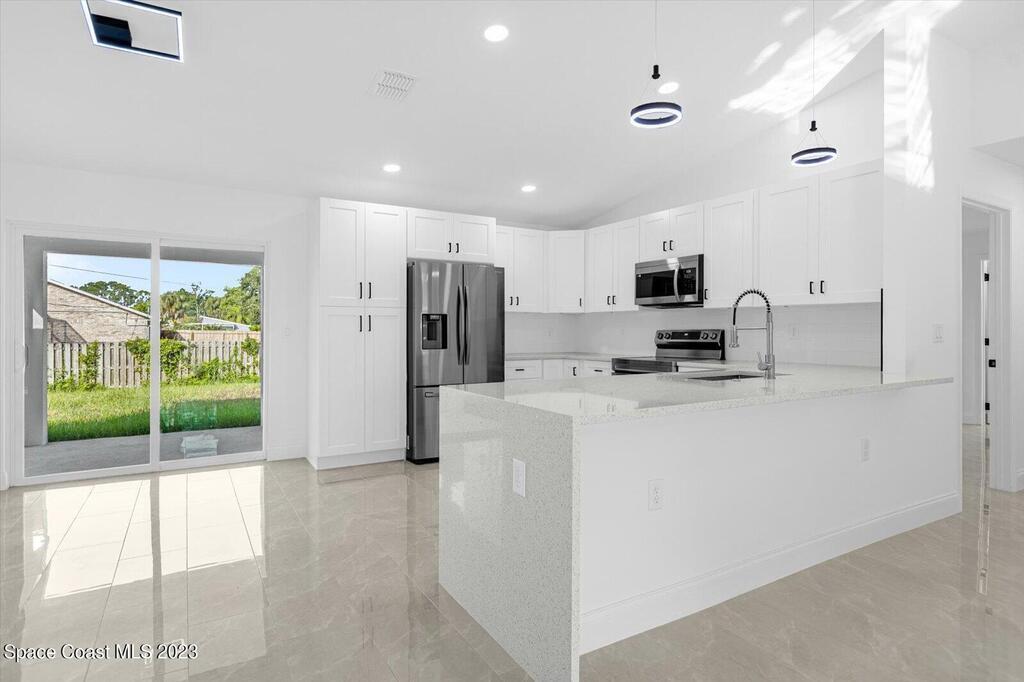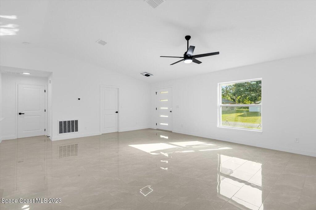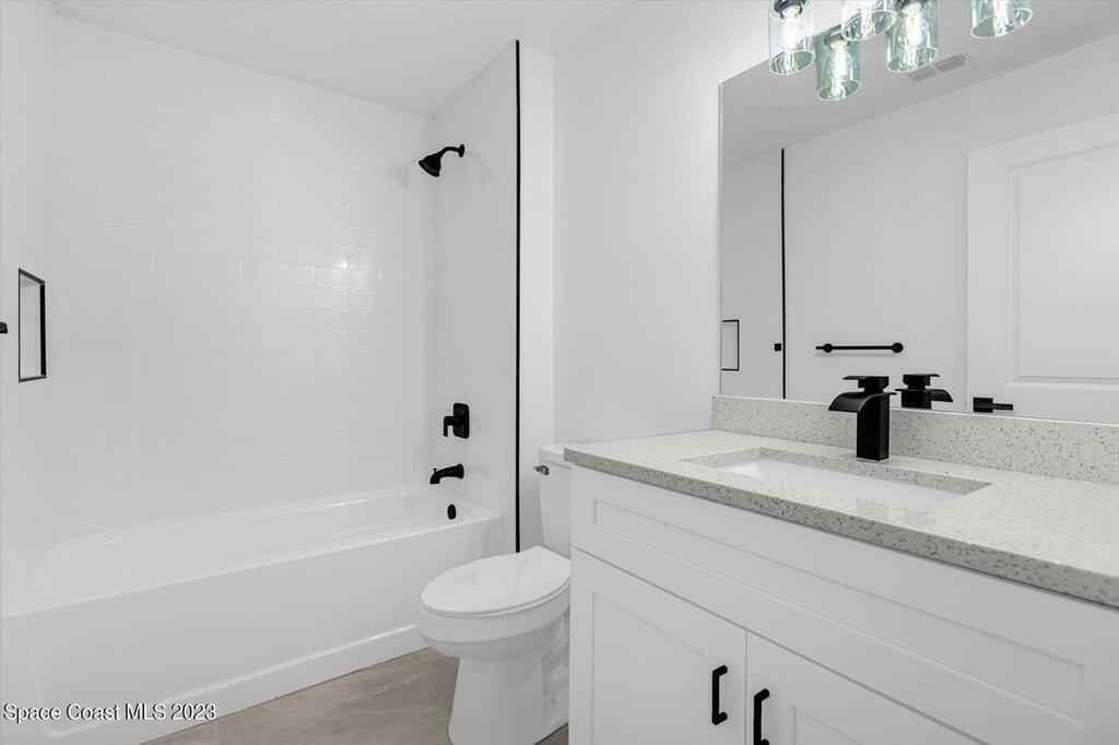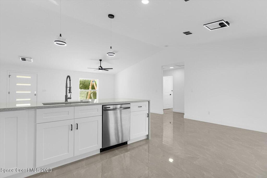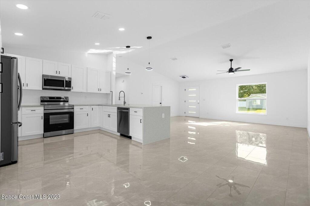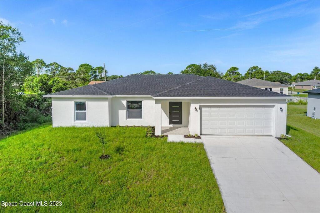 Nestled in Palm Bay, Florida, is this beautiful new construction home. With over 1600 sq ft, it boasts modern luxury and breathtaking charm. The inviting entrance, through a 42-inch front door, sets the tone for the infterior. Inside, a split floor plan, open-concept design, creates a seamless flow between living and entertaining areas. Exquisite finishes of porcelain tile, stainless steel appliances, soft close cabinets and quartz countertops showered in natural light that shows through impact rated windows make this dream home a haven of comfort. Palm Bay is known for its natural beauty, outdoor recreational offerings, and the John. F. Kennedy Space Center. Beautiful beaches, convenient transportation routes for an easy commute, and its proximity to restaurants and shopping.