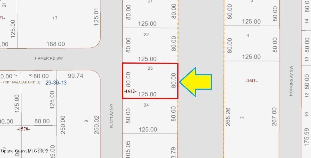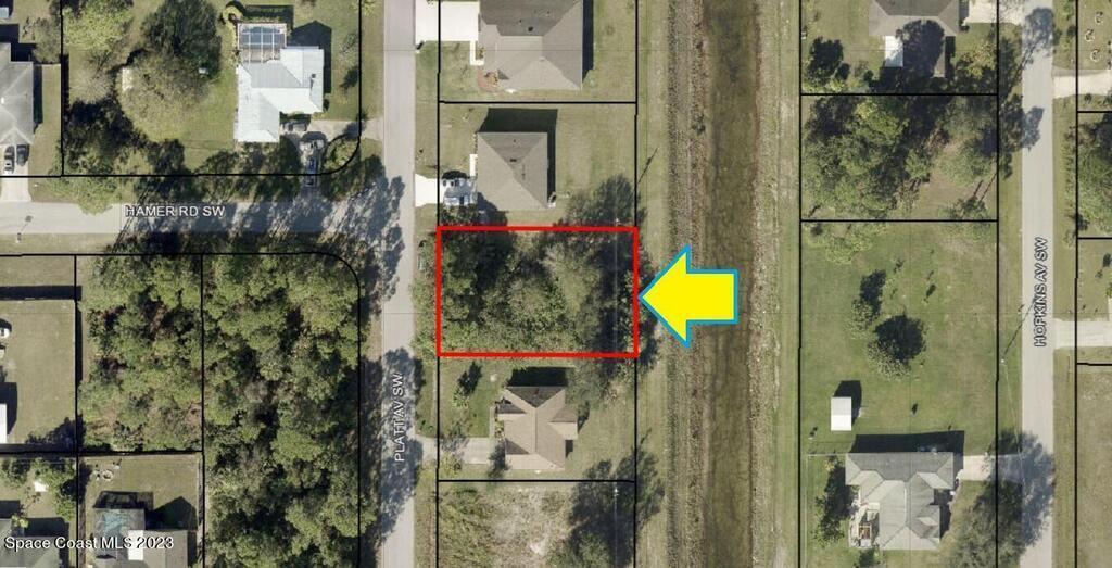 0.23 acre buildable residential lot available in Port Malabar Unit 32 of Palm Bay. Located in the southwest section, this lot has a drainage canal in the rear allowing more privacy, and is just 1 mile - 3 minutes to Bayside High School, 2.4 miles - 6 minutes to the Publix Supermarket, 12.7 miles - 29 minutes to Melbourne Airport, and 15.4 miles - 35 minutes to the beaches of Indialantic. From exit #176 of I-95 go west on Palm Bay Road for .7 miles, left on Minton Road for 3.3 miles, right on Jupiter Boulevard, left on DeGroodt Road for 1.9 miles, right on Falls Church Street, and right on Platt Avenue. The lot will be on your right.