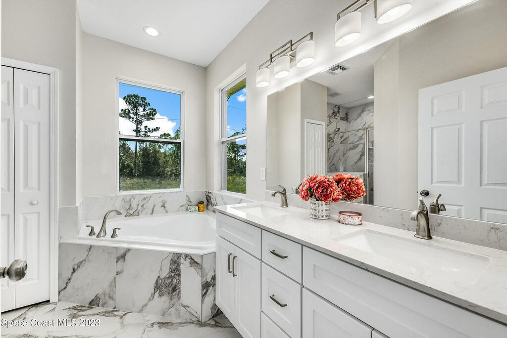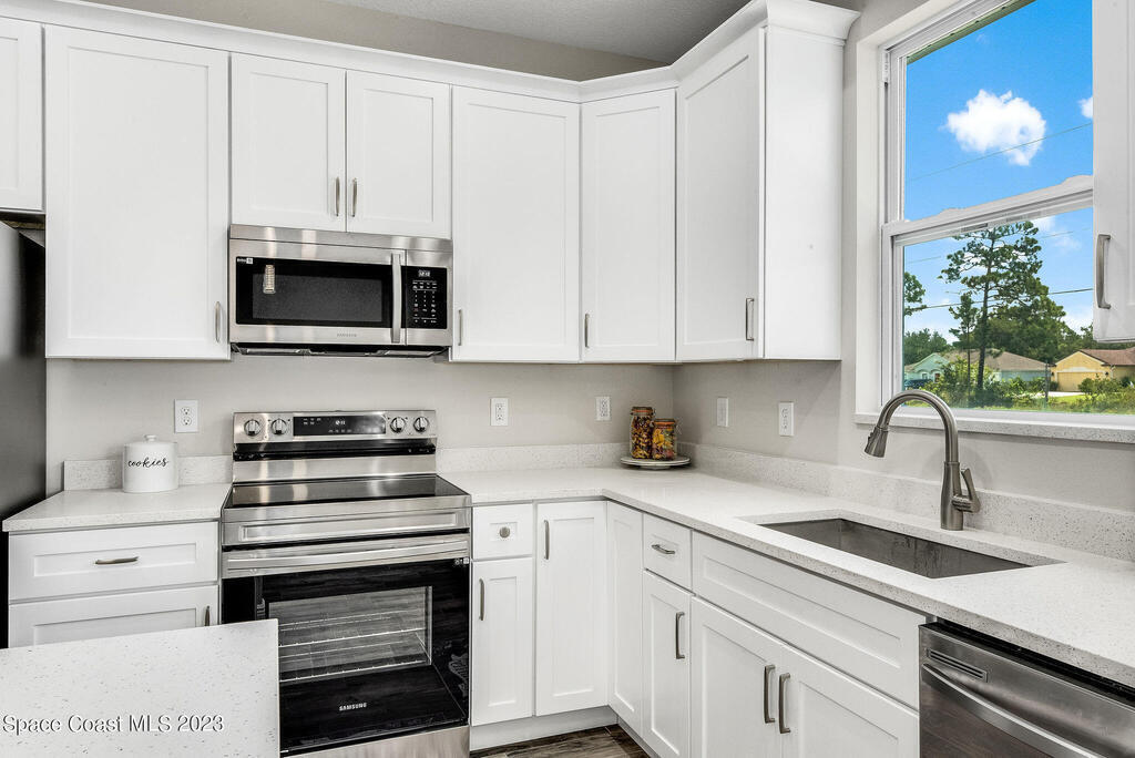 Introducing a fortress of elegance: a new 3-bed, 2-bath haven with a 2-car garage. Hurricane impact windows stand sentinel against nature's fury, ensuring your peace of mind in any storm. Step inside to sleek ceramic flooring, a touch of opulence in every stride. The kitchen, a culinary haven, boasts quartz countertops and stainless steel appliances that gleam.Upgrades abound, from energy-efficient fixtures to cutting-edge technology, a testament to a future-forward approach to living. The master suite offers a sanctuary of serenity, with an en-suite bathroom featuring a rainfall showerhead. Two additional bedrooms provide ample space for family or work.A 2-car garage promises hassle-free parking and storage. The motivated seller offers to assist with closing costs, making your pa
