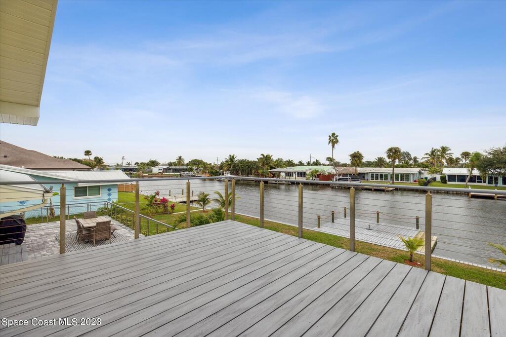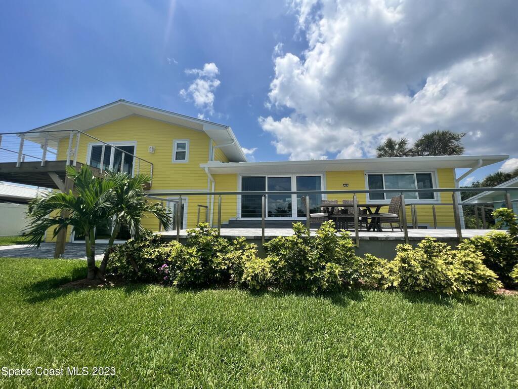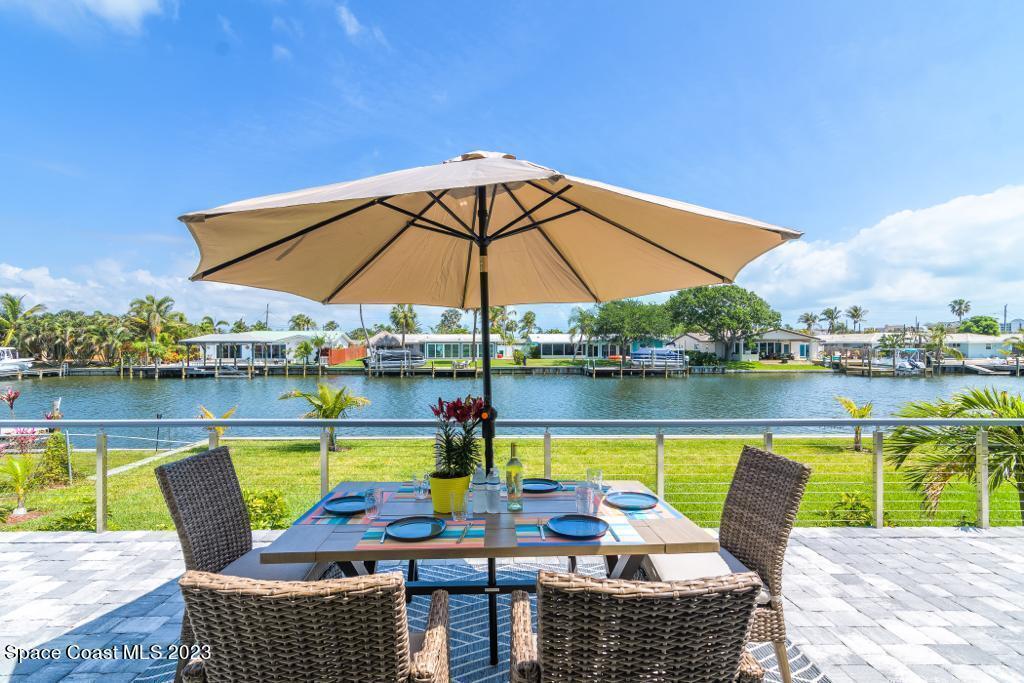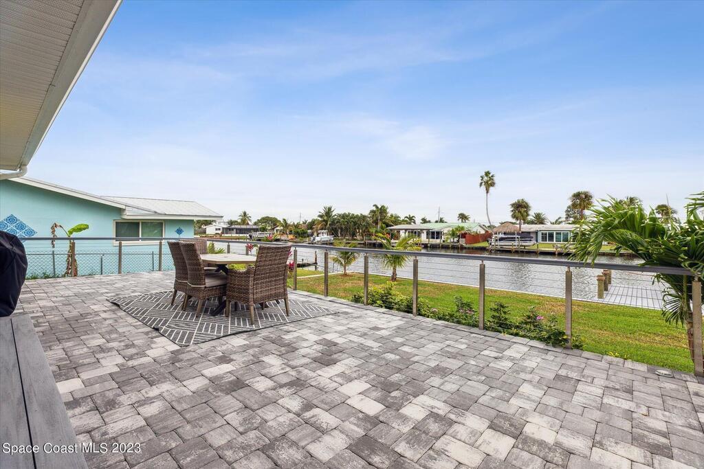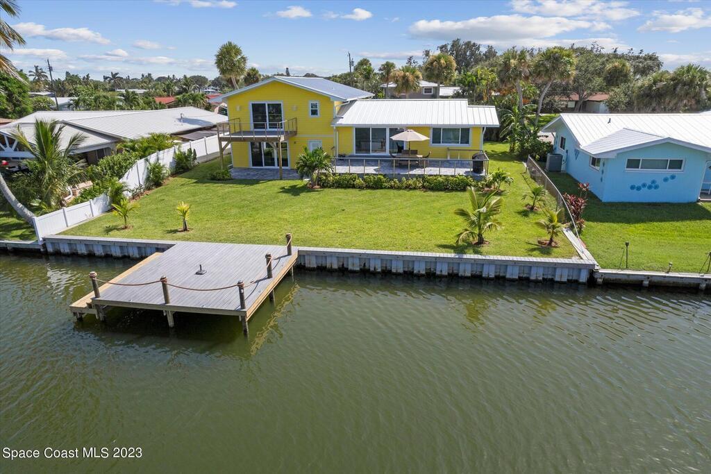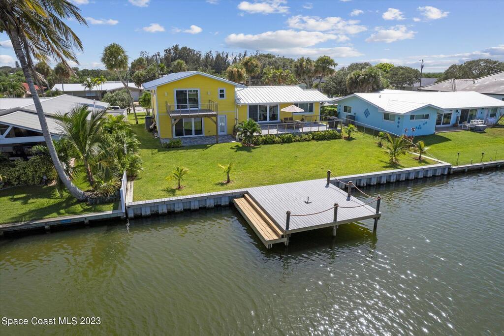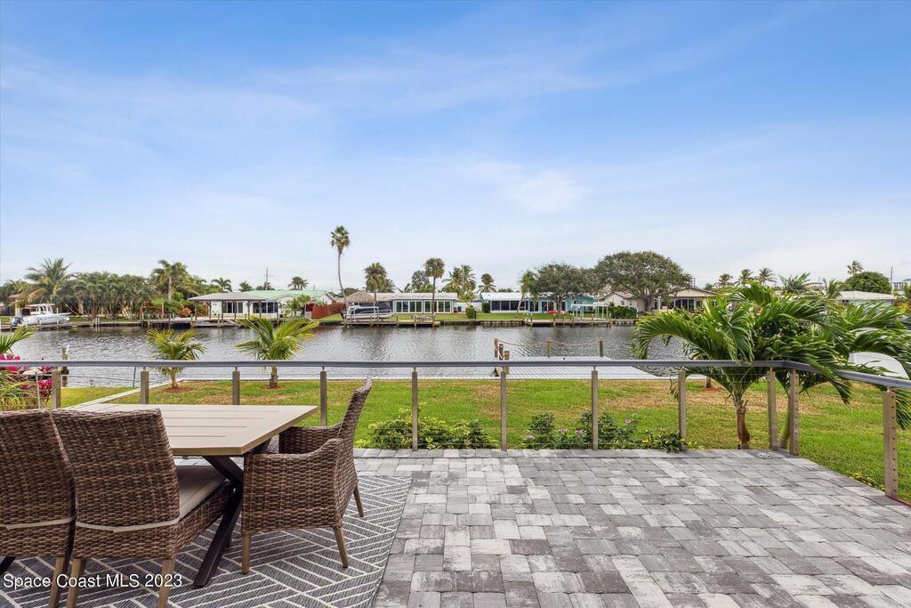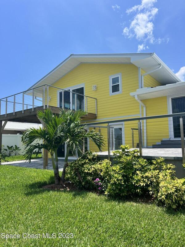Beautiful Cocoa Beach canal front home is SOLD fully furnished and everything is Brand new! Including Plumbing, electrical, interior, exterior, roof, AC, impact doors and windows, hot water heater, landscaping, paver patio/porches, seawall & dock. With over 3000 square feet of outdoor and indoor living space this home has an open floor plan, that features high ceilings, modern European finishes, and plenty of natural light. The large primary suite is a true retreat, with a beautiful bathroom and a private balcony overlooking the amazing backyard and waterfront canal. Three additional bedrooms offer ample space for family or visiting friends, each boasting its own unique charm and style. The backyard is the ideal spot for outdoor entertaining, with wonderful landscaping that promises endless hours of fun.