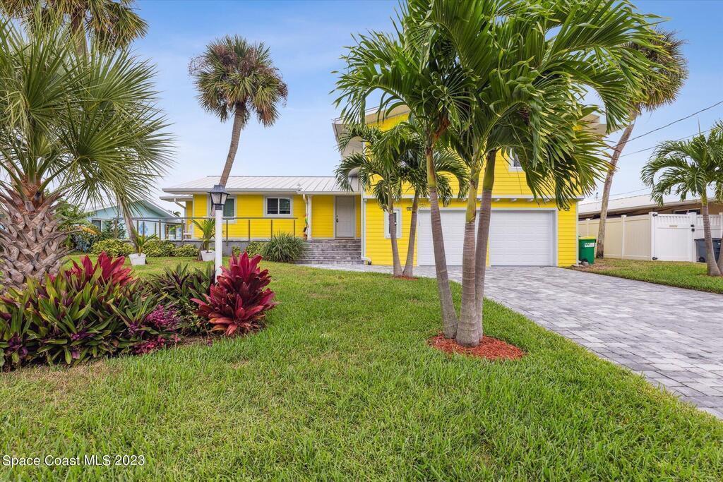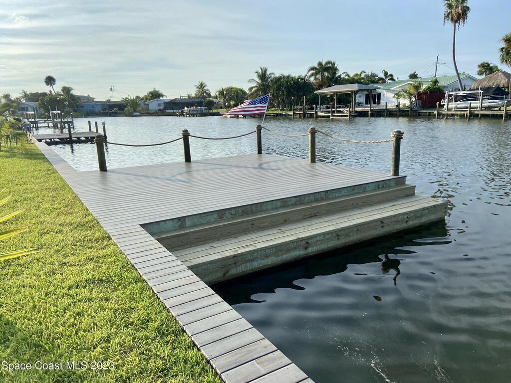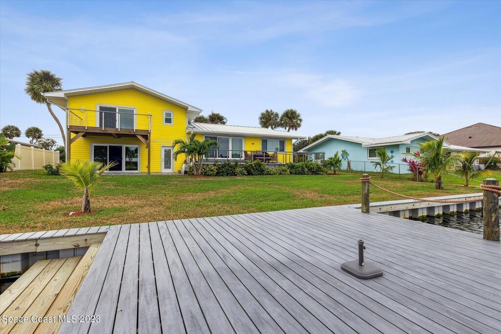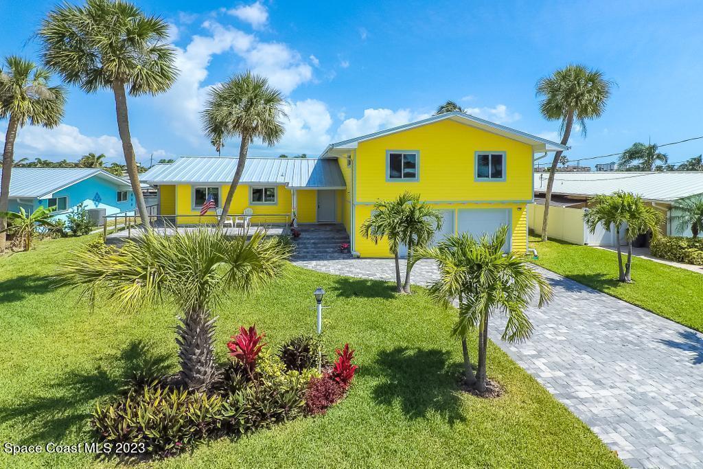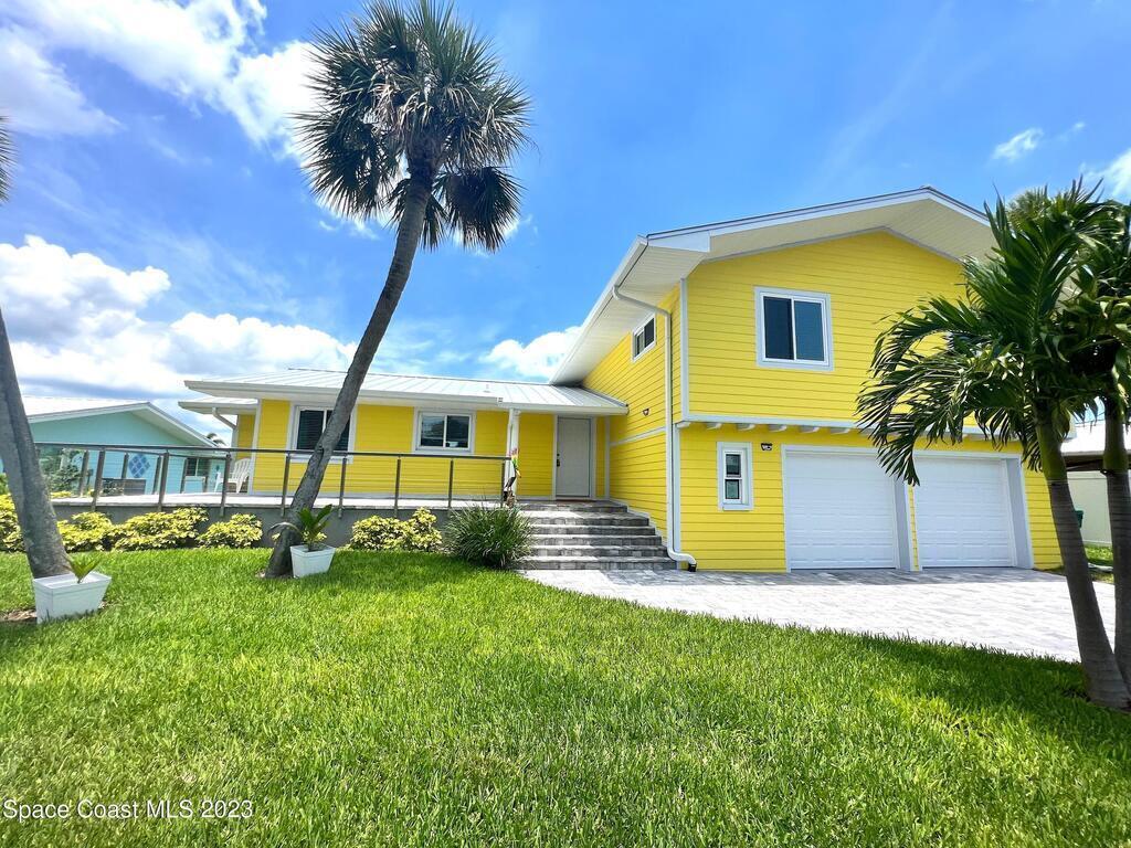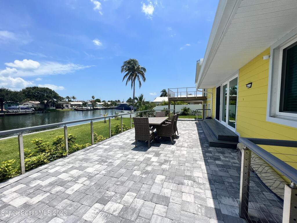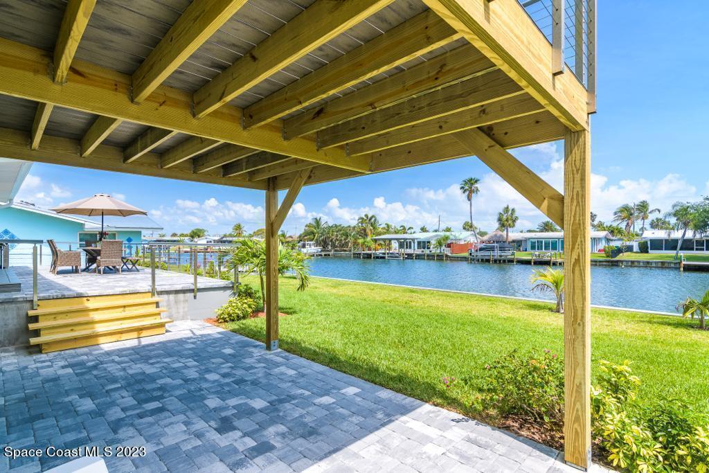 Beautiful Cocoa Beach canal front home is SOLD fully furnished and everything is Brand new! Including Plumbing, electrical, interior, exterior, roof, AC, impact doors and windows, hot water heater, landscaping, paver patio/porches, seawall & dock. With over 3000 square feet of outdoor and indoor living space this home has an open floor plan, that features high ceilings, modern European finishes, and plenty of natural light. The large primary suite is a true retreat, with a beautiful bathroom and a private balcony overlooking the amazing backyard and waterfront canal. Three additional bedrooms offer ample space for family or visiting friends, each boasting its own unique charm and style. The backyard is the ideal spot for outdoor entertaining, with wonderful landscaping that promises endless hours of fun.