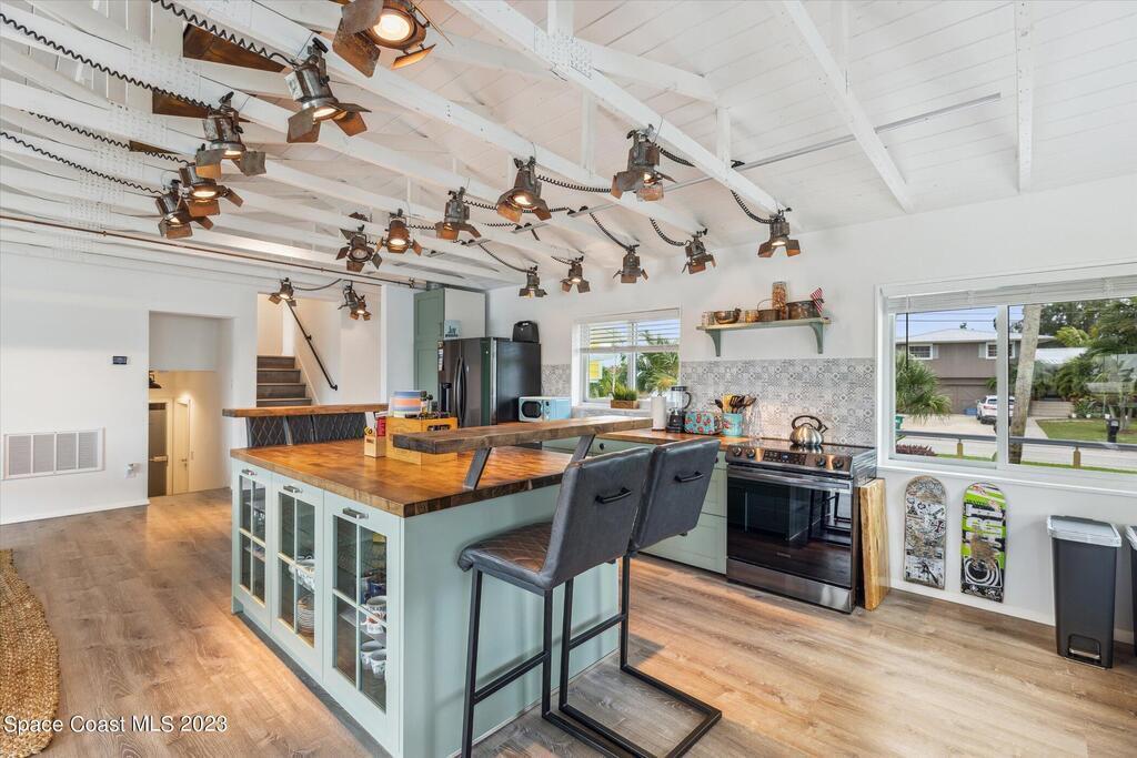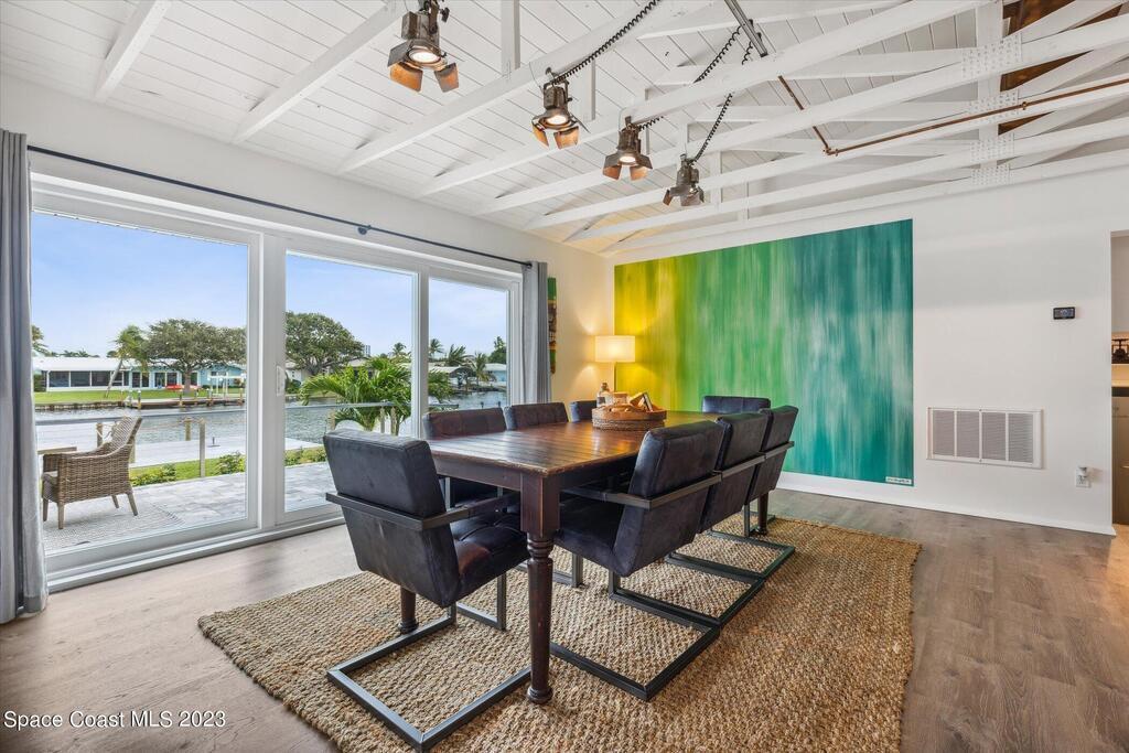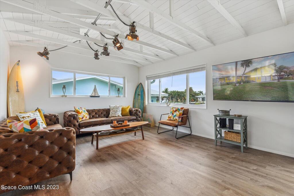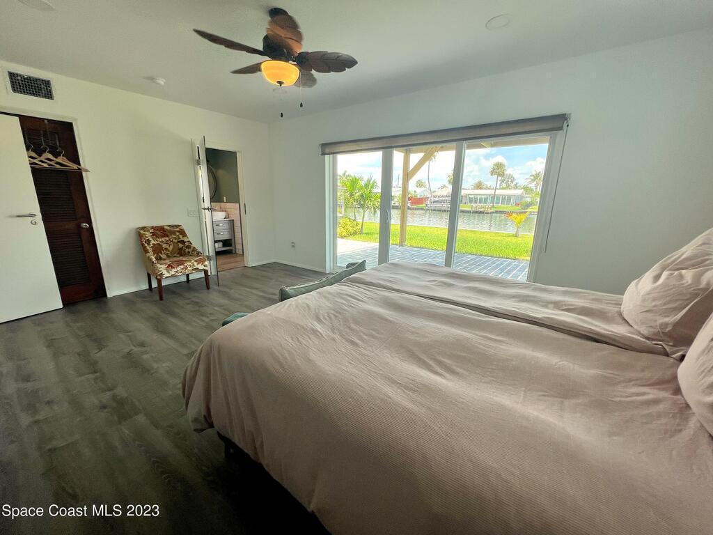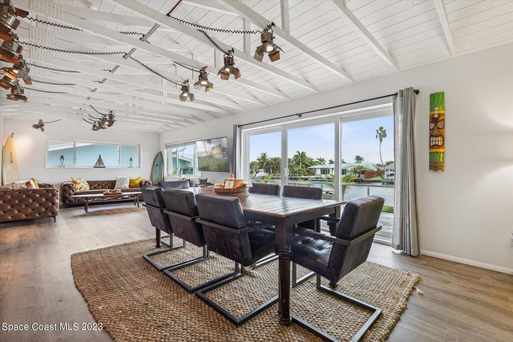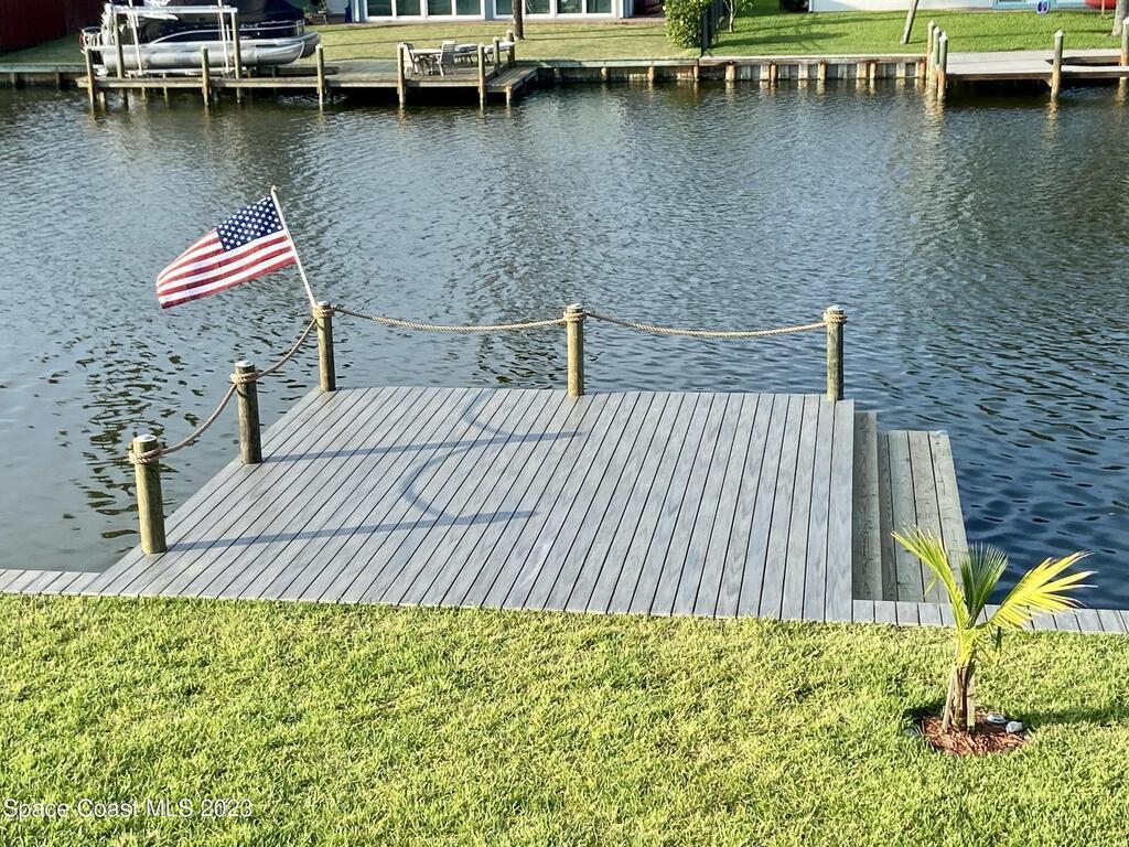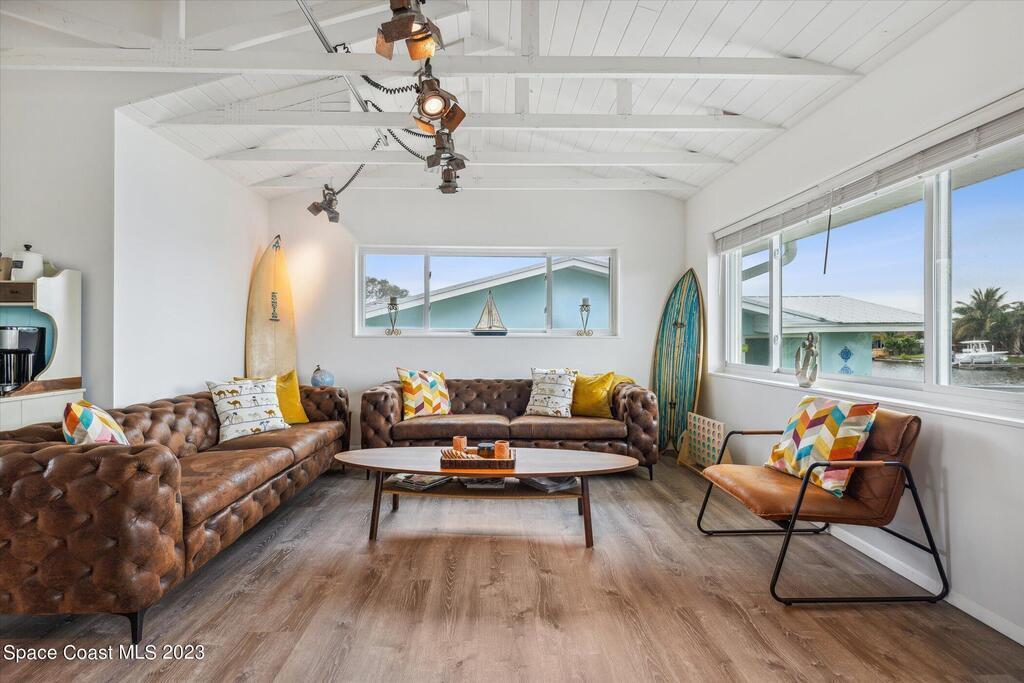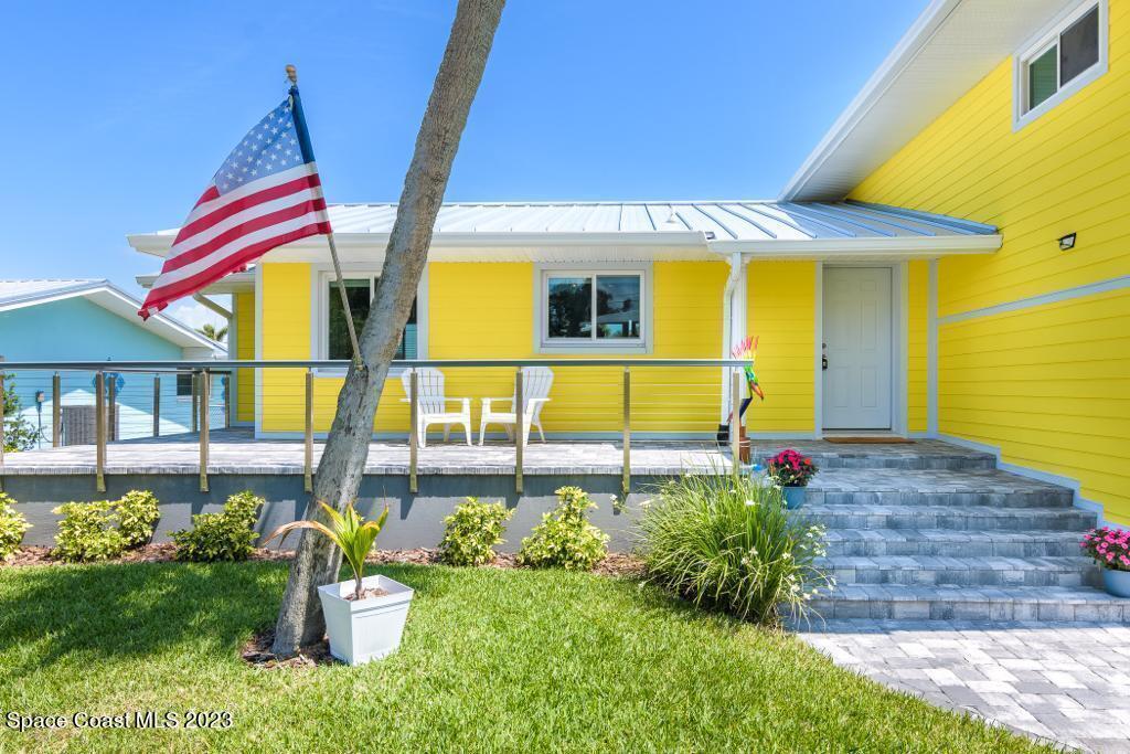 Beautiful Cocoa Beach canal front home is SOLD fully furnished and everything is Brand new! Including Plumbing, electrical, interior, exterior, roof, AC, impact doors and windows, hot water heater, landscaping, paver patio/porches, seawall & dock. With over 3000 square feet of outdoor and indoor living space this home has an open floor plan, that features high ceilings, modern European finishes, and plenty of natural light. The large primary suite is a true retreat, with a beautiful bathroom and a private balcony overlooking the amazing backyard and waterfront canal. Three additional bedrooms offer ample space for family or visiting friends, each boasting its own unique charm and style. The backyard is the ideal spot for outdoor entertaining, with wonderful landscaping that promises endless hours of fun.