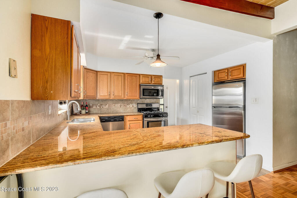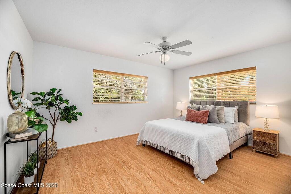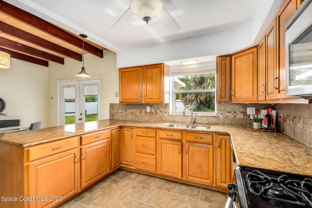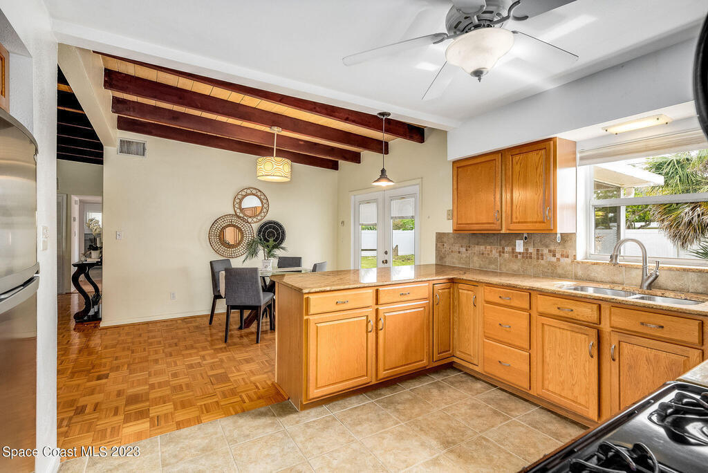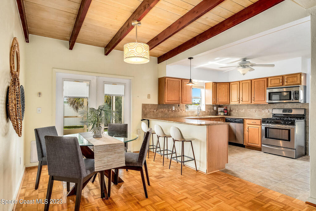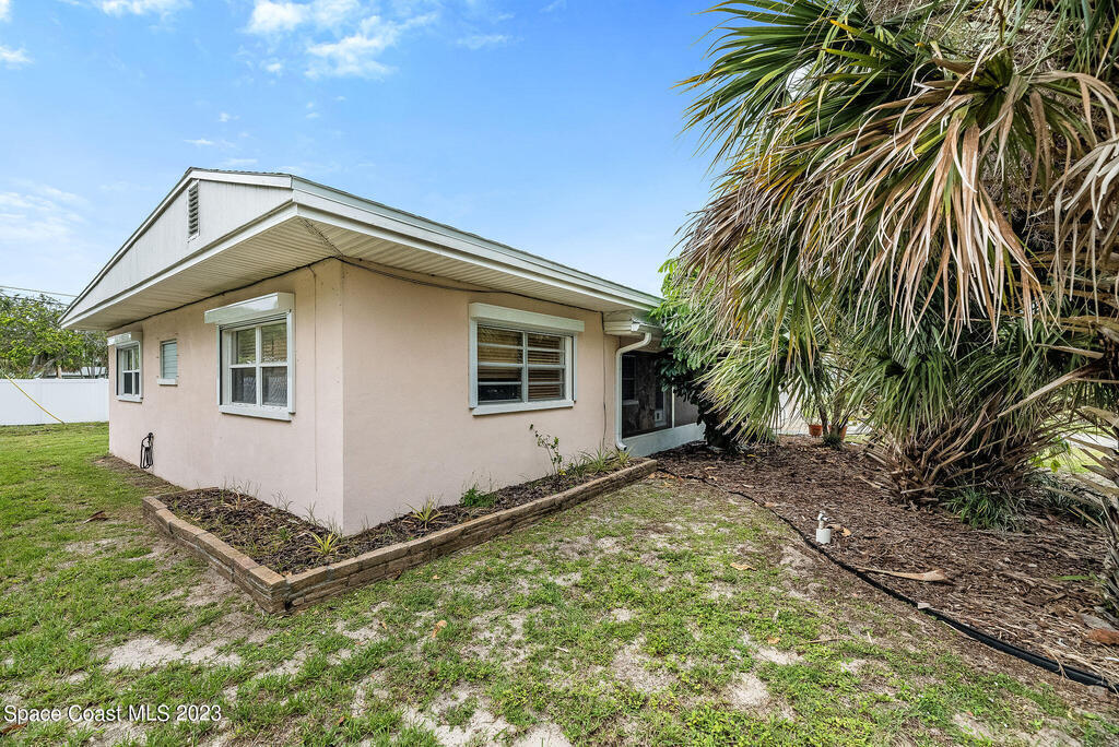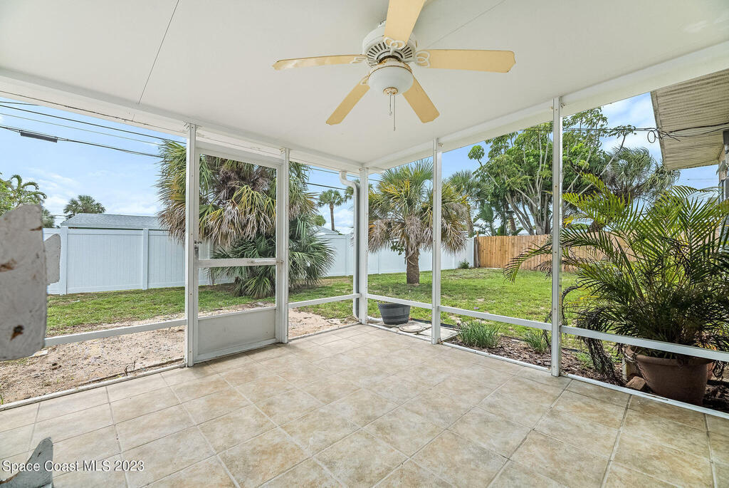 Beachside bungalow in the heart of Indialantic. Just steps to the Atlantic Ocean you will find this cozy home a great fit for your beachside oasis. Pristine Original Parkay flooring throughout main living areas. Living room is accented with vaulted custom exposed beams giving it tons of personality. The kitchen tastefully remodeled to offer solid wood cabinetry and granite. Also offers a large breakfast bar that overlooks a quaint dining area. The roof replaced in 2019 Screened porch overlooks your large backyard, almost fully fenced.