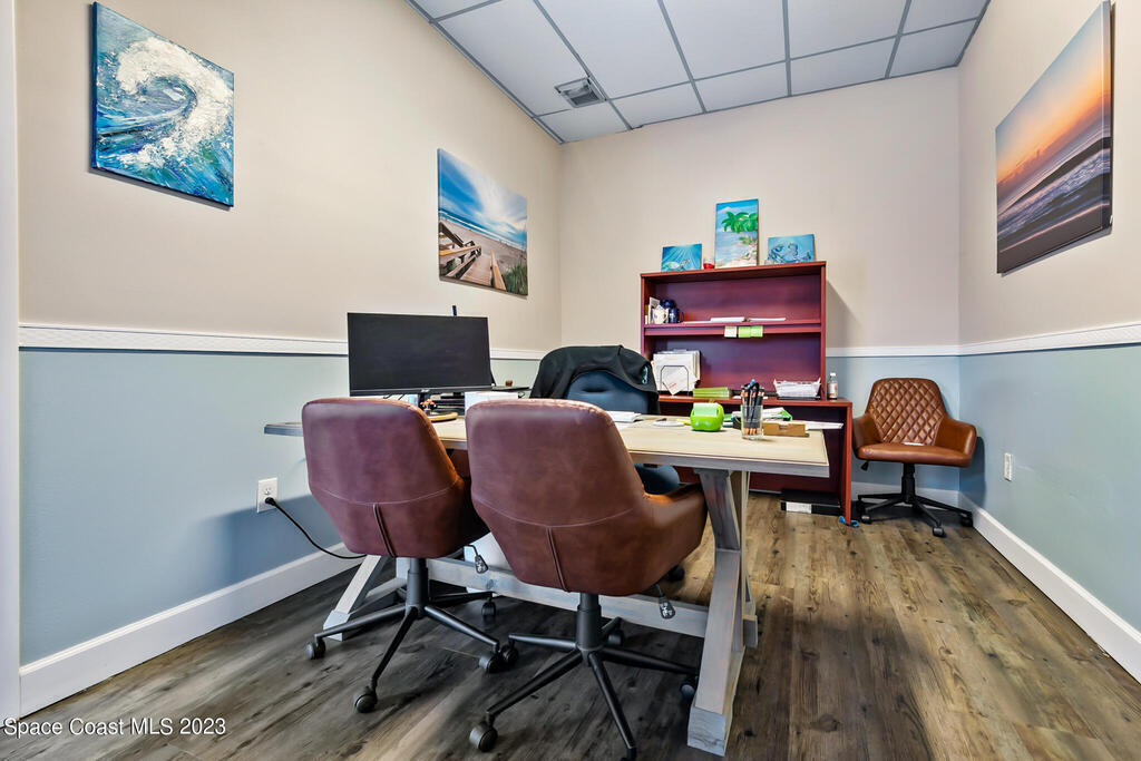 Locate Your Business or Office in Paradise! Check out this 930 sf commercial space located in Sea Park Plaza just across the street from the beach. With BU-1, general retail commercial zoning, there are many possibilities such as office use, retail store or shop, professional services and much more. Don't miss this great wide-open space with wood-look vinyl plank flooring, single bathroom and opening to the adjacent unit. Association Fee is $381.70/month, includes water, exterior insurance and common area maintenance. The adjacent unit (end-unit) is also for sale; combine both for a total of 1,860 sf (MLS 966613 and MLS966617) or occupy one and lease out the other. Ideally located less than a mile to Pineda Causeway and great exposure with over 20,000 cars per day along A1A.