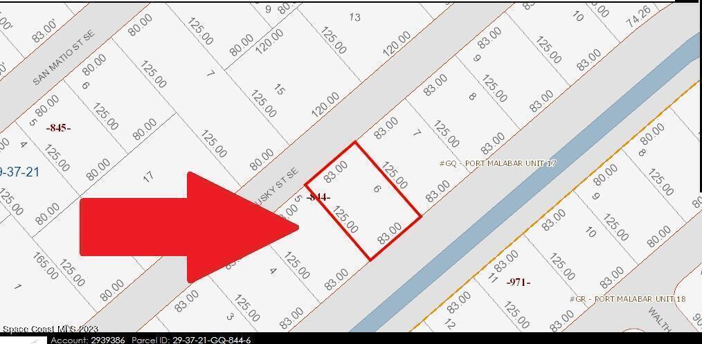 1 of 2 side-by-side buildable single family residential lots [Rs2 Zoning] with a drainage right-of-way easement canal in the back available in Port Malabar Unit #17 of Palm Bay. The lots that are adjacent to each other are 1150 and 1160 Sandusky. Nicely located in the SE Section of Palm Bay near Bayside Lakes, this property is just 2 miles -5 minutes- to Publix Shopping, 3.6 miles -8 minutes- to Bayside High and Westside Elementary Schools, 11.7 miles -24 minutes- to the Melbourne Square Mall, and just 13.9 miles -29 minutes- to the beaches in Indialantic. From Exit #173 of I-95 go west on Malabar Road. Turn left on San Filippo Drive SE and proceed south for 3.9 miles. Turn right on Sandusky Street SE. The lot will be on the left.