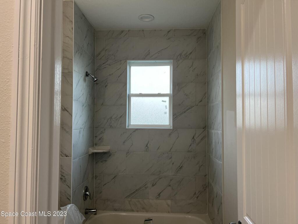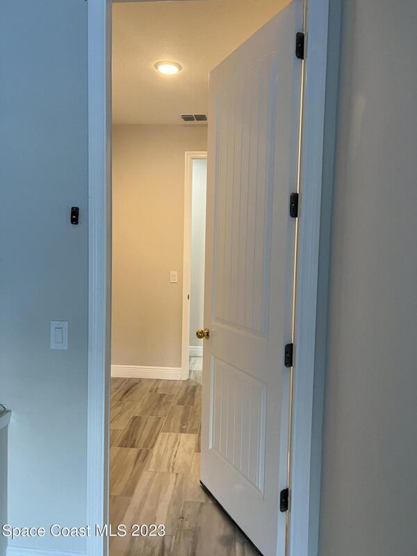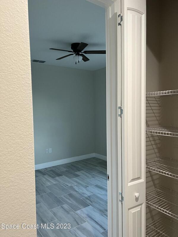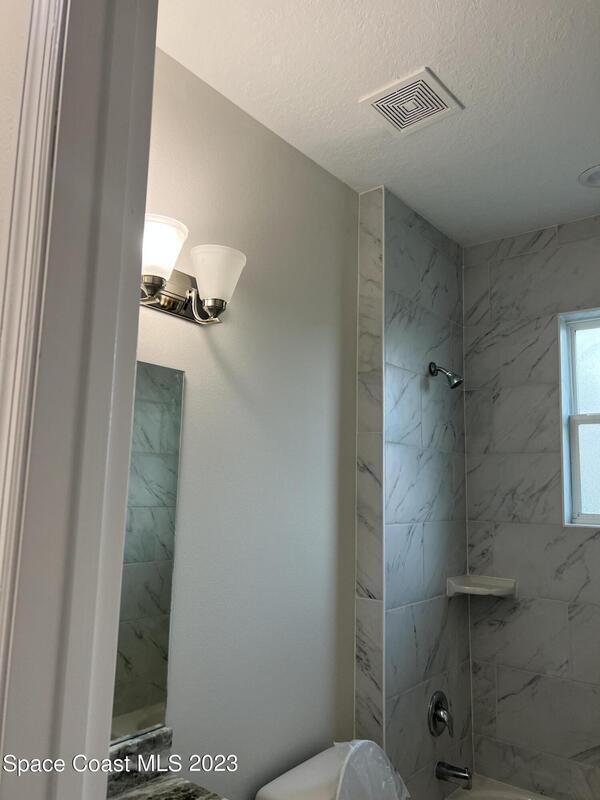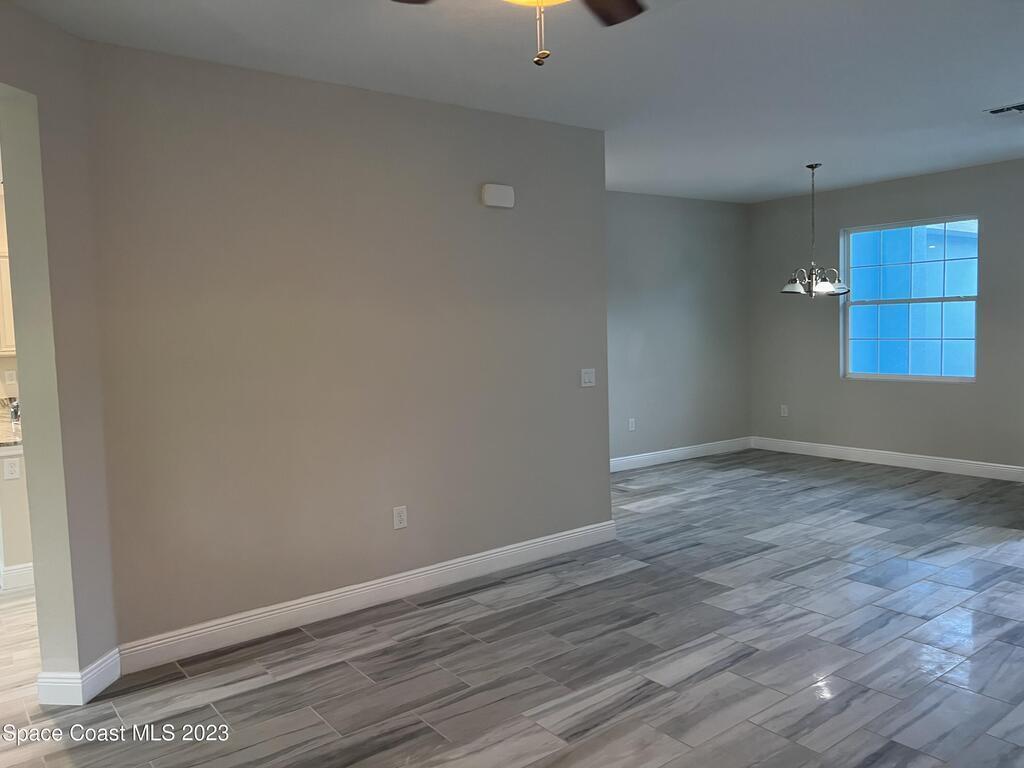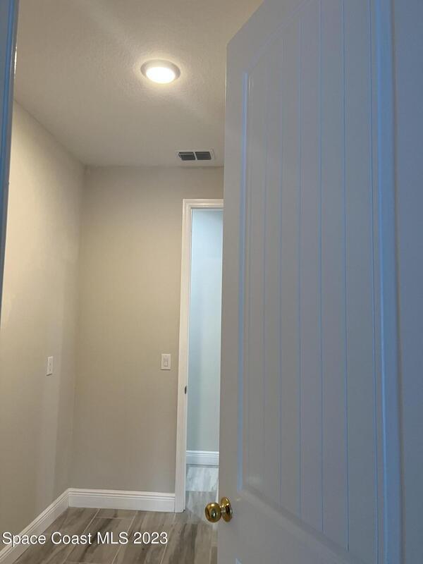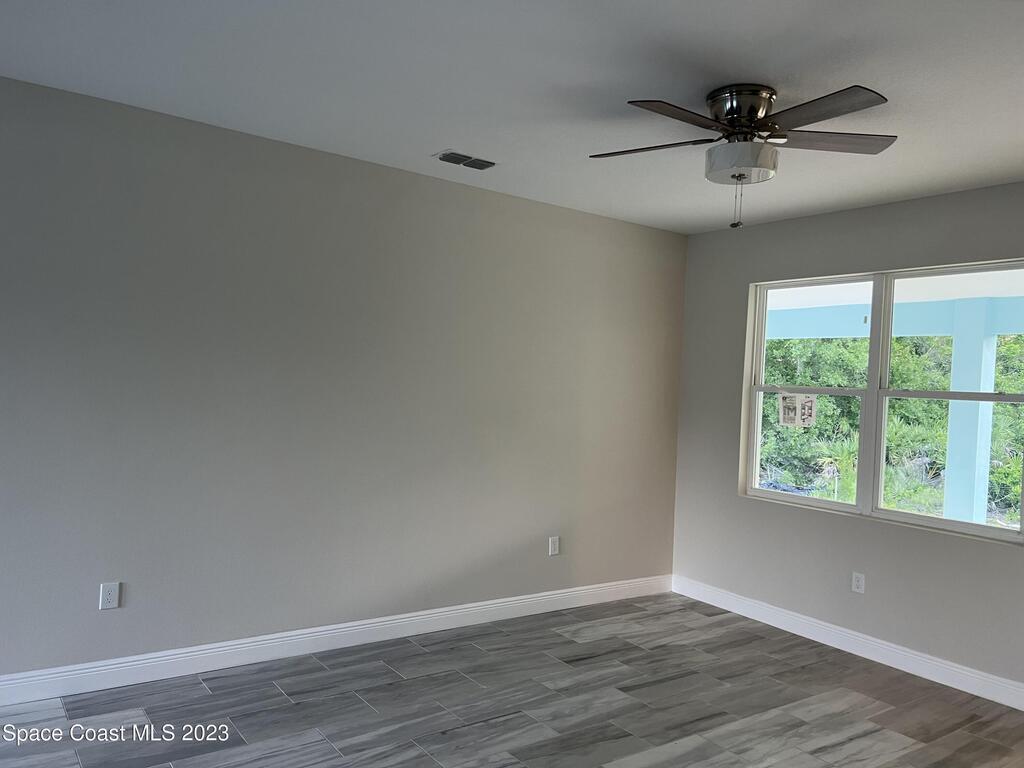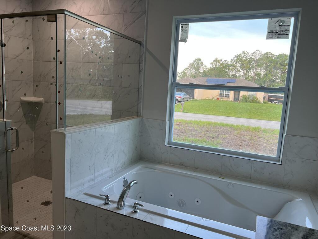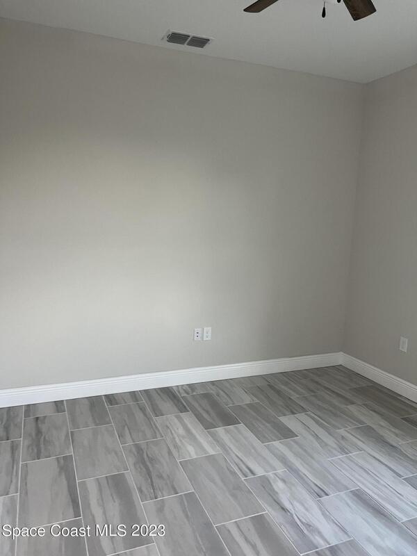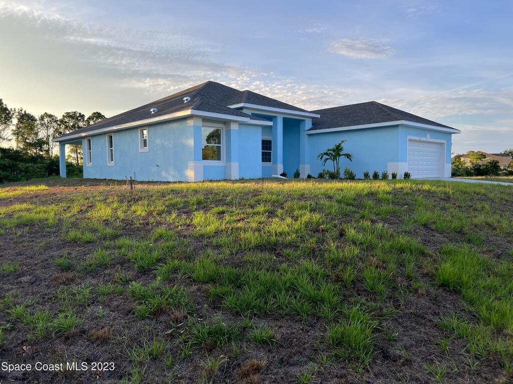 Come to see this new construction custom designed 4 bedrooms, 3 full bathrooms house. It's unique in Palm Bay. It offers separate dining room, living room, breakfast nook and a spacious family room with a sliding door opens to the large trussed covered back porch and windows and gutters all around. The spacious master suite features two windows and a sliding door facing the back porch, large walking closet for hers and closet for his, Jetted Bathtub, tiled shower with glass door, double sinks, and a large linen closet. This home offers 9.4 ft ceilings throughout and 12.8 ft ceilings front porch. It has a beautiful kitchen with stainless steel appliances. It offers a large laundry room with a large linen closet, linen closets near each room, and tiles throughout. You must see it!