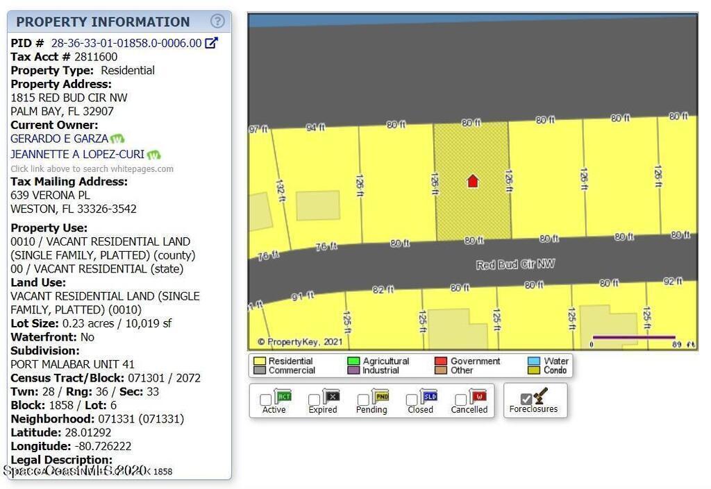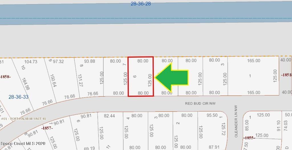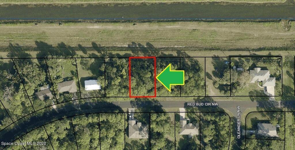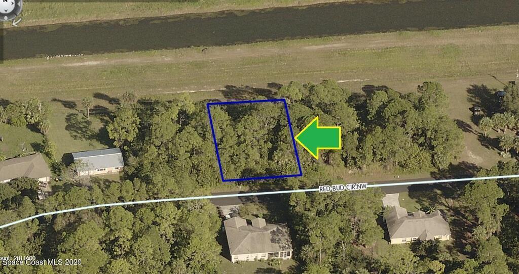 0.23 acre buildable single family residential lot available in Port Malabar Unit #41 of Palm Bay. Located in the highly desirable northwest section near the Parkway, this lot has a drainage canal in the rear allowing more privacy, and is just 3 miles - 8 minutes to Heritage High School, 4.1 miles - 9 minutes to the Winn Dixie Supermarket, 13.6 miles - 28 minutes to Melbourne Airport, and 16.3 miles - 35 minutes to the beaches of Indialantic. From exit #180 of I-95 go west on US-192 for .5 miles, left on St. Johns Heritage Parkway, left on Malabar Road for 1.3 miles, left on Krassner Drive for .9 miles, and right on Red Bud Circle. The lot will be on your right.
