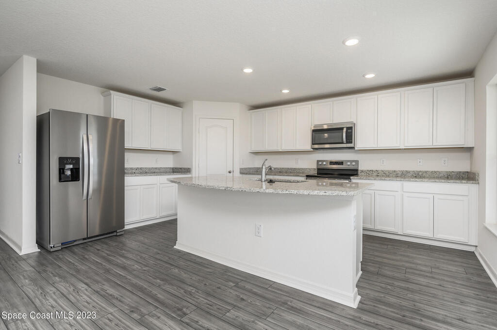 Located within the highly sought-after area of Palm Bay, the Capri is more than movein ready. This one-story home features an open-concept floor plan, 5 bedrooms and 3 full bathscomplete with over $10,000 in upgrades. including energy-efficient Whilrpool(r) appliances,sprawling granite countertops in the kitchen, beautiful wood cabinets, brushed nickel hardware and an attached two-car garage. The Capri also consists of a covered back patio, front yard landscaping and a master suite complete with a massive walk-in closet. Best of all, Palm Bay offers residents a premier location with convenient access to nearby golf courses, world-class area beaches and amenity-packed parks.**appliance models are subject to availability**