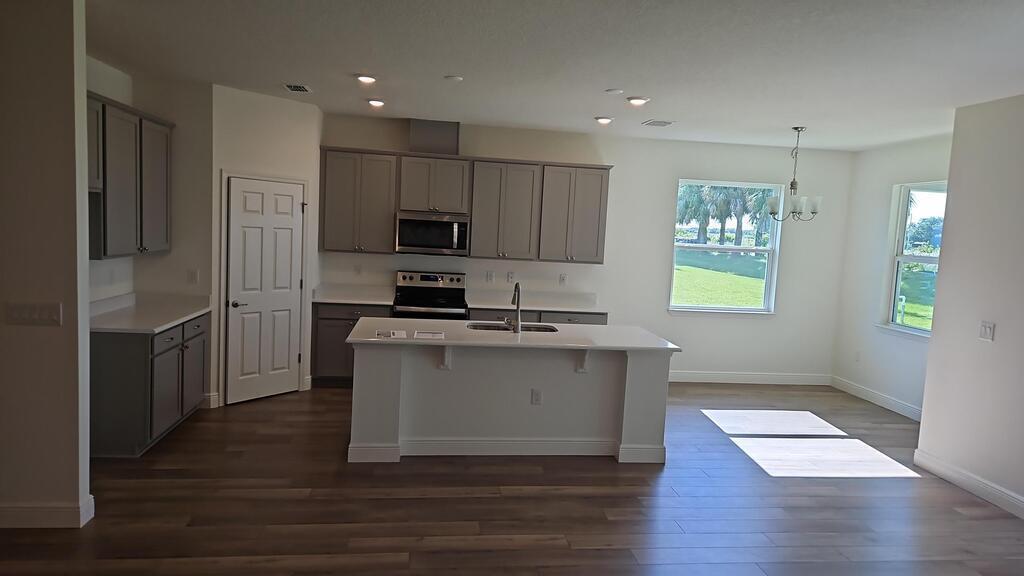 Sanibel Model! As you enter the foyer transforms into the large Dining Room/Great Room area. This popular plan has a great Kitchen for entertaining with lots of counter space and an island for food prepping, a shelved walk-in pantry and Whirlpool appliances. Overlooking the spacious Great Room, step out to the Lanai outdoor entertaining. Flanking the Great Room is the Owners Suite, which has its own Tiled Shower, Vanity with two sinks, ample Counter Space and roomy Walk In Closet. Save on utilities with energy efficient 15 SEER A/C, Low E/Double Pane windows and a Solar Attic Fan.