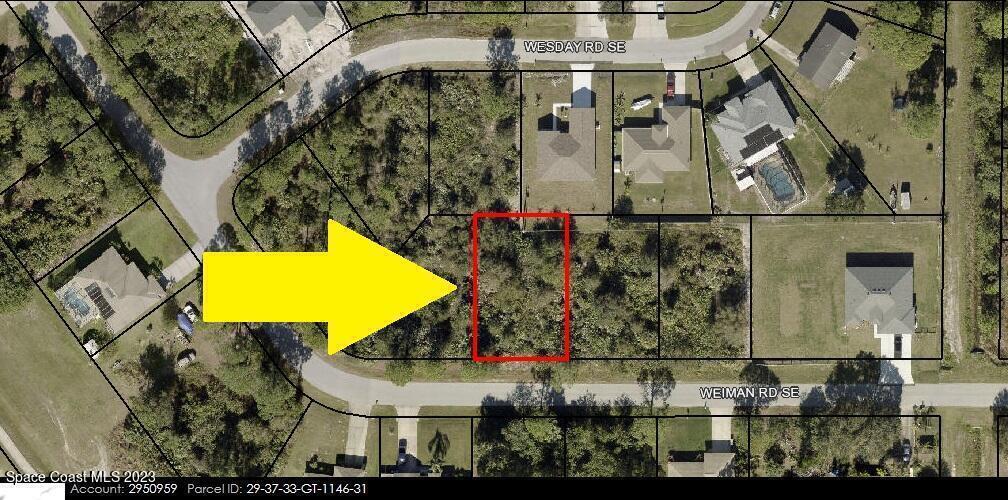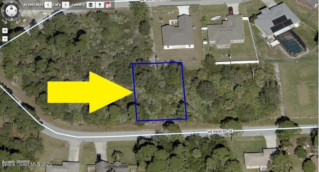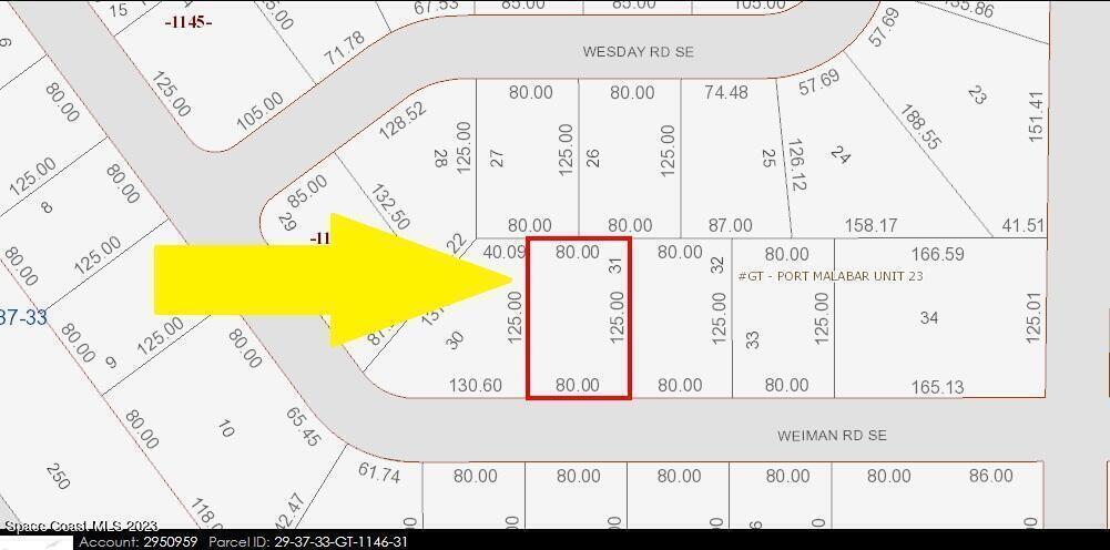 1 of 2 side-by-side adjacent buildable single family residential lot available in Port Malabar Unit #22 of Palm Bay. Nicely located in the SE section near the Bayside Lakes Subdivision, this lot is s just 4.6 miles -9 miles- to Publix Shopping, 5.8 miles -11 minutes- to Bayside High and Westside Elementary Schools, 7.3 miles -15 minutes- to the Shoppes of Palm Bay, 13.9 miles -29 minutes to the Melbourne Int'l Airport, and just 15. miles -33 minutes- to the Indialantic Beaches. From Exit #173 of I-95 go east on Malabar Road Se. Turn right on Babcock Street and proceed south for 6 miles. Turn right on Weiman Road SE The lot is on the right. Owner would like to sell this lot along with the adjacent lot on 1545 Weiman