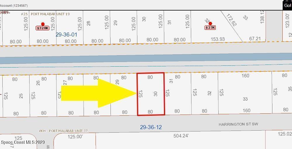 0.23 acre buildable single family residential lot with a drainage right-of-way easement in the aback available in Port Malabar Unit #37 of Palm Bay. Located in the southwest section, this lot is just 1.3 miles - 4 minutes to Jupiter Elementary School, 2.1 miles - 5 minutes to the Winn Dixie Supermarket, 11.9 miles - 27 minutes to Melbourne Airport, and 14.5 miles - 33 minutes to the beaches of Indialantic. From exit #173 of I-95 go west on Malabar Road for .2 miles, left on San Filippo Drive for .5 miles, right on Jupiter Boulevard for 3.4 miles, left on Garvey Road for .3 miles, and left on Harrington Street. The lot will be on your left.