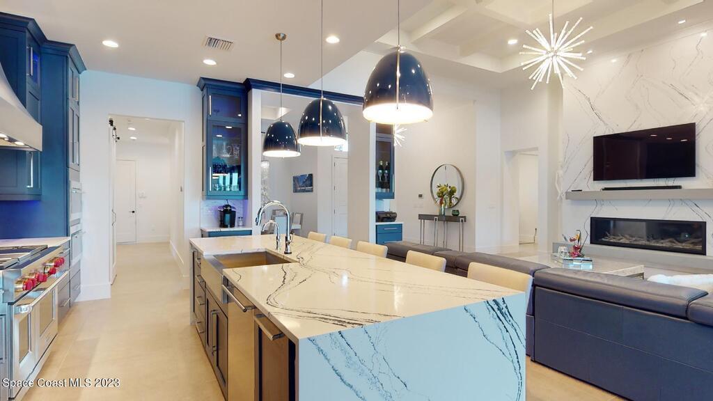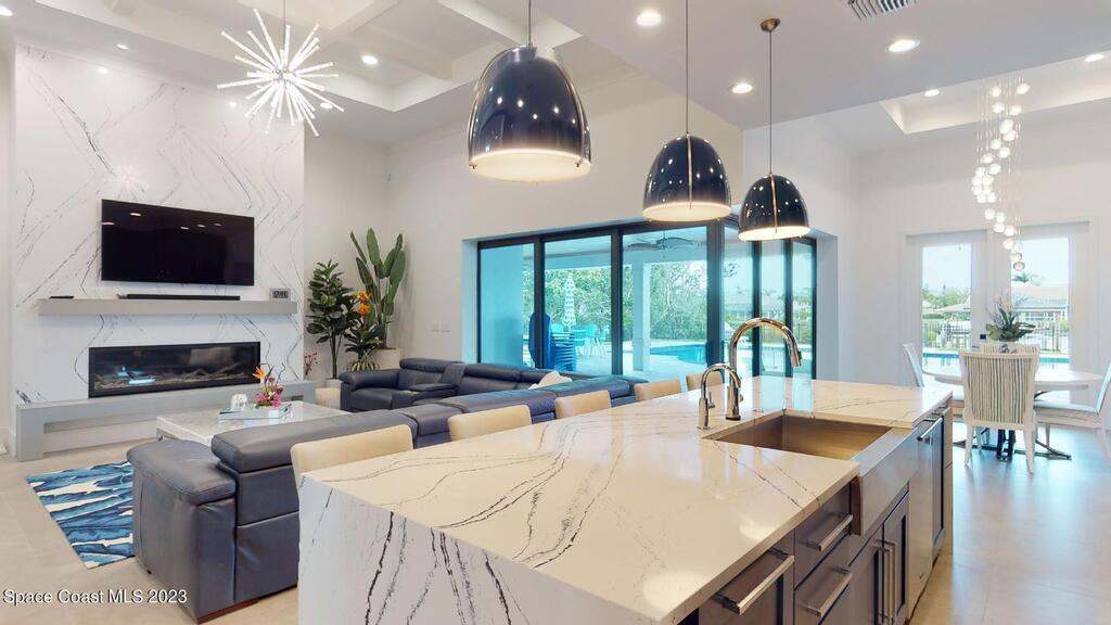 Welcome to your dream home in the prestigious Lansing Island community! This stunning single-family home is the newest home on Lansing Island! Located on the Grand Canal with eastern breezes and beautiful sunrises. As you enter the home, you will be greeted by 14 ft ceilings, creating a grand and luxurious atmosphere. The spacious great room features a quartz wall with gas fireplace and corner pocket sliders opening to the outdoor oasis, providing a seamless indoor-outdoor living experience. The kitchen is a chef's dream, with quartz counters, large island, wolf dual fuel range, built in microwave and steam oven, 2 Thermador refrigerators, and kitchen nook. Master suite with views of the Grand Canal.