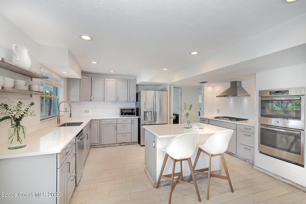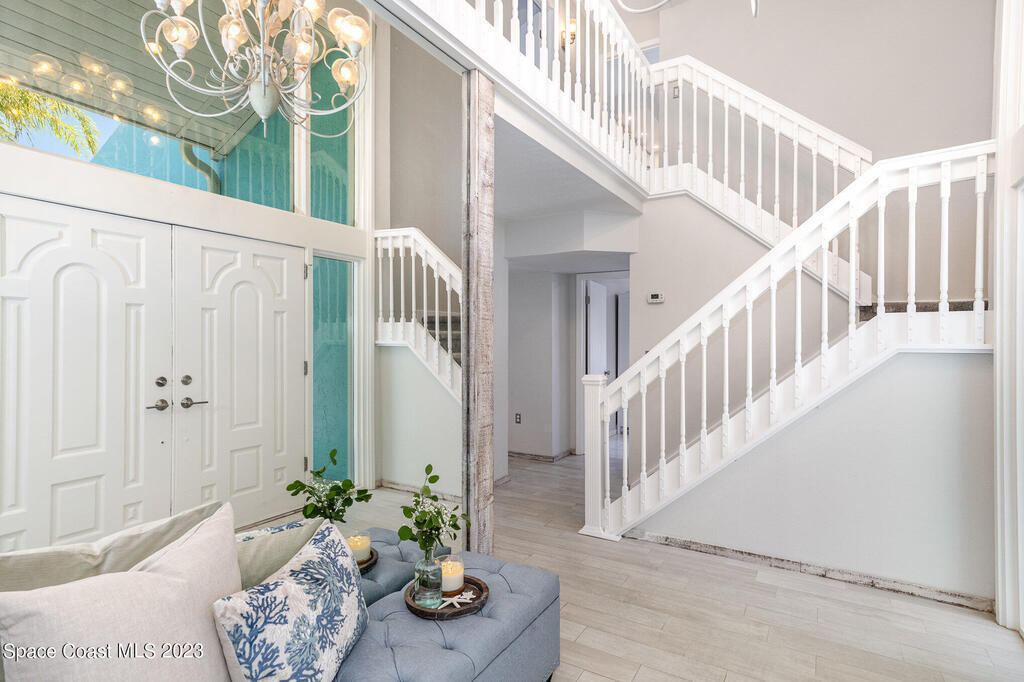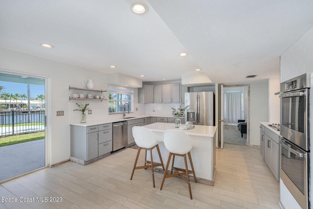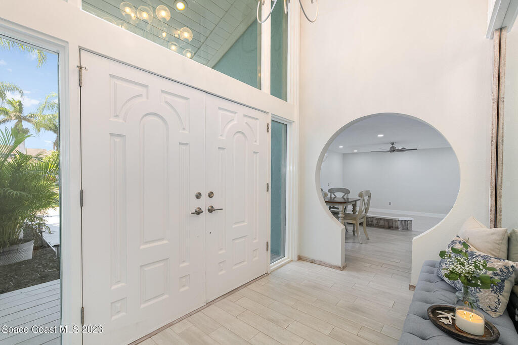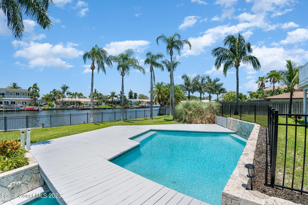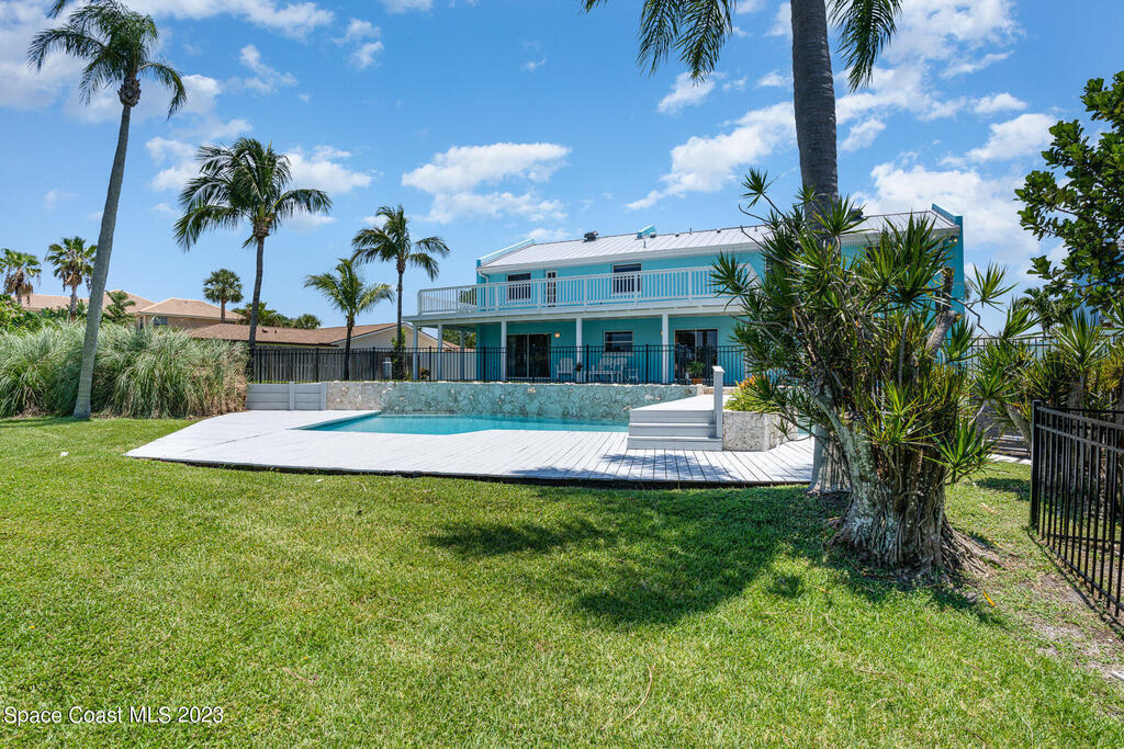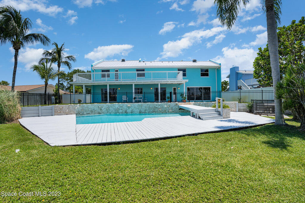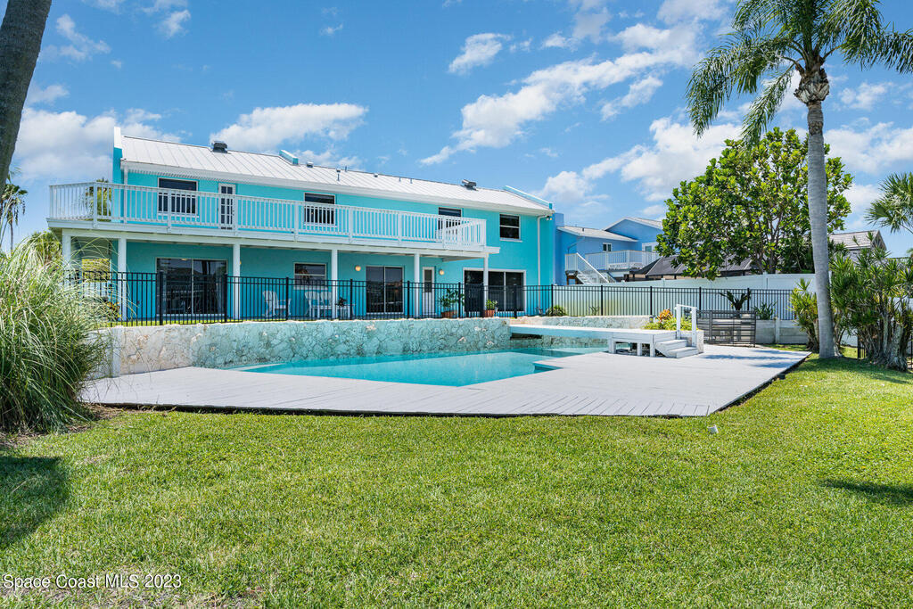 Modern and spacious 4 bedroom, 2 full bath, 2 half bath Pool home located in one of the premier areas of Cocoa Beach at 420 Banana River Blvd. Stylish and relaxed updates make this 3,680 sq ft home inviting and cozy. The oversized .43 acre lot features a playful, sparkling deep water pool with a swim-under bridge and beautiful coquina accent wall highlight the backyard on a deep water canal. Retro 70's touches throughout including a wet bar, keyhole doorway, and sunken living room ideal for movies and entertainment. Significant updates include the Metal Roof; updated professional chef's Kitchen with island, gas cook-top with range hood, double oven, and walk-in pantry; updated Bathrooms, Flooring, Painting, new Electrical Panels, all new Pool equipment, Gutters & French Drains, and so...