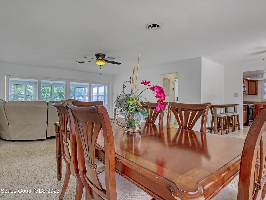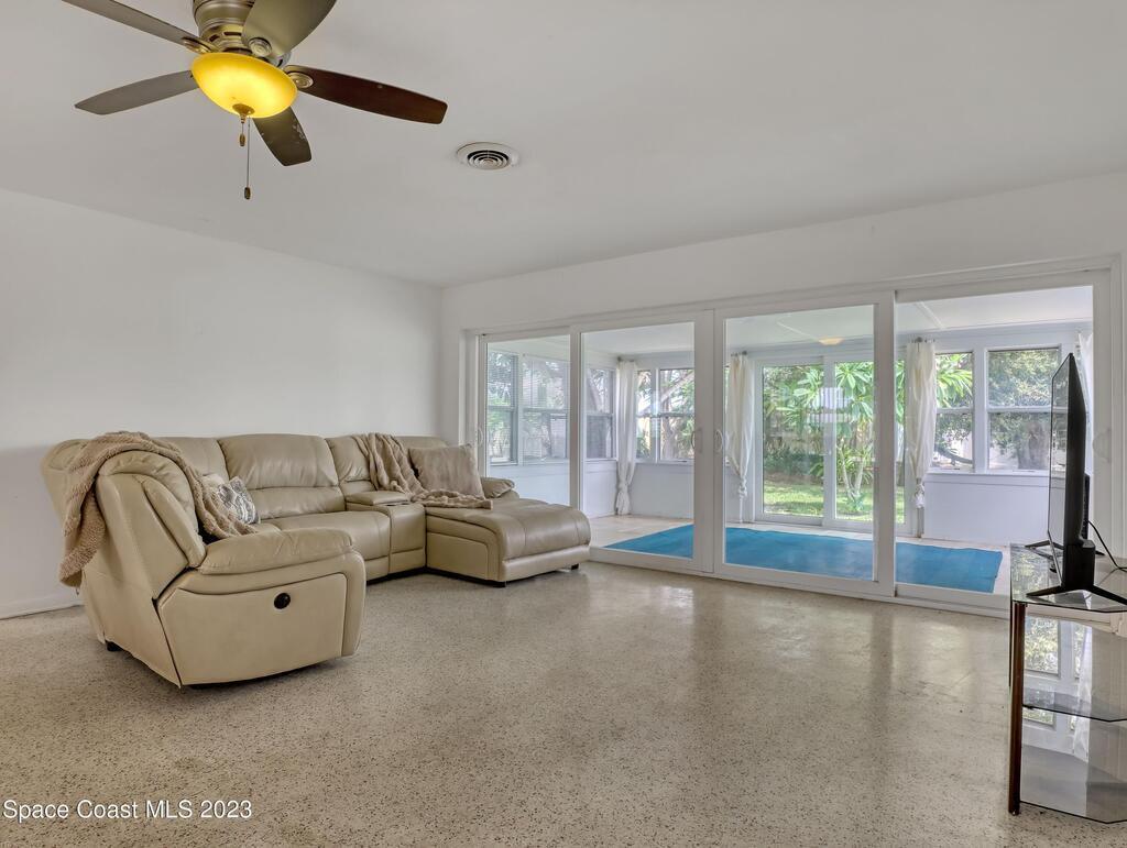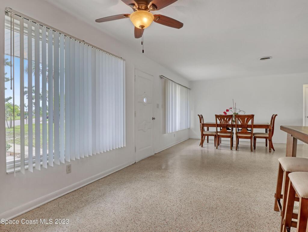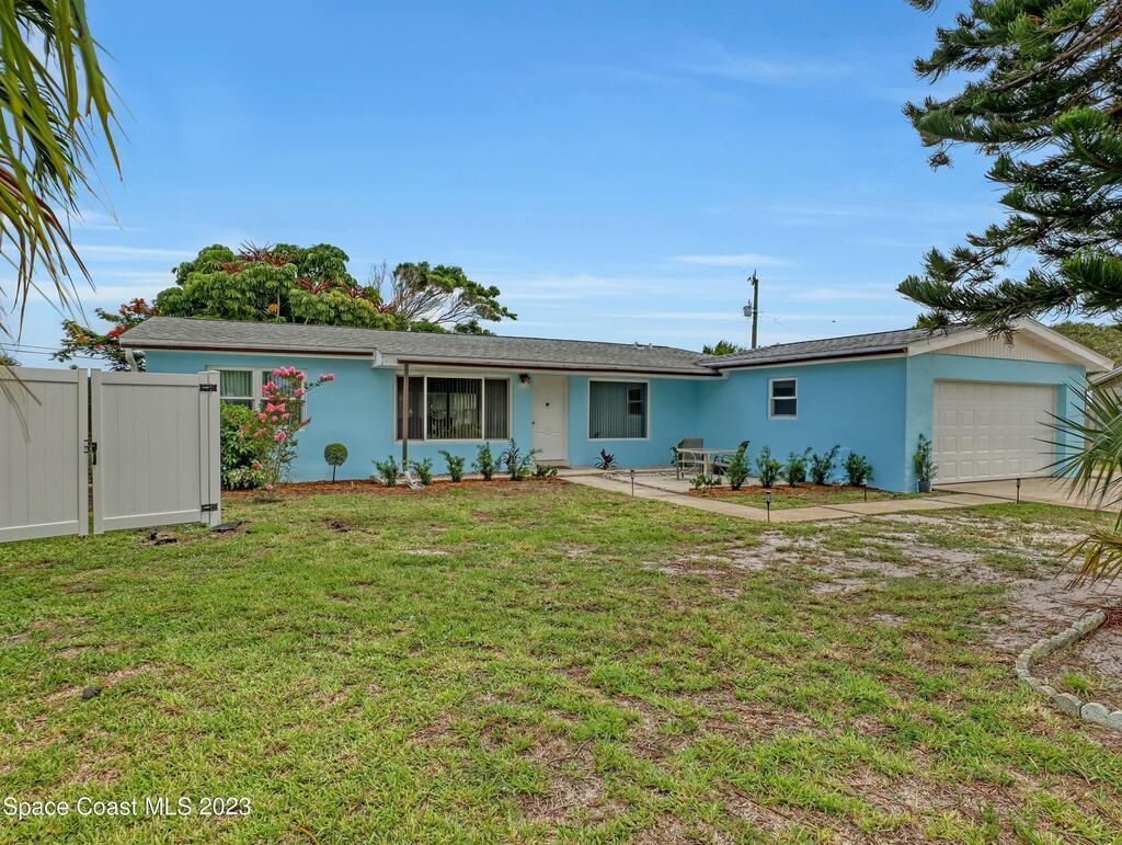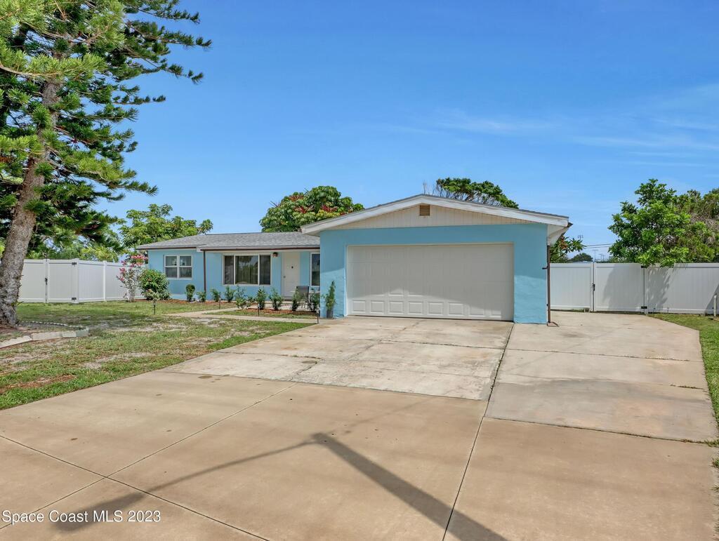 This Beachside Single Family Home on the Island between the River and the Ocean in a cute community is ready for you! The home sits on the corner, the pie shaped lot, which provides a generous backyard space. Freshly painted exterior with a brand new PVC Privacy Fence and a 2 car oversized garage with an extra large driveway are just some of the highlights. Granite Kitchen Counters with all Stainless Steele Appliances, all original Terrazzo flooring, Panel wired for 200 amp service and it is also Pre-wired for future Generator use. The rear 18' x 10' enclosed porch can add style, comfort and usability for all seasons. The split floor plan allows for maximum floor space while creating communal and private rooms. Our Counties 72 miles of expansive waterways is an outdoor