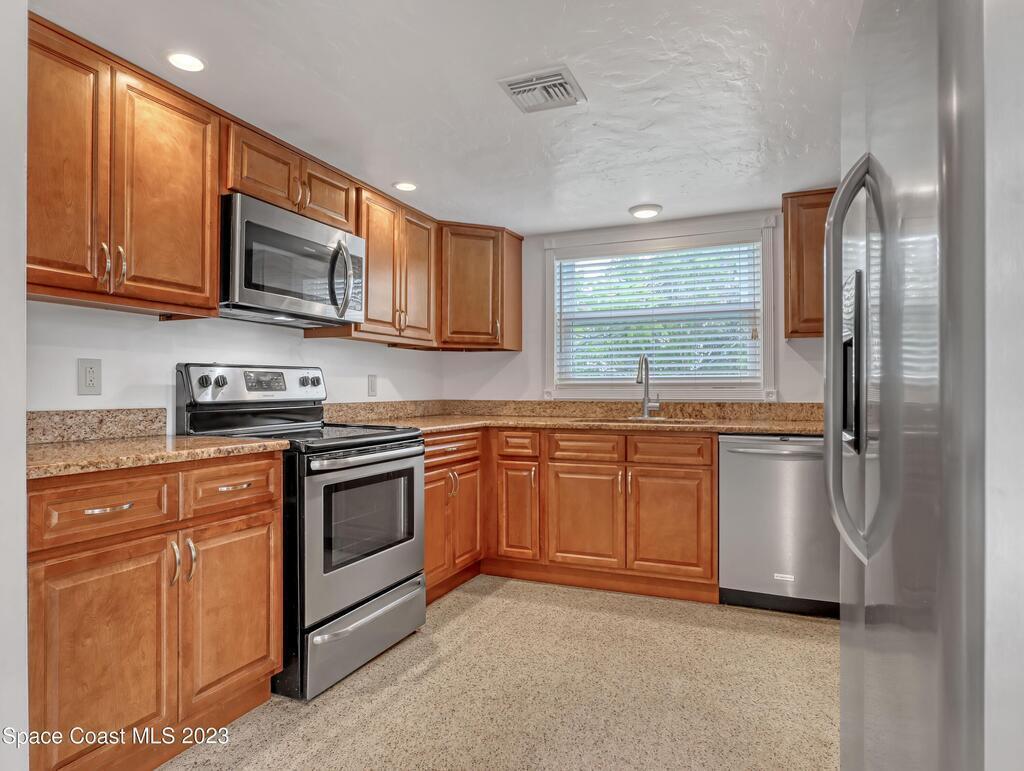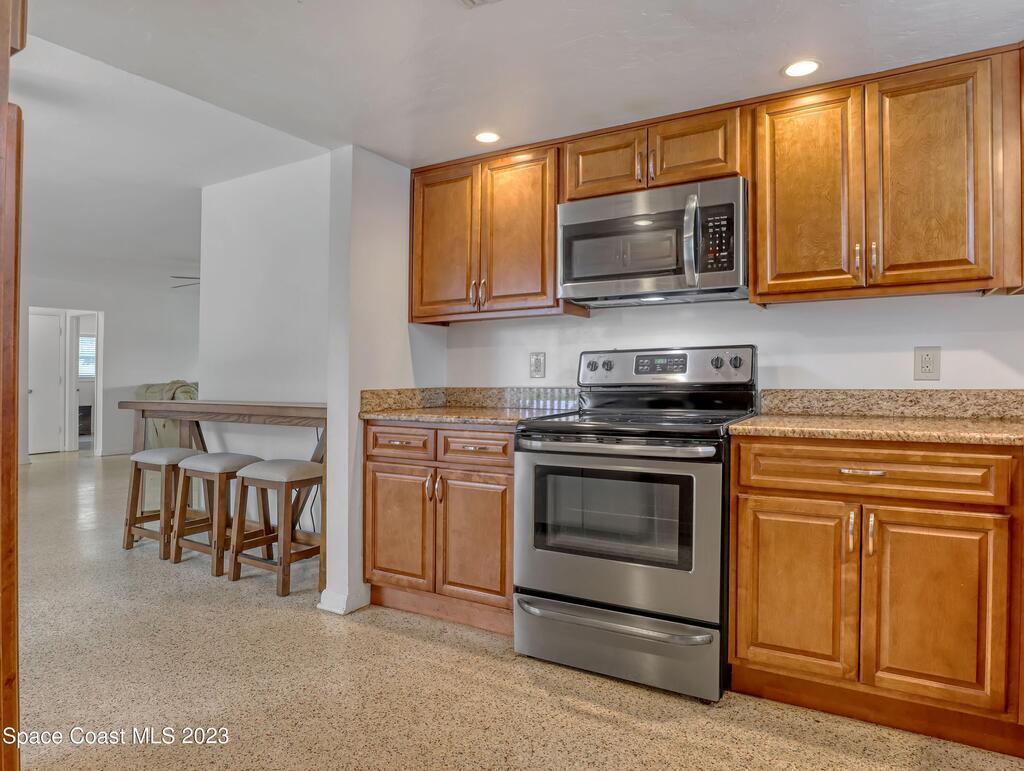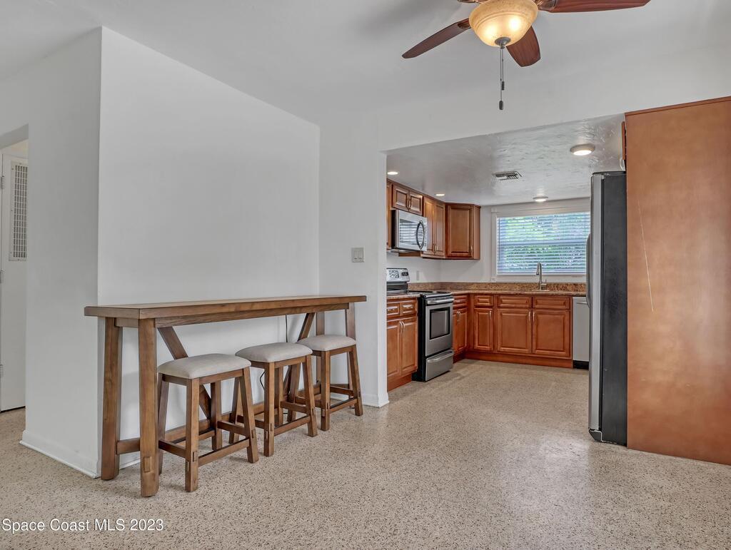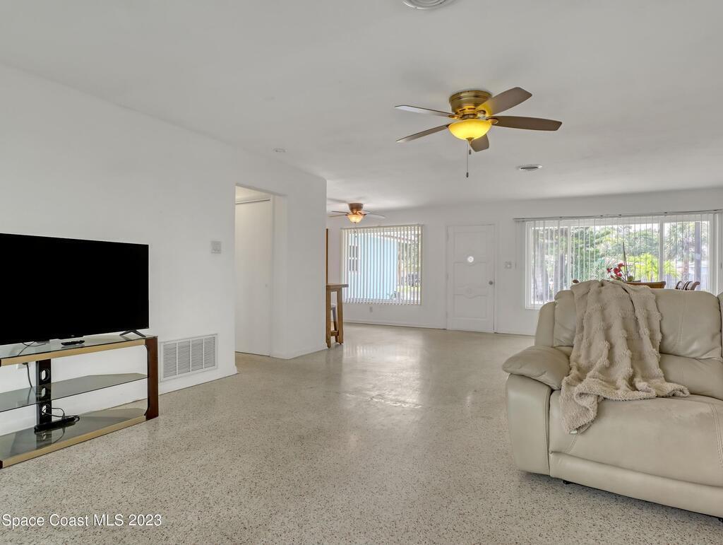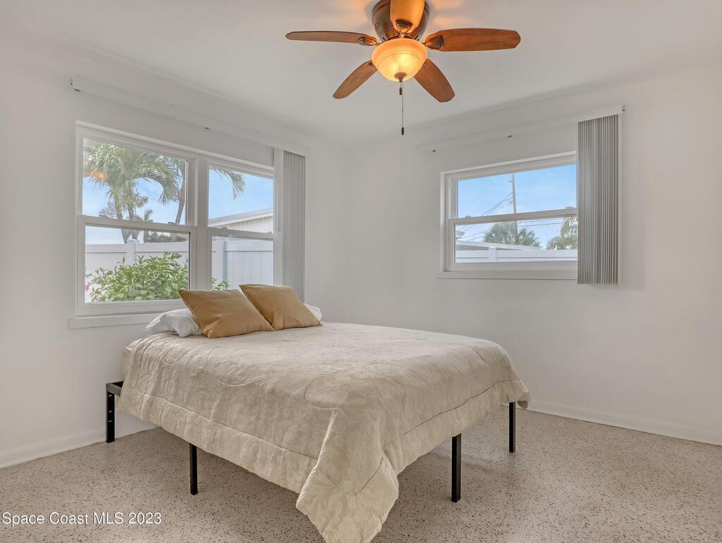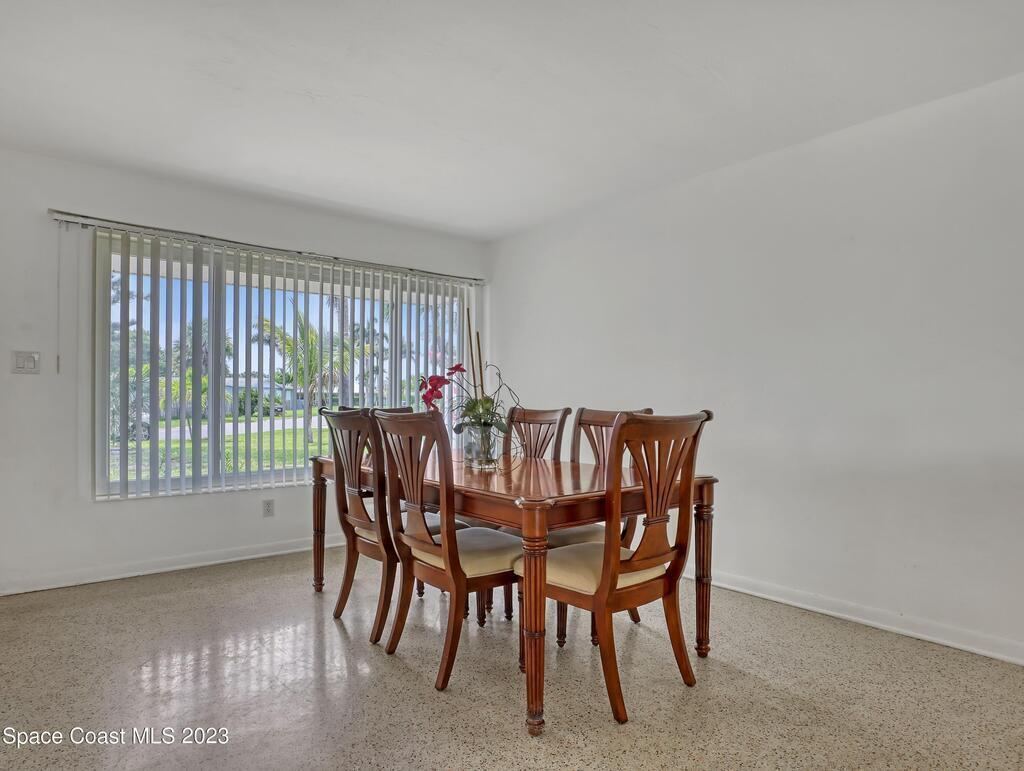 This Beachside Single Family Home on the Island between the River and the Ocean in a cute community is ready for you! The home sits on the corner, the pie shaped lot, which provides a generous backyard space. Freshly painted exterior with a brand new PVC Privacy Fence and a 2 car oversized garage with an extra large driveway are just some of the highlights. Granite Kitchen Counters with all Stainless Steele Appliances, all original Terrazzo flooring, Panel wired for 200 amp service and it is also Pre-wired for future Generator use. The rear 18' x 10' enclosed porch can add style, comfort and usability for all seasons. The split floor plan allows for maximum floor space while creating communal and private rooms. Our Counties 72 miles of expansive waterways is an outdoor