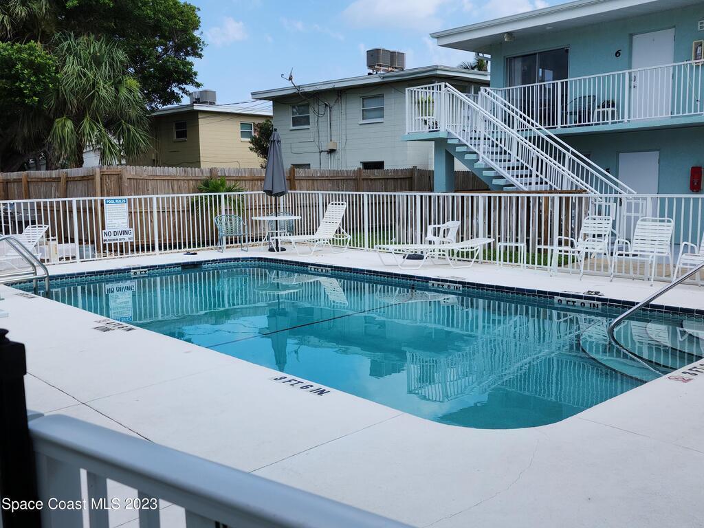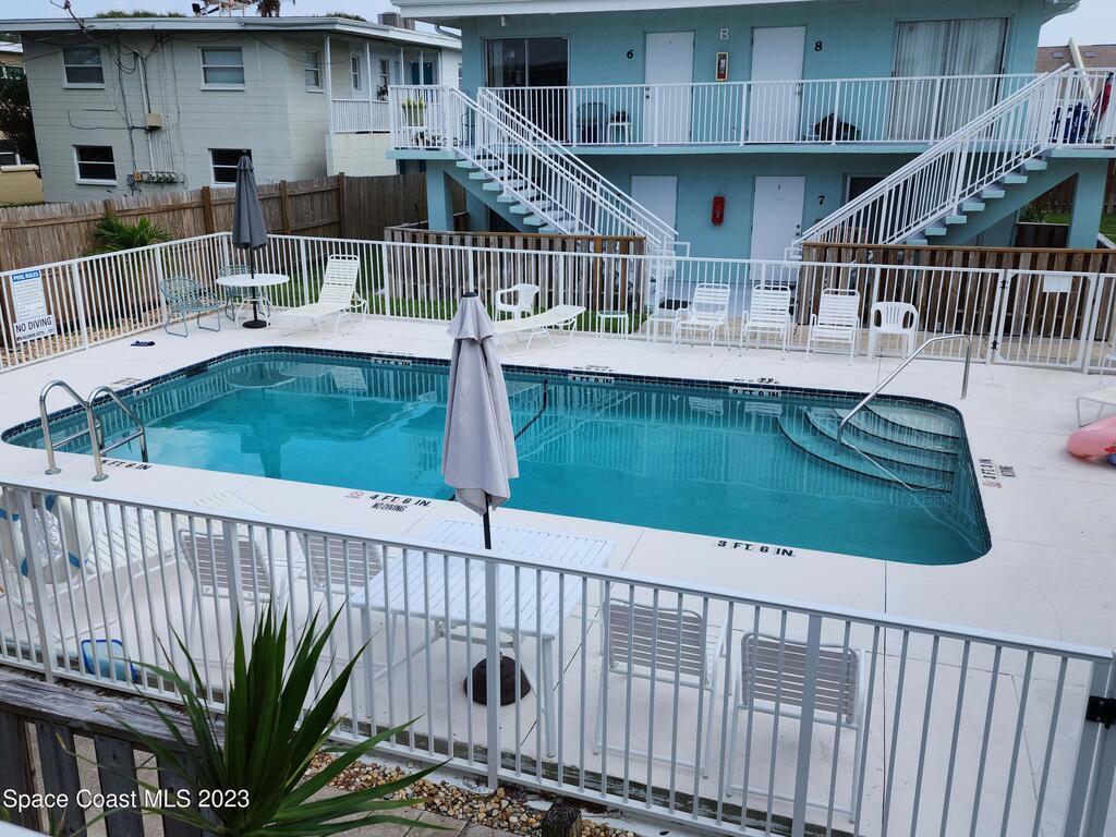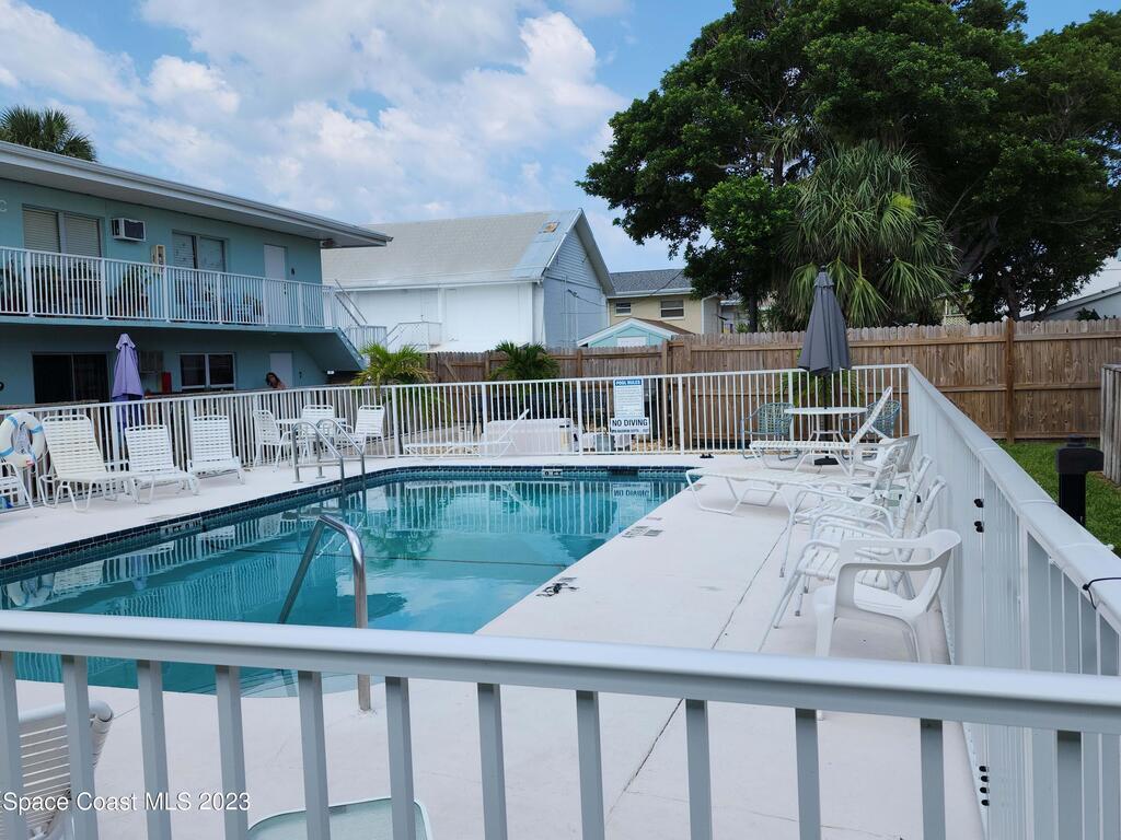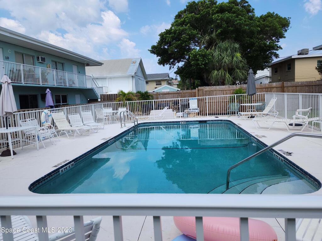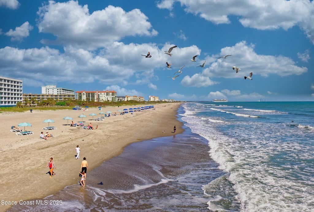 Move in ready 1-bed, 1-bath Cape Canaveral condo, just one block from the beach. This completely furnished bottom floor end unit offers privacy and easy access. Enjoy an open layout, a well-appointed kitchen, and a cozy bedroom with ample storage. The Ridgewood Condo community is always nicely maintained, boasts a large pool and convenient laundry facilities. Explore beach walks, breathtaking sunrises, and the tranquil sound of waves. Close to Port Canaveral, indulge in dining, shopping, and entertainment. Make this your permanent residence or use as an investment, but don't miss out on this beachside gem! Seller's will consider a good cash offer!!