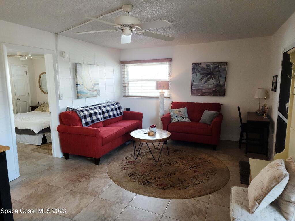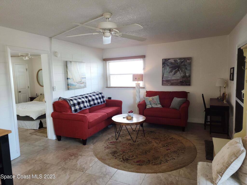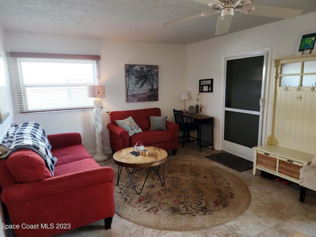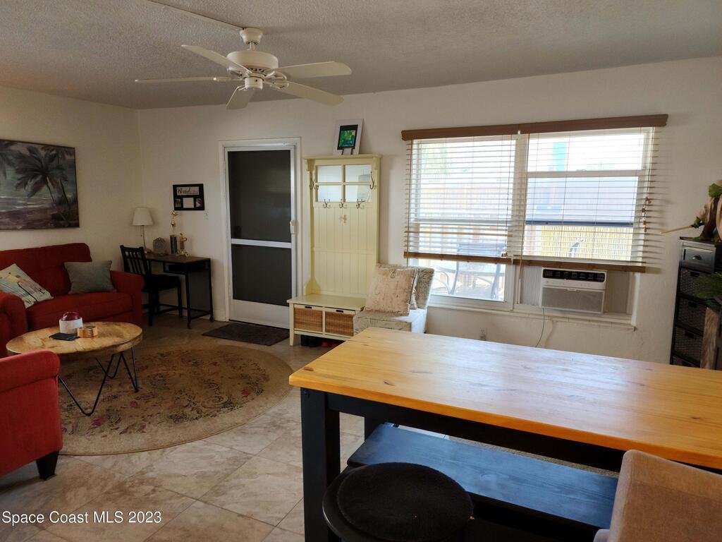 Move in ready 1-bed, 1-bath Cape Canaveral condo, just one block from the beach. This completely furnished bottom floor end unit offers privacy and easy access. Enjoy an open layout, a well-appointed kitchen, and a cozy bedroom with ample storage. The Ridgewood Condo community is always nicely maintained, boasts a large pool and convenient laundry facilities. Explore beach walks, breathtaking sunrises, and the tranquil sound of waves. Close to Port Canaveral, indulge in dining, shopping, and entertainment. Make this your permanent residence or use as an investment, but don't miss out on this beachside gem! Seller's will consider a good cash offer!!