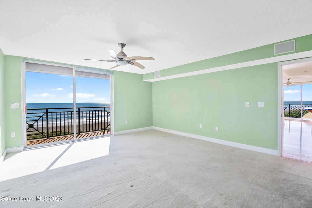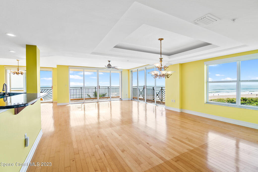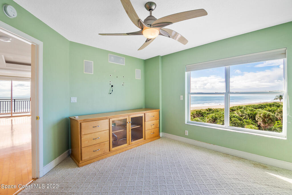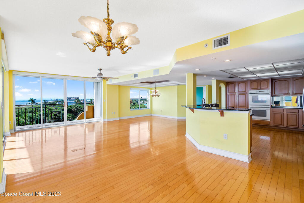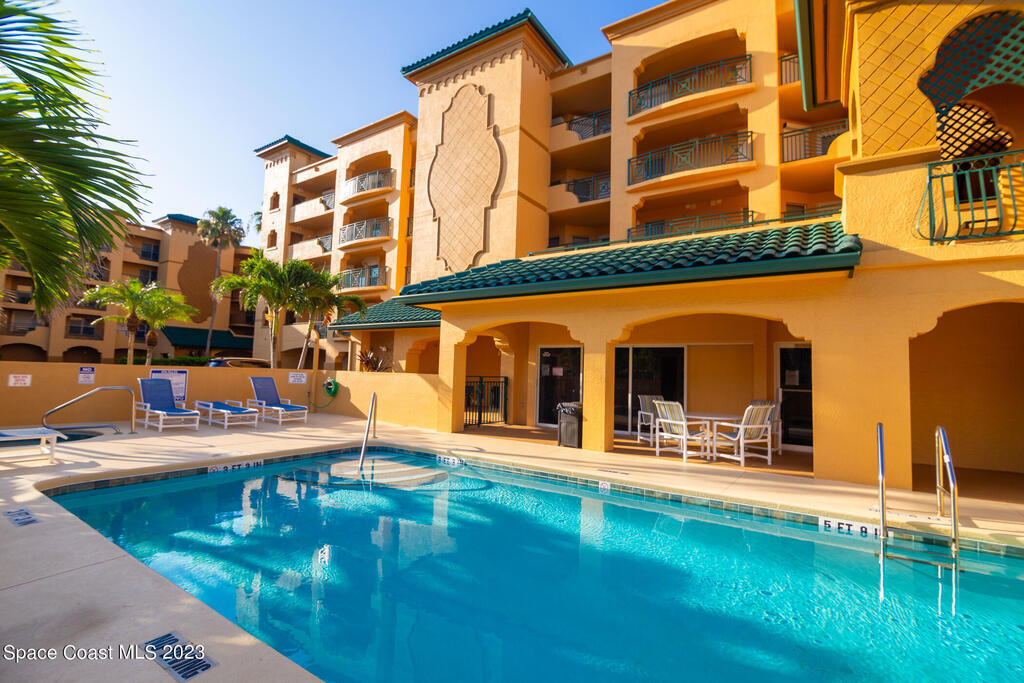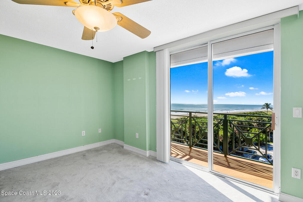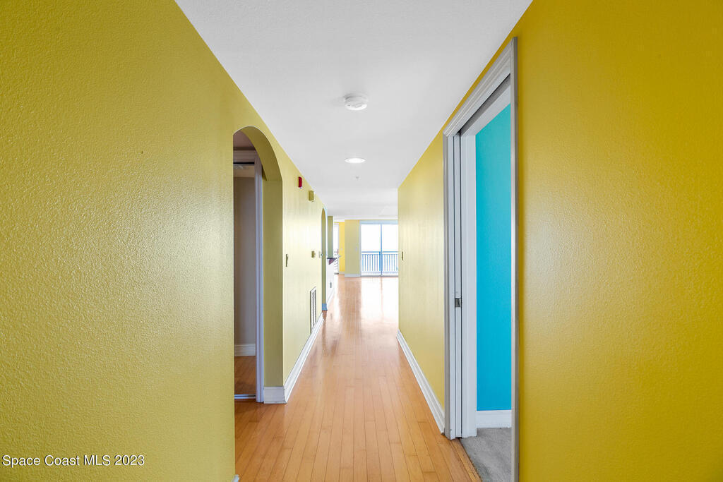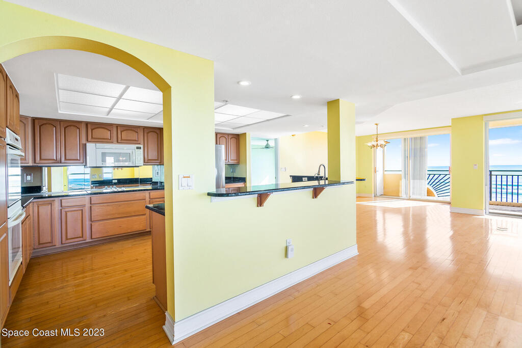 Captivating view! It's the only way to describe this epic corner and top floor unit in desirable Flores Del Mar. An expansive split floor plan with 4 bedrooms, bonus room/study (or additional bedroom), 3 bathrooms, and hardwood floors. The luxurious primary suite with it's private balcony and spa-like bathroom has a bidet, large walk-in closets, spa tub, large custom shower, dual vanities and a huge overhead skylight. The corner balcony offers panoramic ocean views (south facing) however the balcony has northern views towards the Space Center as well. The granite kitchen offers plenty of space for the chef while enjoying ocean views. Unit includes a 2 car garage, pool, sauna & exercise room. Units don't come along often in this highly desirable complex. Condo fee only $688/month!