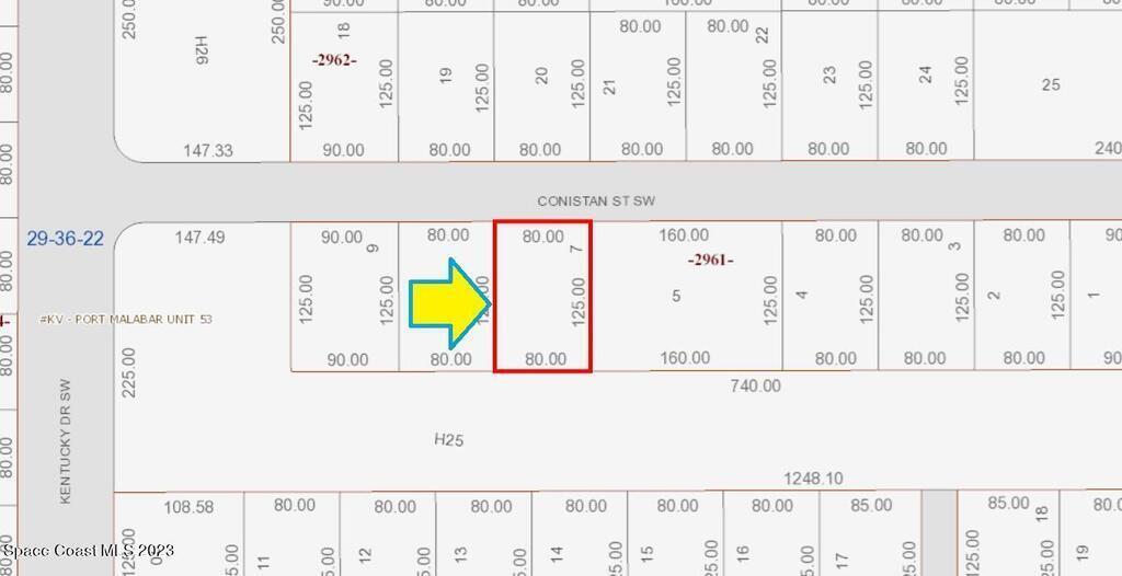0.23 acre residential investment property for sale in Port Malabar Unit #53 of Palm Bay. Located in the very rural SW section, the lot does have road access but no utilities. The City of Palm Bay does not have any plans of placing utilities to this lot or area; so the lot is not build-able. The seller has no known knowledge of the property and makes no representations except for title. From exit #176 of I-95 go west on Palm Bay Road for .7 miles, left on Minton Road for 3.3 miles, right on Jupiter, quick left on DeGroodt Road for 2,5 miles, right on J.A. Bombardier Boulevard for 2 miles, right on Wingham Drive for .5 miles, left on Angora Street for .4 miles, left on Kentucky Drive for .1 mile, and left on Conistan Street. The lot will be on your right.
