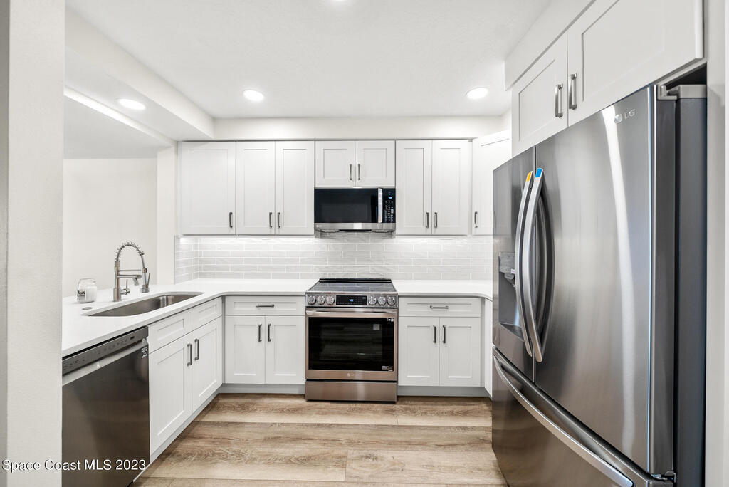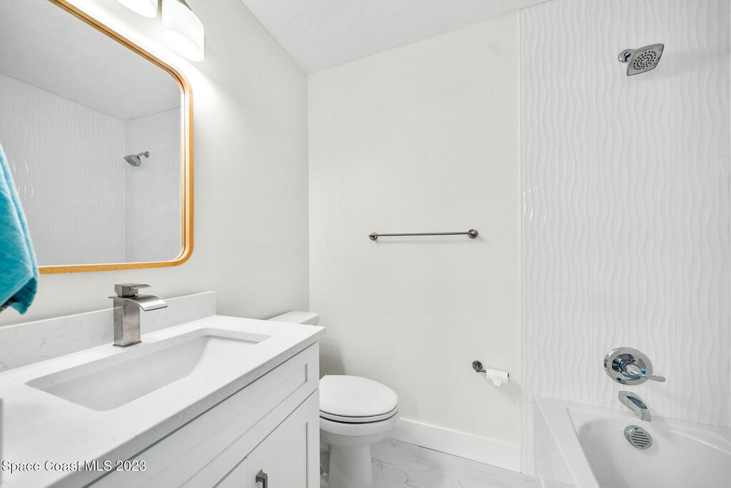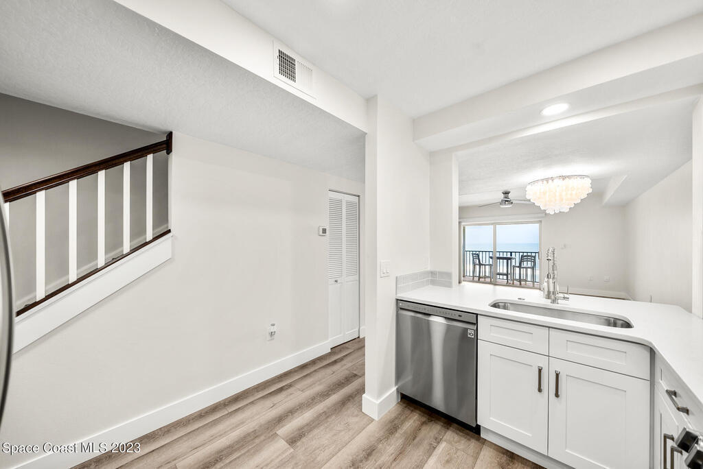 SELLER MOTIVATED!! Here's your opportunity for a turn key oceanfront condo located in the heart of Satellite Beach. Brand new luxury plank vinyl flooring, completely remodeled bathrooms through out, new textured ceilings and paint. The kitchen remodel is absolutely beautiful, with raised ceilings, recess lighting, quartz counter tops and brand new stainless steel appliances. A spacious living area, gourmet kitchen, and inviting bedrooms offer comfort and style. Step onto the private balcony to savor breathtaking sunrises or take a leisurely stroll along the beach. Welcome to your sun-kissed paradise. The unit comes with washer and dryer and a 2017 HVAC unit, as well as new hurricane impact windows. The condo is located next to Patrick Air Force Base, minutes to Publix, Costco, and I-95.