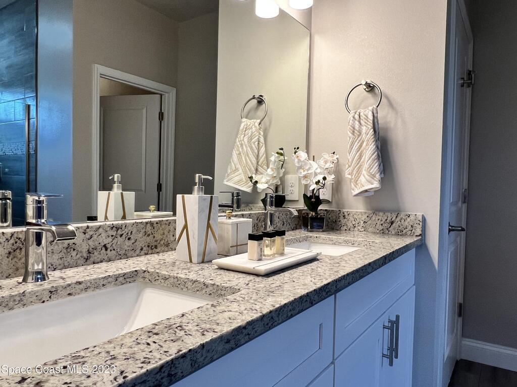MOVE IN READY. The home of your dreams is in reach. Our Villa Foscari, is a gracious, split, open floor plan with 3 bedrooms plus a den/office. This home offers some of the most desirable features which include granite countertops, 42'' shaker style upper cabinets with crown molding, soft close drawers and doors, stainless steel appliances, tile backsplash, tile through out the main living area, luxury vinyl plank in bedrooms. dual closets in master, large covered lanai and more. Comes with an oversize 2 car garage for storage for lawn equipment, tools, etc.