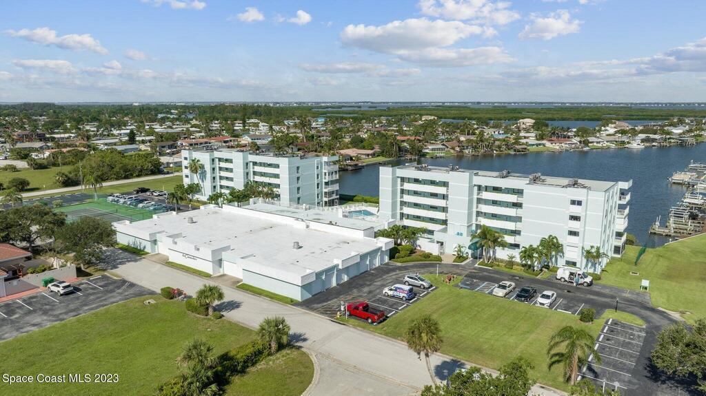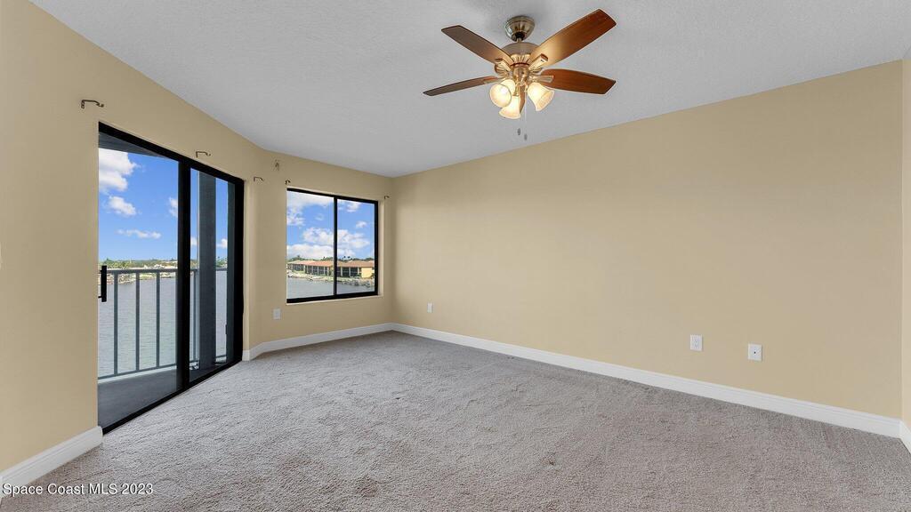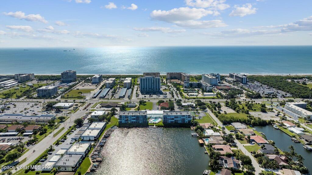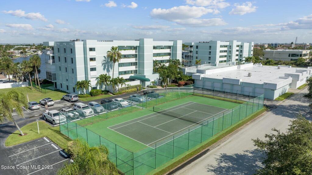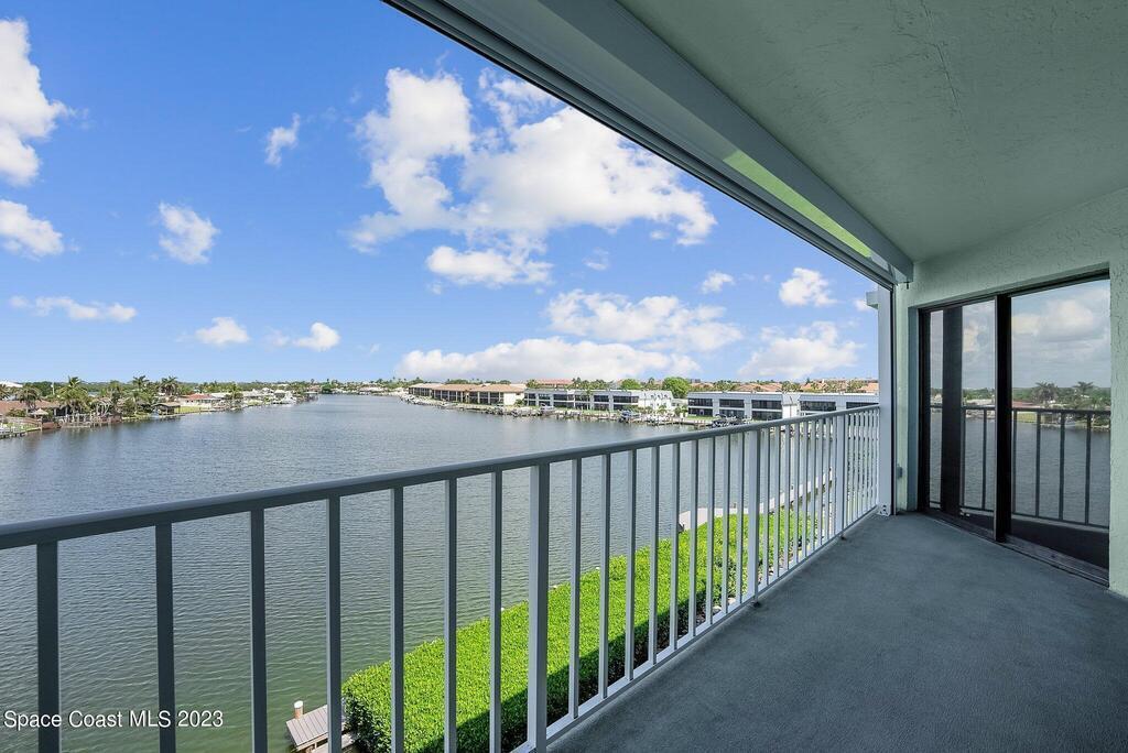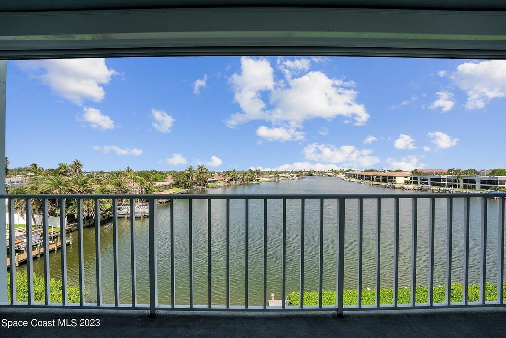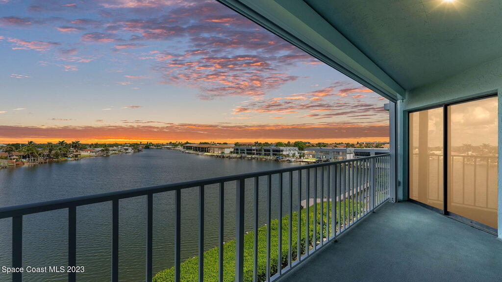 PERFECT LOCATION for all water lovers! Located on the widest canal in Cocoa Beach leading out to the Banana River and just one block to the ocean of Cocoa Beach. This 4th fl unit has awesome views of the sunsets (see the pictures), fantastic amenities such as a pool, hot tub, tennis courts, shuffleboard, assigned under garage parking and more. Restaurants, grocery shopping, churches all within walking distance. You have a blank canvas to make this condo yours with furnishings. Inside laundry with washer & dryer, kitchen with stainless steel appliances, granite countertops, tasteful back splash, wood cabinets and tile floors in the wet areas, Carpeting in the 2 BRs is cleaned and plush as well. The electronic, remote controlled hurricane shutters give additional protection from the storms