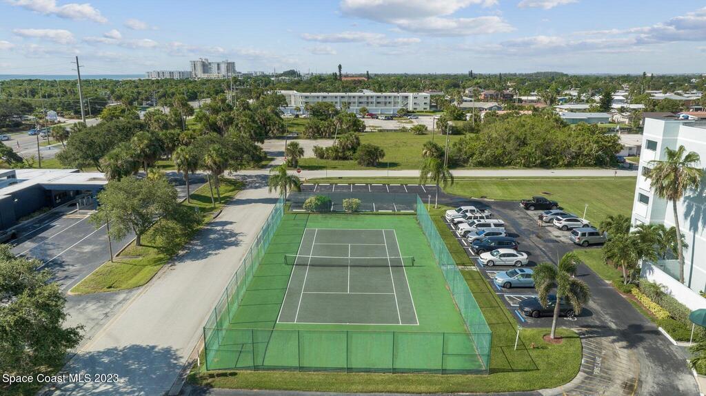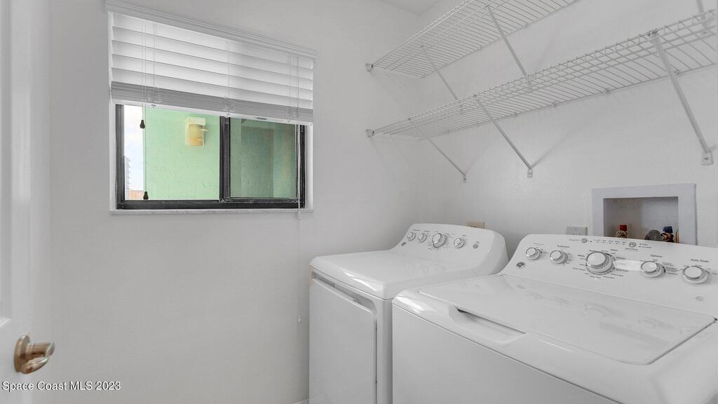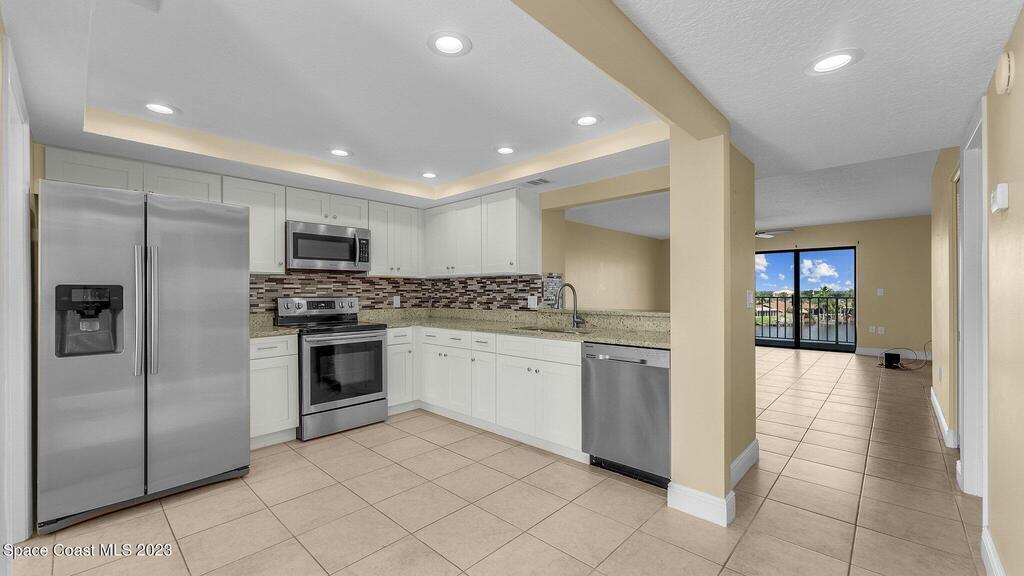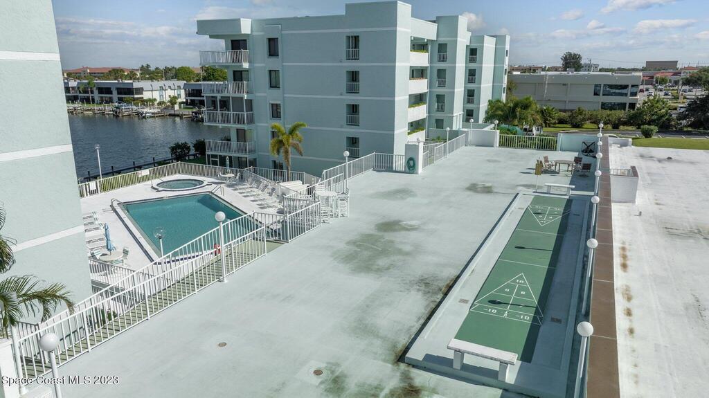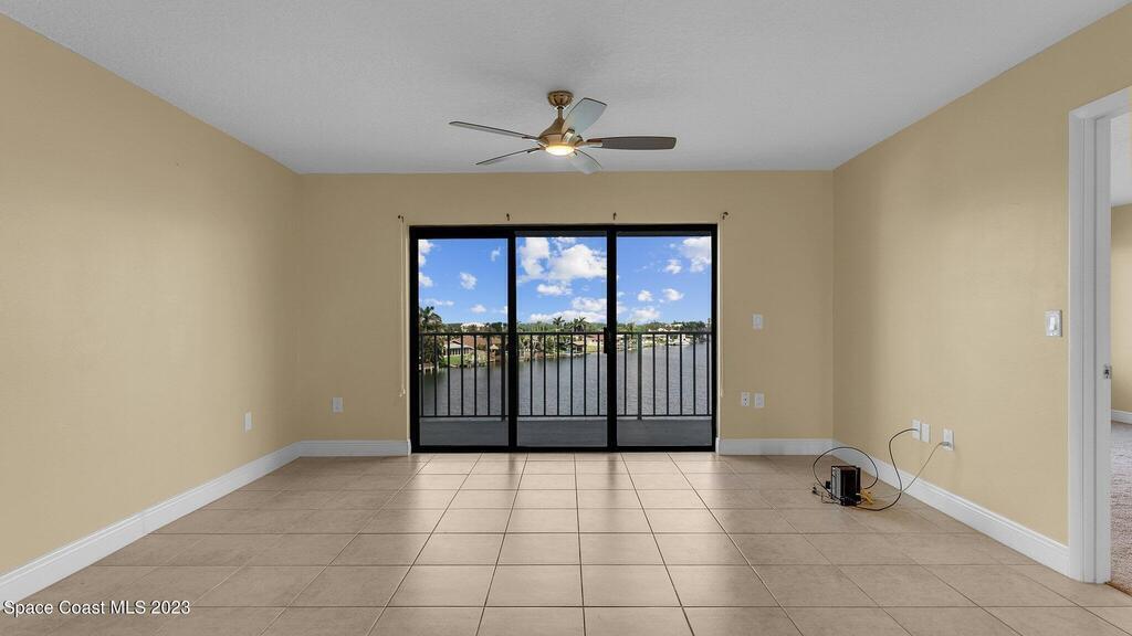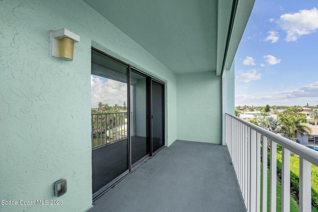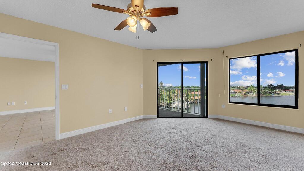 PERFECT LOCATION for all water lovers! Located on the widest canal in Cocoa Beach leading out to the Banana River and just one block to the ocean of Cocoa Beach. This 4th fl unit has awesome views of the sunsets (see the pictures), fantastic amenities such as a pool, hot tub, tennis courts, shuffleboard, assigned under garage parking and more. Restaurants, grocery shopping, churches all within walking distance. You have a blank canvas to make this condo yours with furnishings. Inside laundry with washer & dryer, kitchen with stainless steel appliances, granite countertops, tasteful back splash, wood cabinets and tile floors in the wet areas, Carpeting in the 2 BRs is cleaned and plush as well. The electronic, remote controlled hurricane shutters give additional protection from the storms