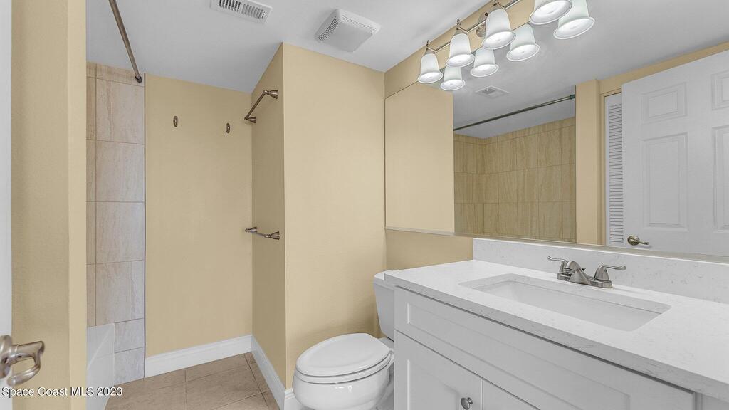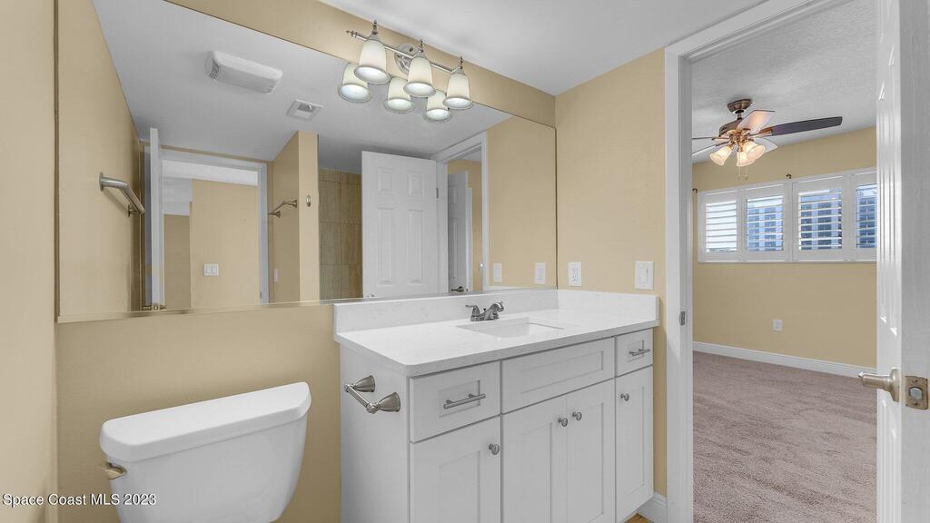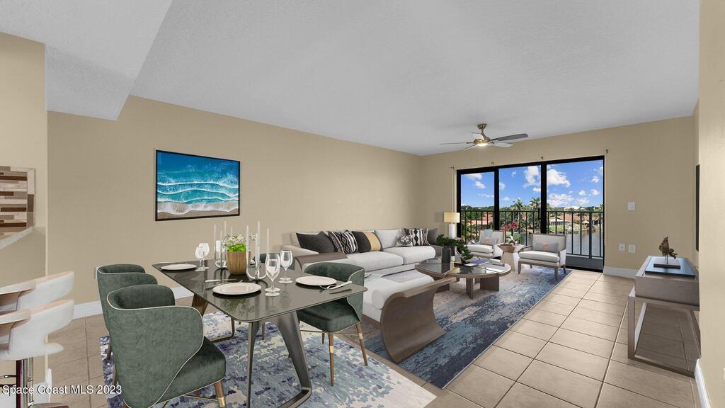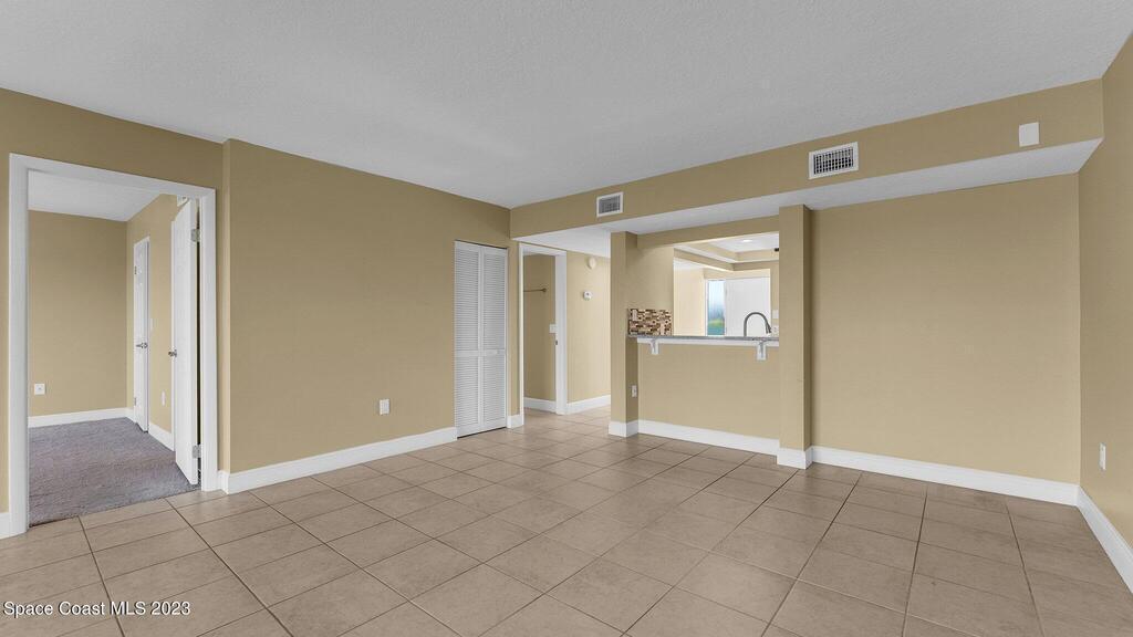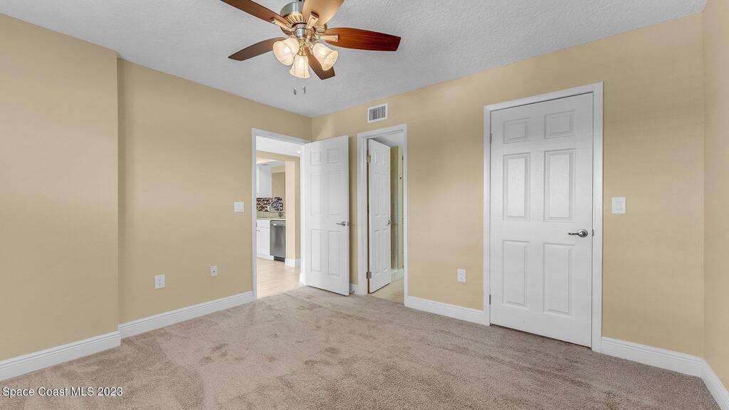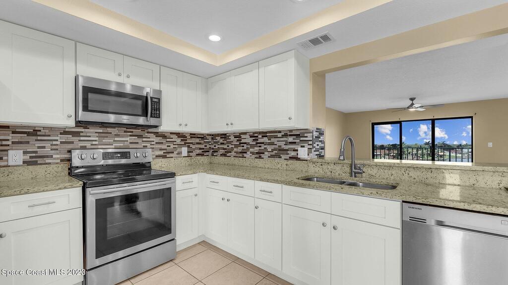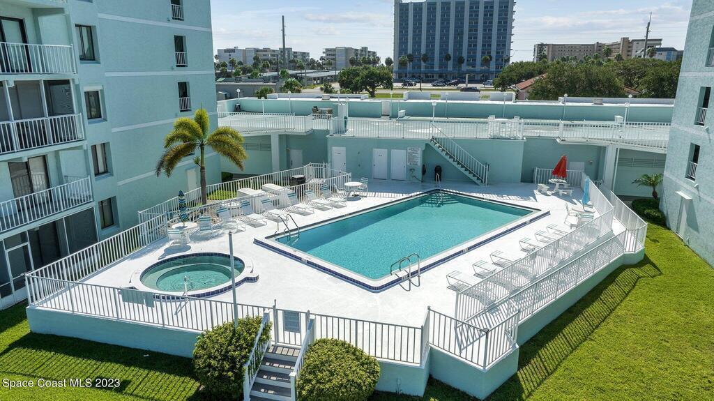 PERFECT LOCATION for all water lovers! Located on the widest canal in Cocoa Beach leading out to the Banana River and just one block to the ocean of Cocoa Beach. This 4th fl unit has awesome views of the sunsets (see the pictures), fantastic amenities such as a pool, hot tub, tennis courts, shuffleboard, assigned under garage parking and more. Restaurants, grocery shopping, churches all within walking distance. You have a blank canvas to make this condo yours with furnishings. Inside laundry with washer & dryer, kitchen with stainless steel appliances, granite countertops, tasteful back splash, wood cabinets and tile floors in the wet areas, Carpeting in the 2 BRs is cleaned and plush as well. The electronic, remote controlled hurricane shutters give additional protection from the storms
