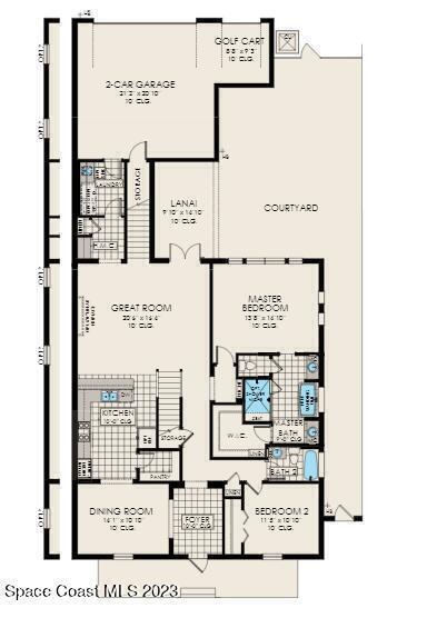 Almeria II is a sophisticated 2-story home featuring a great room and kitchen that overlook a gorgeous lanai. The master bedroom overlooks a spacious courtyard. Spend the evenings enjoying the sunset on the second story balcony. This home is a 4 bedroom 4 bath with bonus room and added golf cart garage.
