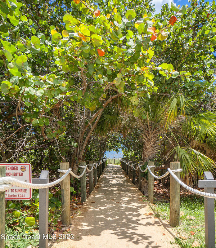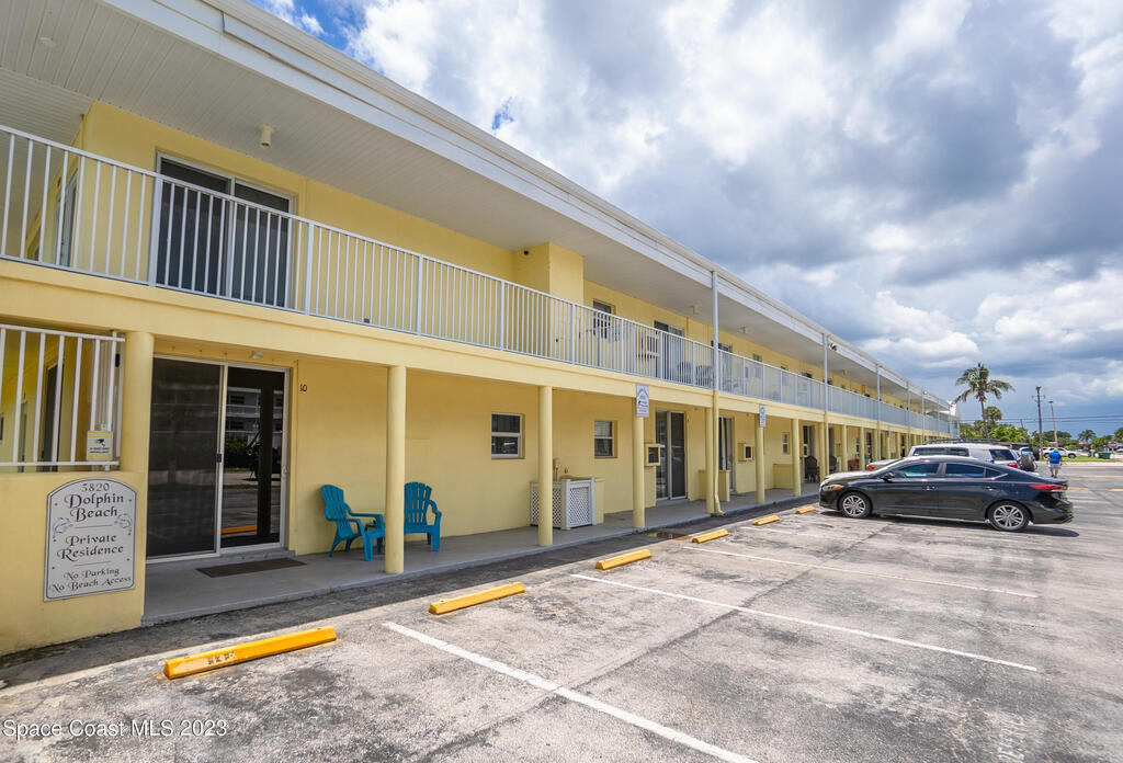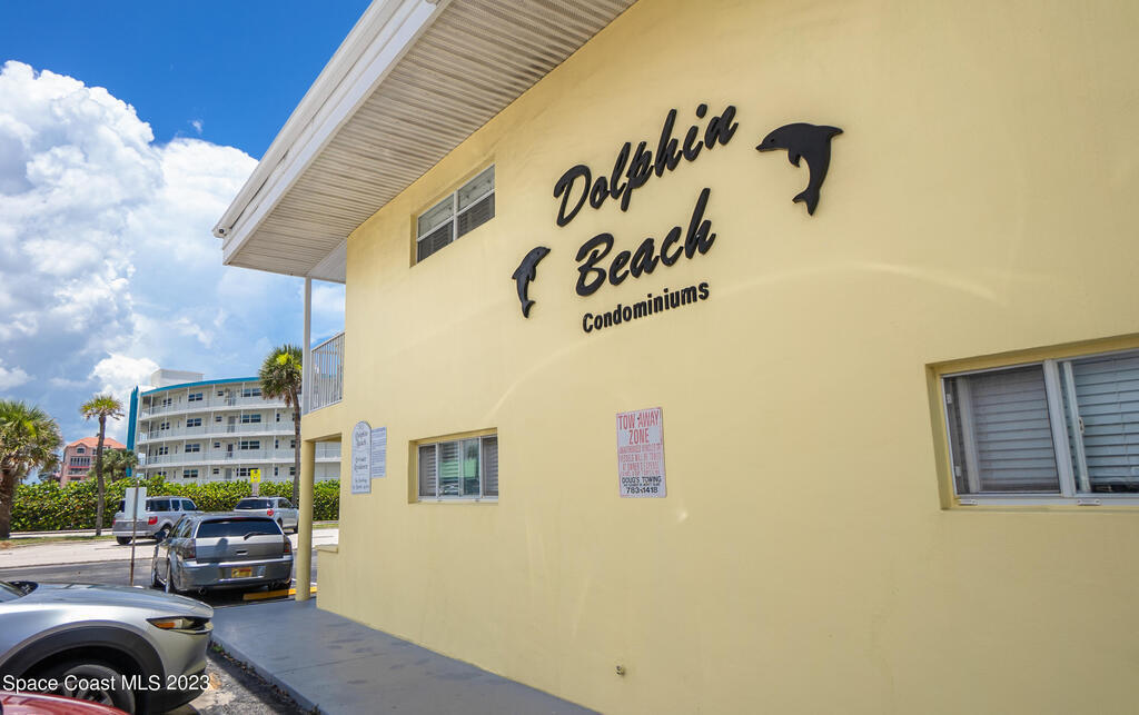 Alexa, play ''Soak up the Sun'' by Sheryl Crow. This GROUND-FLOOR condo was remodeled in 2021 & features 1 bed, 1 bath, 735 SqFt, & is within 100 steps to the beach. You can enter through the back sliding glass doors adjoining the private parking lot or the front door. The bath is features a warming light, & a walk-in shower w/ custom glass. Down the hallway is the primary bedroom w/ an over-sized closet. When entering the great room you will find the kitchen, living room, & dining area. The L-shaped kitchen has granite countertops, NEW Samsung S/S appliances, custom white cabinets w/ soft close function, & a garbage disposal. The Dolphin Condominium features: a coded entry laundry room, community cluster mailboxes, & private beach access.