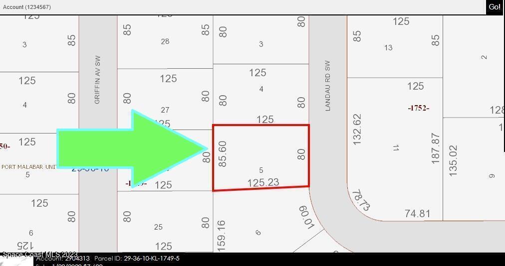 1 of 2 side-by-side adjacent 0.23 acre build-able single family residential lot (Rs2 Zoning) available in Port Malabar Unit #36 of Palm Bay. Nicely located in the northern SW section, this lot is just 1.3 miles -5 minutes- to Jupiter Elementary School, 3.8 miles -9 minutes- to Heritage High School, 3.3 miles -8 minutes- to the Fred Poppe Regional Park, 5.5 miles -10 minutes- to the Walmart Supercenter and the I-95 ramp, 5.7 miles -14 minutes- to the Shoppes of Palm Bay, and just 16 miles -38 minutes- to the beaches in Indialantic. From Exit 180 of I-95 go west on US-192. Turn left on St. John's Heritage Parkway and proceed south for 6.1 miles. Turn left on Malabar Road and proceed east for 1.8 miles. Turn right on Hurley, Left on Harper, Left on Hathaway & right on Landau Road SW 1266
