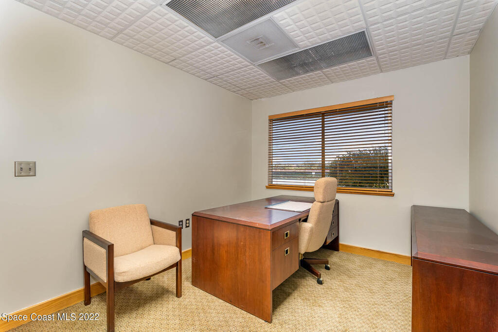 PARTIALLY FURNISHED & MOVE IN READY OFFICE! Just under 1200 Sq Ft with 3 private offices, waiting area, loft, and storage room. This end unit has vaulted ceilings, and large windows in each office. This complex comes with plenty of parking and located minutes away from the Eau Art district. 1 year minimum lease required. It includes water, trash, and pest control.