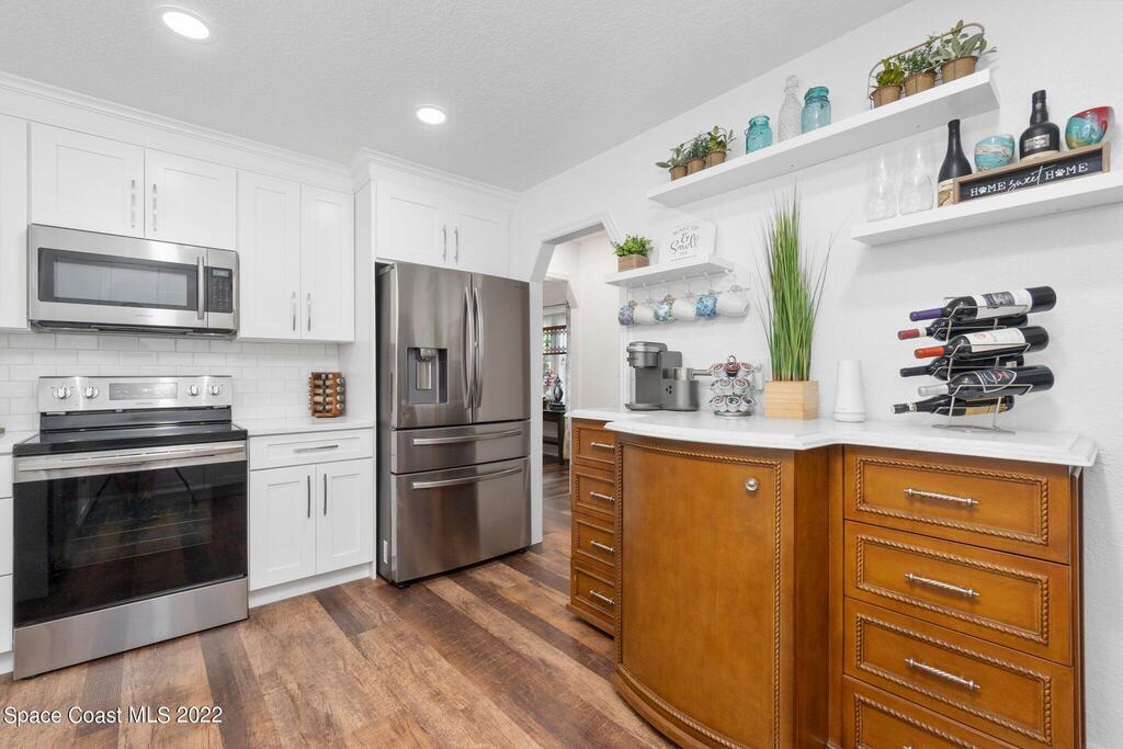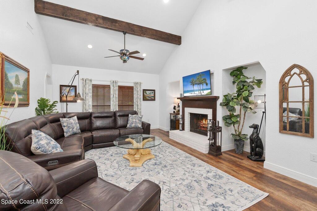 BACK UP OFFERS ENCOURAGED! This home says, ''come relax, stay awhile''! Fall in love with the warmth & character of this tastefully updated home located in the sought after Brookhill Subdivision, just minutes from Cape Canaveral! Enjoy the scenic drive home on Historic Indian River Dr, & sunrises by the community viewing dock/kayak launch. Live outdoors! The huge, fenced backyard & pool area is just perfect for entertaining family & friends, room for toys big & small, private & lushly landscaped! Sellers are motivated and priced home to sell. Seller concessions available toward costs with acceptable offer! Great opportunity for instant equity!! Inside, find a family rm with exposed beams wood burning fireplace, & a separate living/dining rm! Newer appliances in the kitchen, a bright breakfast nook, quartz countertops, & soft-close cabinets. READ MORE!