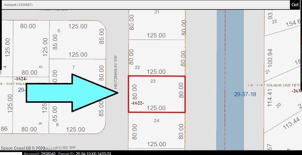 0.23 acre buildable residential lot available in Port Malabar Unit 32 of Palm Bay. Located in the southwest section, this lot is already cleared, has a drainage canal in the rear allowing more privacy, and is just 1.8 miles - 4 minutes to Bayside High School, 3.1 miles - 8 minutes to the Publix Supermarket, 11.9 miles - 25 minutes to Melbourne Airport, and 14.9 miles - 32 minutes to the beaches of Indialantic. From exit #176 of I-95 go west on Palm Bay Road for .7 miles, left on Minton Road for 3.3 miles, right on Jupiter Boulevard, quick left on DeGroodt Road for 1.2 miles, left on Galveston Street, road turns right and becomes Heitzman Avenue. The lot will be on your left.
