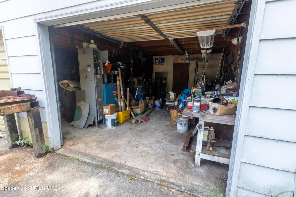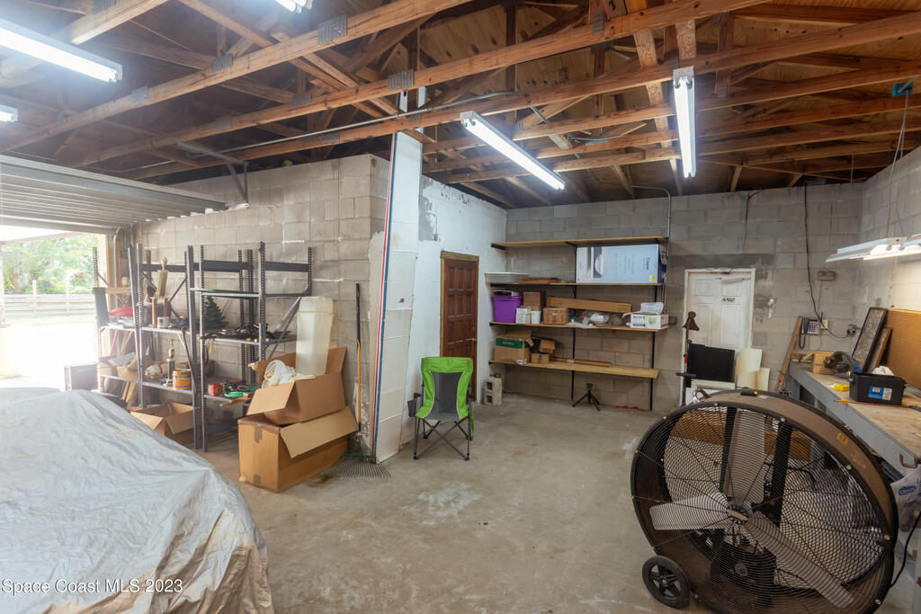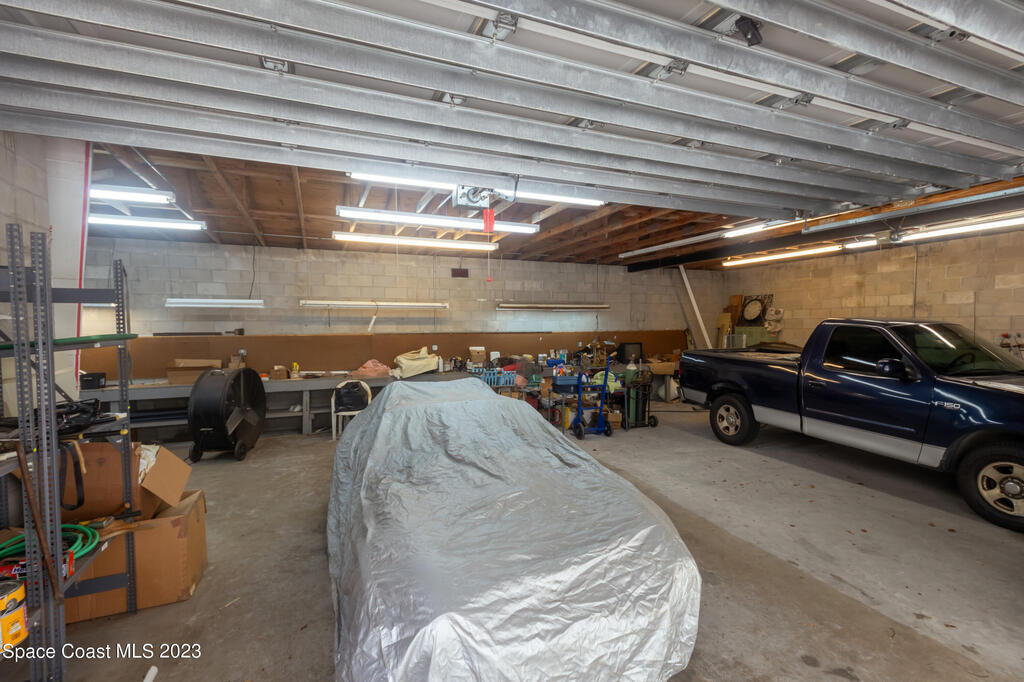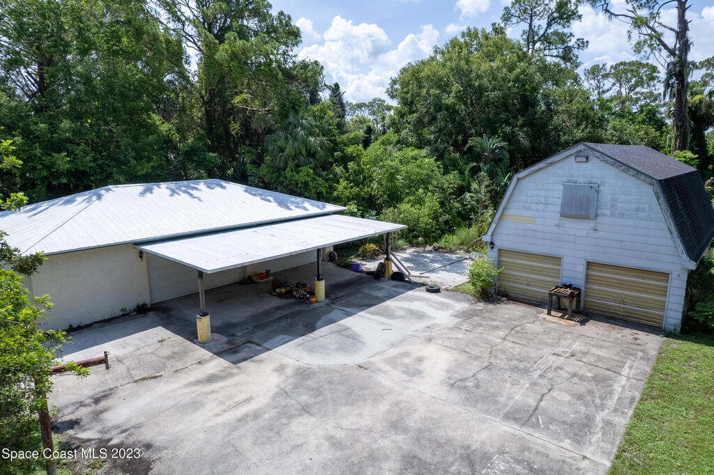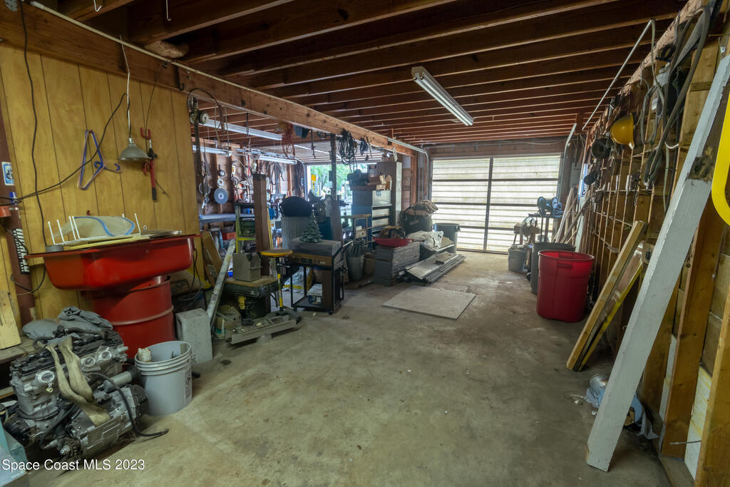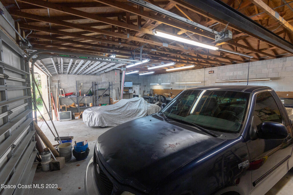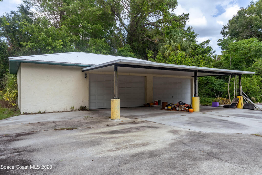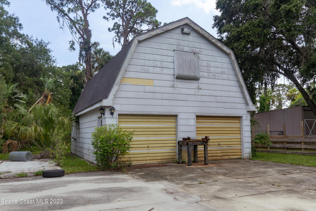 This is a one-of-a-kind property for the car enthusiast dream with the 8 cars garage area available in this highly sought after West Melbourne community. The home gives an old Florida path yard that offers tranquility to relax and just wonder the paths. The home backs up to a canal so never have backyard neighbor. The home has a large concrete safe equipped with Fort Knox safety. There are large trees on the property to offer serenity and bamboo in the back. The front of the home has a 2 car garage for the quick access of the homeowner while the back offer a 4 bay garage where full professional repairs or remodels may be accomplished. The next garage is a barn style 2 car garage which offers a loft for additional storage or other artistic projects.