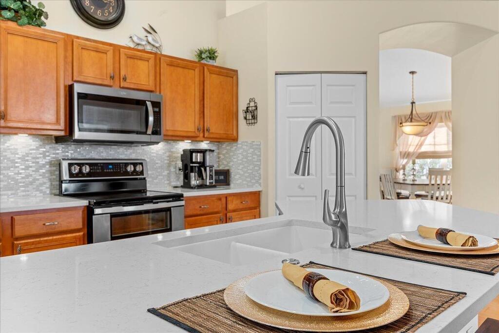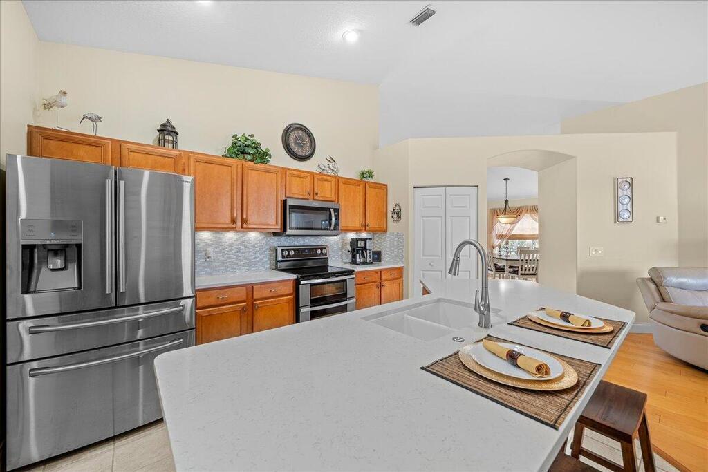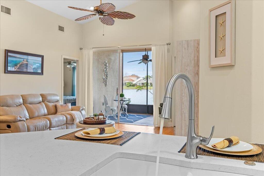 This exquisite 3 bedroom, 2 bathroom home is a slice of paradise nestled in the picturesque community of Deer Lakes! With stunning lake views and convenient amenities it offers a lifestyle of comfort and serenity. Step inside from the large covered front porch to the spacious formal living room/dining room with the perfect ambiance for relaxing evenings with family and friends. The recently updated kitchen is boasting top-of-the-line stainless steel appliances, brand new quartz countertops, ample cabinetry for storage and an open concept leading off into the family room. The Master suite offers a private entrance to the back screened patio. Come experience the magic of this home and community where everyday feels like a vacation.